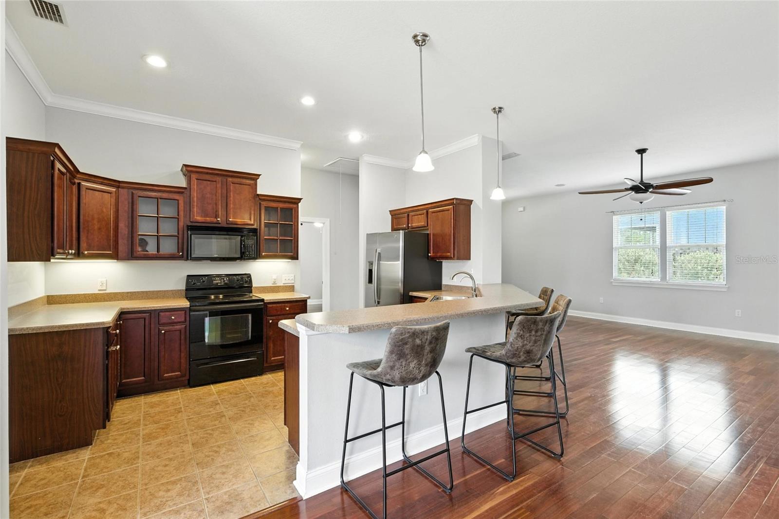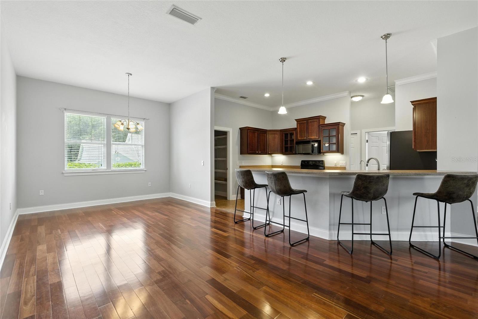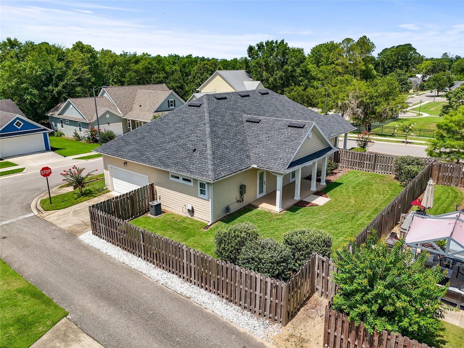 Stylish, Spacious & Move-In Ready in Alachua’s Heritage Oaks! This stunning 3 bedroom, 2-bathroom home features a new roof (2022), soaring high ceilings, and gorgeous flooring throughout. Enjoy abundant natural light and an open floor plan perfect for entertaining, with a spacious living room, an inviting kitchen with breakfast bar and large pantry, and a separate dining room with picturesque windows. The luxurious owner’s suite offers generous closet space and a spa-like bathroom with dual vanities, a large walk-in shower, and a private water closet. Both guest bedrooms are generously sized with roomy closets, and the bright laundry room includes additional storage and a convenient drop zone just off the garage. Located in the desirable Heritage Oaks community, this home is just 0.5 mile from Publix and approximately 10 minutes to I-75, providing quick access to downtown Alachua, Gainesville, Lake City, and beyond. Comfort, style, and convenience—this home has it all!