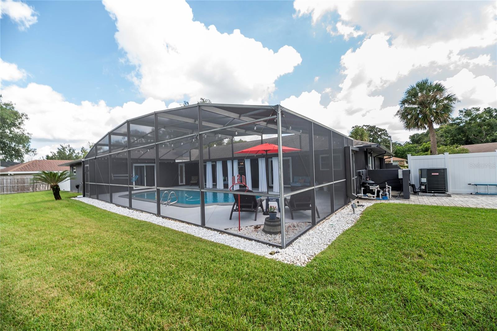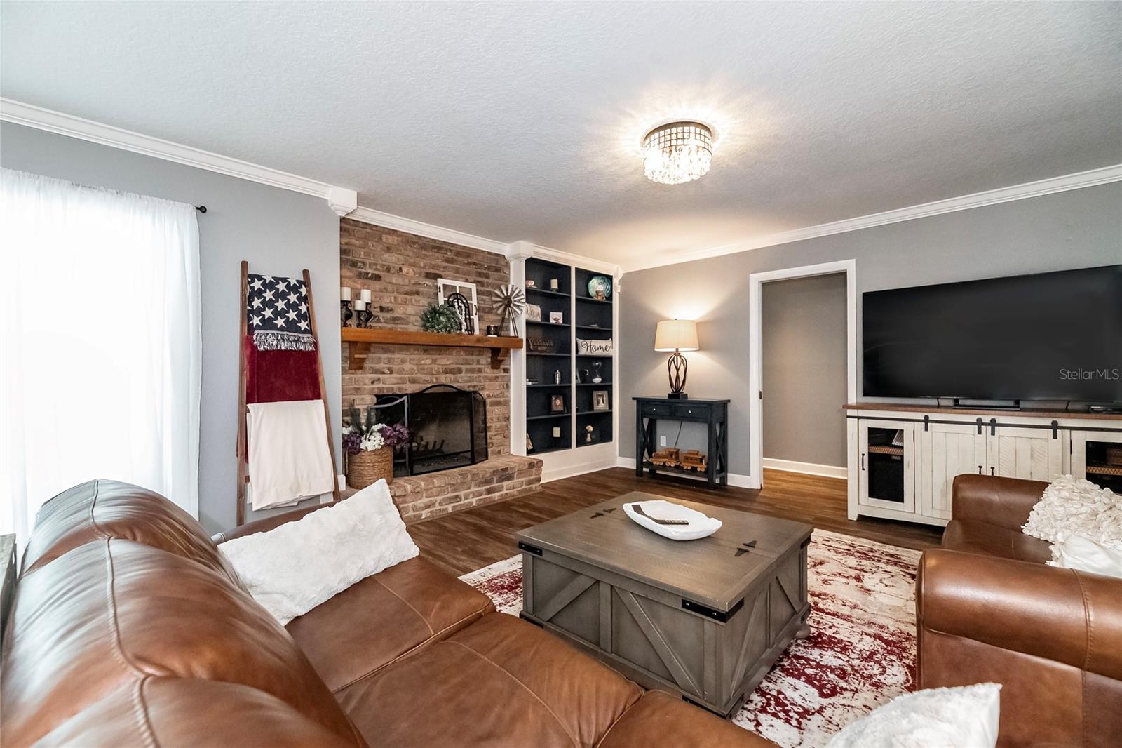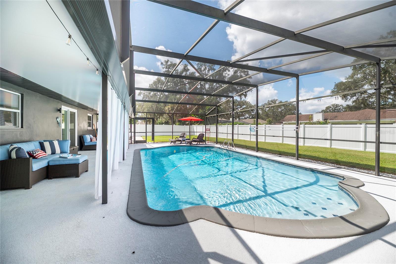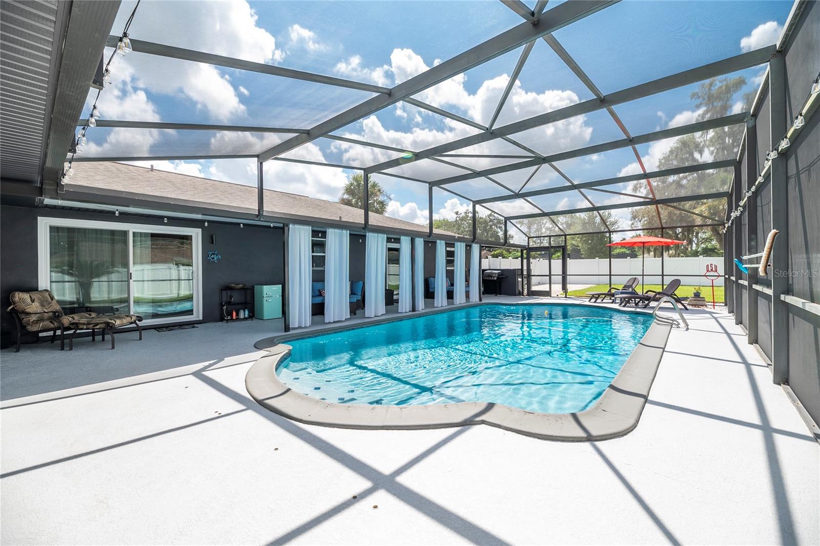 Nestled in the highly coveted Spring Lake Hills neighborhood, this stunning ranch-style pool home boasts 4 bedrooms, 2 full baths, and 1 half bath, offering the perfect blend of comfort and modern upgrades. With an open layout, this home is move-in ready and packed with amenities. Upon entering, you'll be greeted by a custom Amish-built front door and slider security lock features, ensuring safety and style. The home is adorned with all-new windows and new doors at the laundry room exterior, front, pool bath, and sliders to the pool area, perfect for lounging and taking in the immense and fenced yard. Inside, the property features new carpeting and Luxury Vinyl Plank flooring throughout, alongside fresh paint inside and out. The kitchen and bathrooms are updated with gorgeous quartz countertops, and new fixtures add a modern touch. The expansive kitchen island is a centerpiece sure to draw guests and family around to commune and enjoy! Recent upgrades include a new sleek and high-end Samsung fridge, and a new washer and dryer, making daily chores a breeze. A recently re-paved driveway enhances curb appeal, along with new front lawn sod, tree removal, and landscaping updates. The home also includes a newly installed AC and handler (with a 10-year warranty), a 2016 roof, and a newly installed Culligan water softener system. Outside, enjoy the newly resurfaced and re-tiled pool with a new salt system, pool sweep, and new pool screen for easy maintenance and relaxation. The cozy living room wood-burning fireplace has been recently inspected and updated while maintaining its original brick charm, perfect for cuddling up on cooler evenings. Hidden behind a paneled wall for added convenience and a bit of whimsy, the laundry room blends seamlessly into the home's design. The flexible layout includes a renovated 4th bedroom, which is currently used as a spacious master walk-in closet with removable shelving, easily restored to a bedroom if desired. The new electrical box and attic insulation for monthly electrical savings round out the list of recent improvements. The Spring Lake Hills community offers a private boat ramp to enjoy the lake life and beautiful outdoor amenities. This meticulously maintained and recently updated home is perfect for those seeking a blend of luxury and function in a prime location.