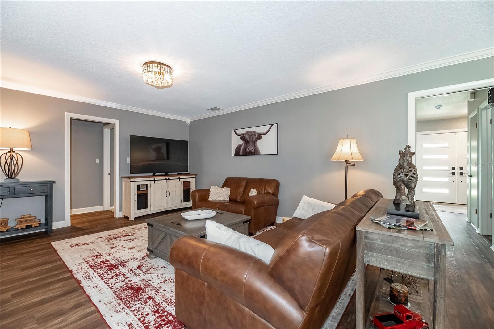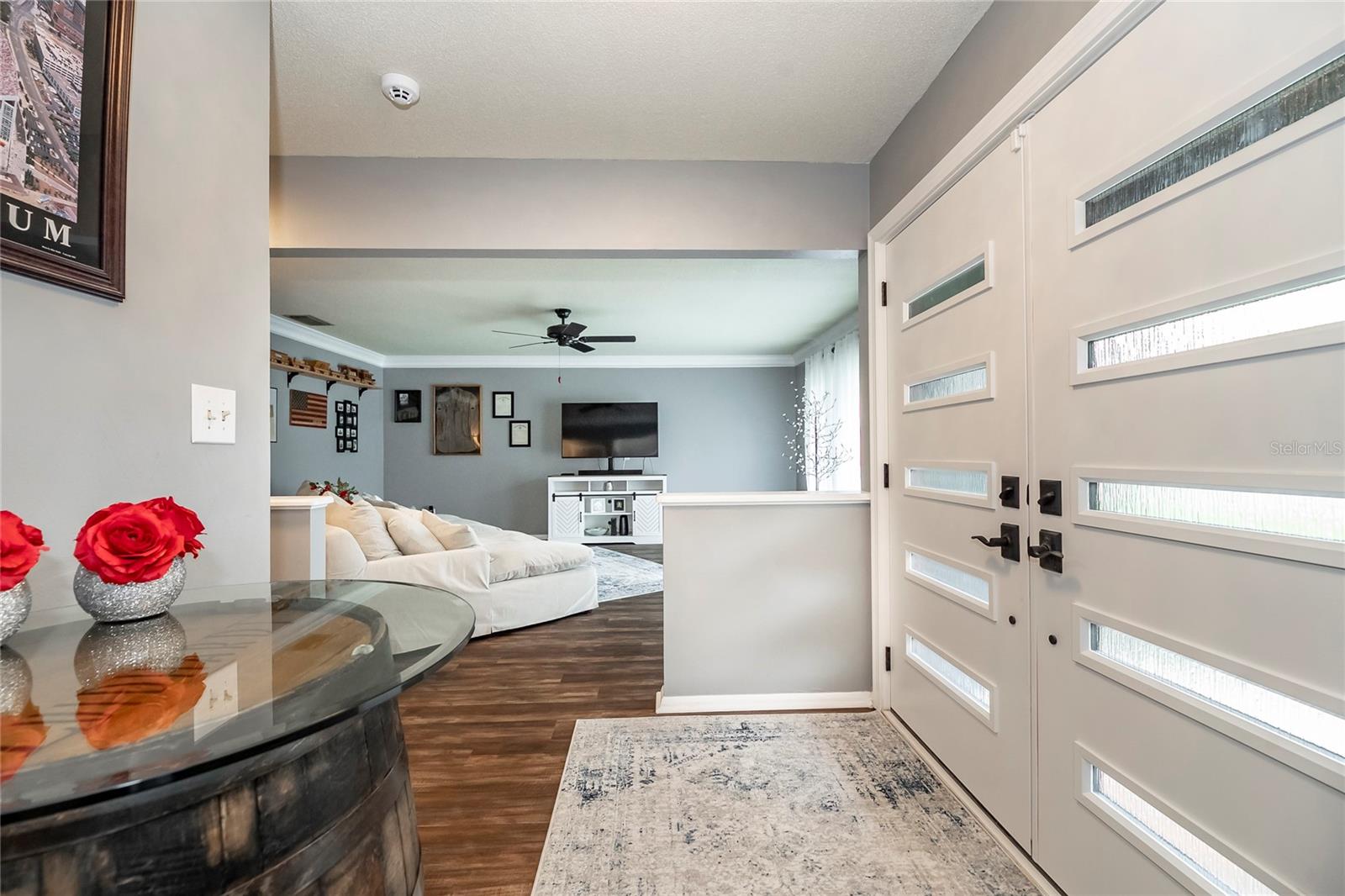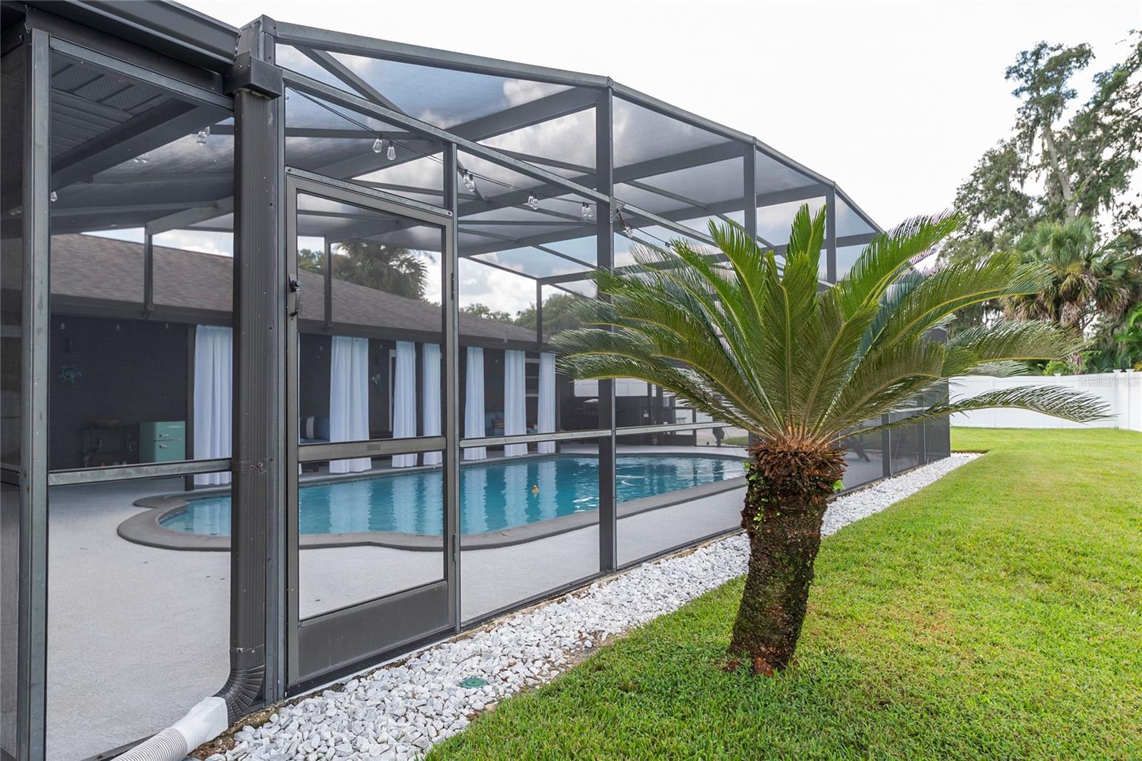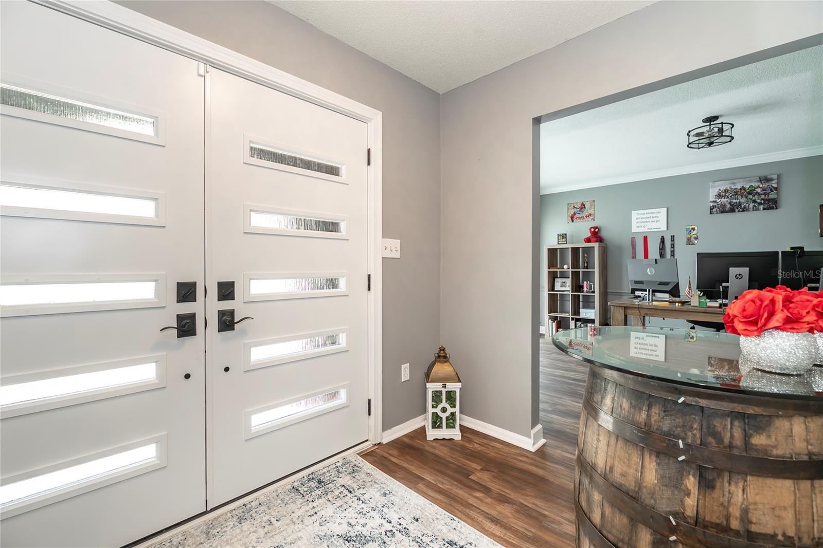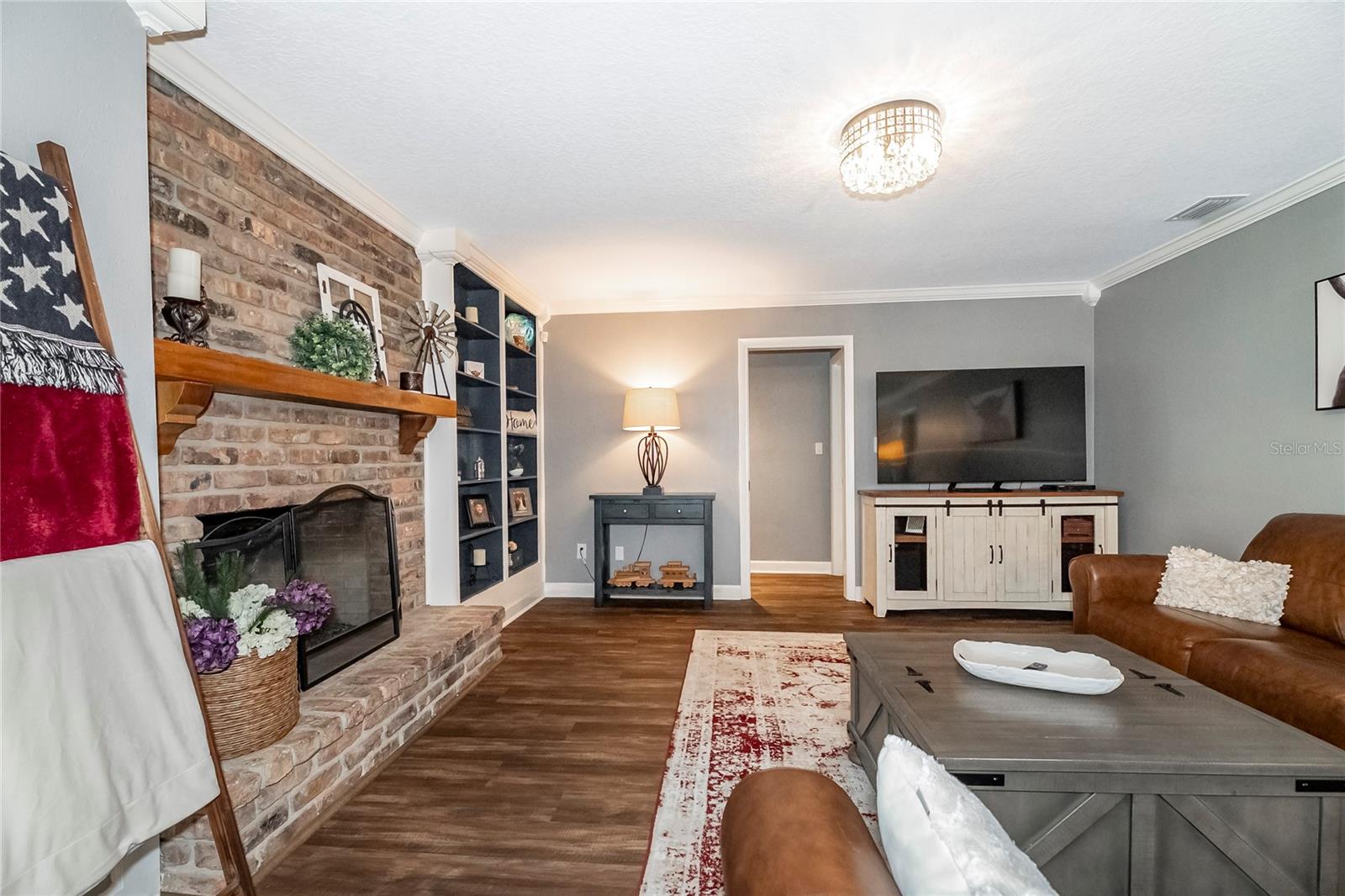 Nestled in the highly coveted Spring Lake Hills neighborhood, this stunning ranch-style pool home boasts 4 bedrooms, 2 full baths, and 1 half bath, offering the perfect blend of comfort and modern upgrades. With an open layout, this home is move-in ready and packed with amenities. Upon entering, you'll be greeted by a custom Amish-built front door and slider security lock features, ensuring safety and style. The home is adorned with all-new windows and new doors at the laundry room exterior, front, pool bath, and sliders to the pool area, perfect for lounging and taking in the immense and fenced yard. Inside, the property features new carpeting and Luxury Vinyl Plank flooring throughout, alongside fresh paint inside and out. The kitchen and bathrooms are updated with gorgeous quartz countertops, and new fixtures add a modern touch. The expansive kitchen island is a centerpiece sure to draw guests and family around to commune and enjoy! Recent upgrades include a new sleek and high-end Samsung fridge, and a new washer and dryer, making daily chores a breeze. A recently re-paved driveway enhances curb appeal, along with new front lawn sod, tree removal, and landscaping updates. The home also includes a newly installed AC and handler (with a 10-year warranty), a 2016 roof, and a newly installed Culligan water softener system. Outside, enjoy the newly resurfaced and re-tiled pool with a new salt system, pool sweep, and new pool screen for easy maintenance and relaxation. The cozy living room wood-burning fireplace has been recently inspected and updated while maintaining its original brick charm, perfect for cuddling up on cooler evenings. Hidden behind a paneled wall for added convenience and a bit of whimsy, the laundry room blends seamlessly into the home's design. The flexible layout includes a renovated 4th bedroom, which is currently used as a spacious master walk-in closet with removable shelving, easily restored to a bedroom if desired. The new electrical box and attic insulation for monthly electrical savings round out the list of recent improvements. The Spring Lake Hills community offers a private boat ramp to enjoy the lake life and beautiful outdoor amenities. This meticulously maintained and recently updated home is perfect for those seeking a blend of luxury and function in a prime location.