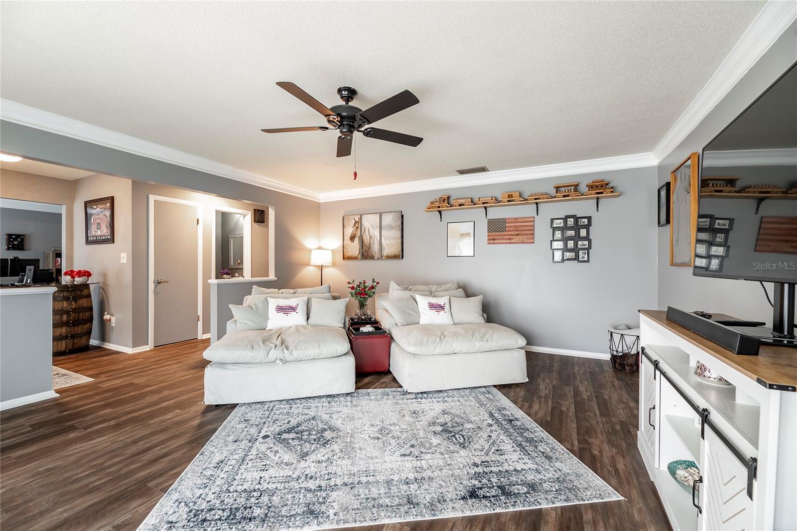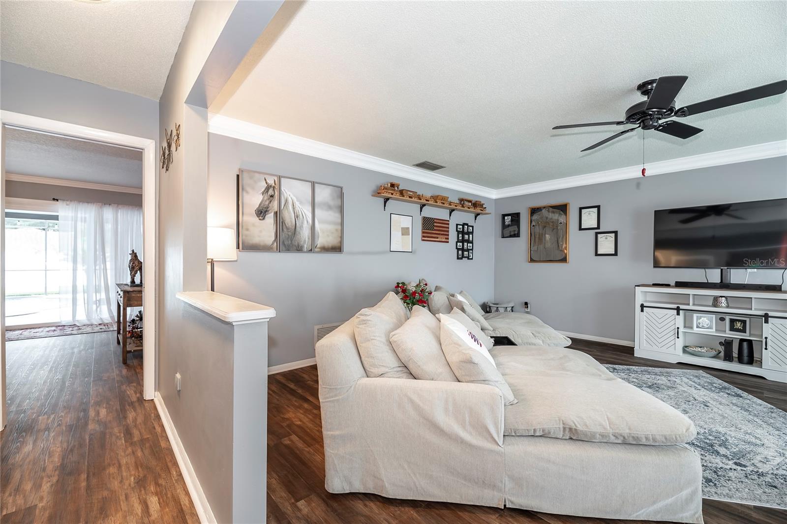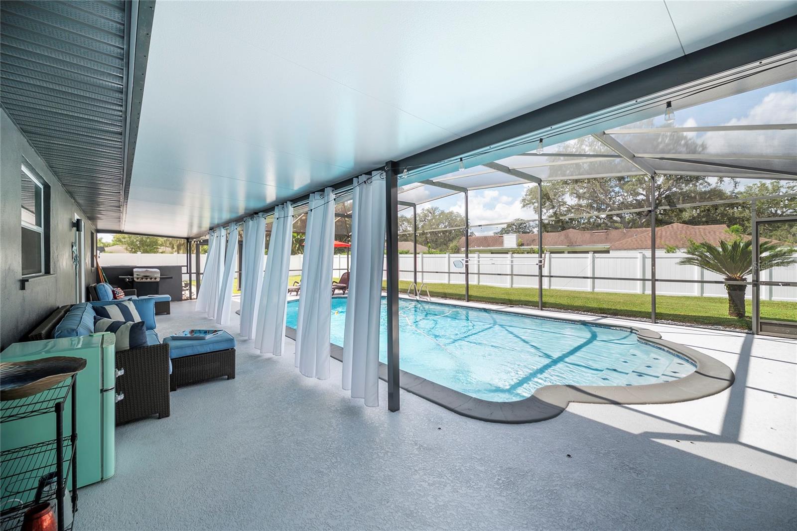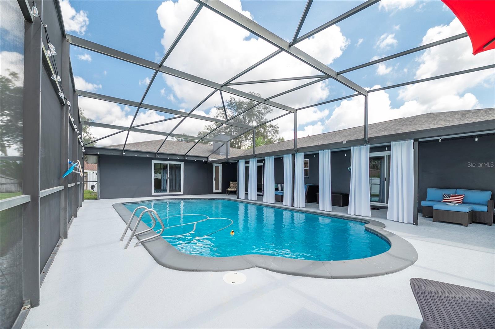 Nestled in the highly coveted Spring Lake Hills neighborhood, this stunning ranch-style pool home boasts 4 bedrooms, 2 full baths, and 1 half bath, offering the perfect blend of comfort and modern upgrades. With an open layout, this home is move-in ready and packed with amenities. Upon entering, you'll be greeted by a custom Amish-built front door and slider security lock features, ensuring safety and style. The home is adorned with all-new windows and new doors at the laundry room exterior, front, pool bath, and sliders to the pool area, perfect for lounging and taking in the immense and fenced yard. Inside, the property features new carpeting and Luxury Vinyl Plank flooring throughout, alongside fresh paint inside and out. The kitchen and bathrooms are updated with gorgeous quartz countertops, and new fixtures add a modern touch. The expansive kitchen island is a centerpiece sure to draw guests and family around to commune and enjoy! Recent upgrades include a new sleek and high-end Samsung fridge, and a new washer and dryer, making daily chores a breeze. A recently re-paved driveway enhances curb appeal, along with new front lawn sod, tree removal, and landscaping updates. The home also includes a newly installed AC and handler (with a 10-year warranty), a 2016 roof, and a newly installed Culligan water softener system. Outside, enjoy the newly resurfaced and re-tiled pool with a new salt system, pool sweep, and new pool screen for easy maintenance and relaxation. The cozy living room wood-burning fireplace has been recently inspected and updated while maintaining its original brick charm, perfect for cuddling up on cooler evenings. Hidden behind a paneled wall for added convenience and a bit of whimsy, the laundry room blends seamlessly into the home's design. The flexible layout includes a renovated 4th bedroom, which is currently used as a spacious master walk-in closet with removable shelving, easily restored to a bedroom if desired. The new electrical box and attic insulation for monthly electrical savings round out the list of recent improvements. The Spring Lake Hills community offers a private boat ramp to enjoy the lake life and beautiful outdoor amenities. This meticulously maintained and recently updated home is perfect for those seeking a blend of luxury and function in a prime location.