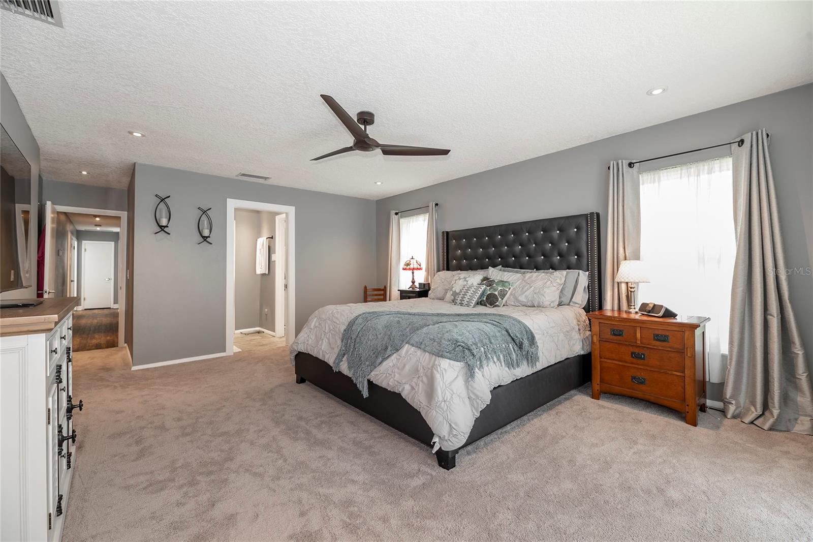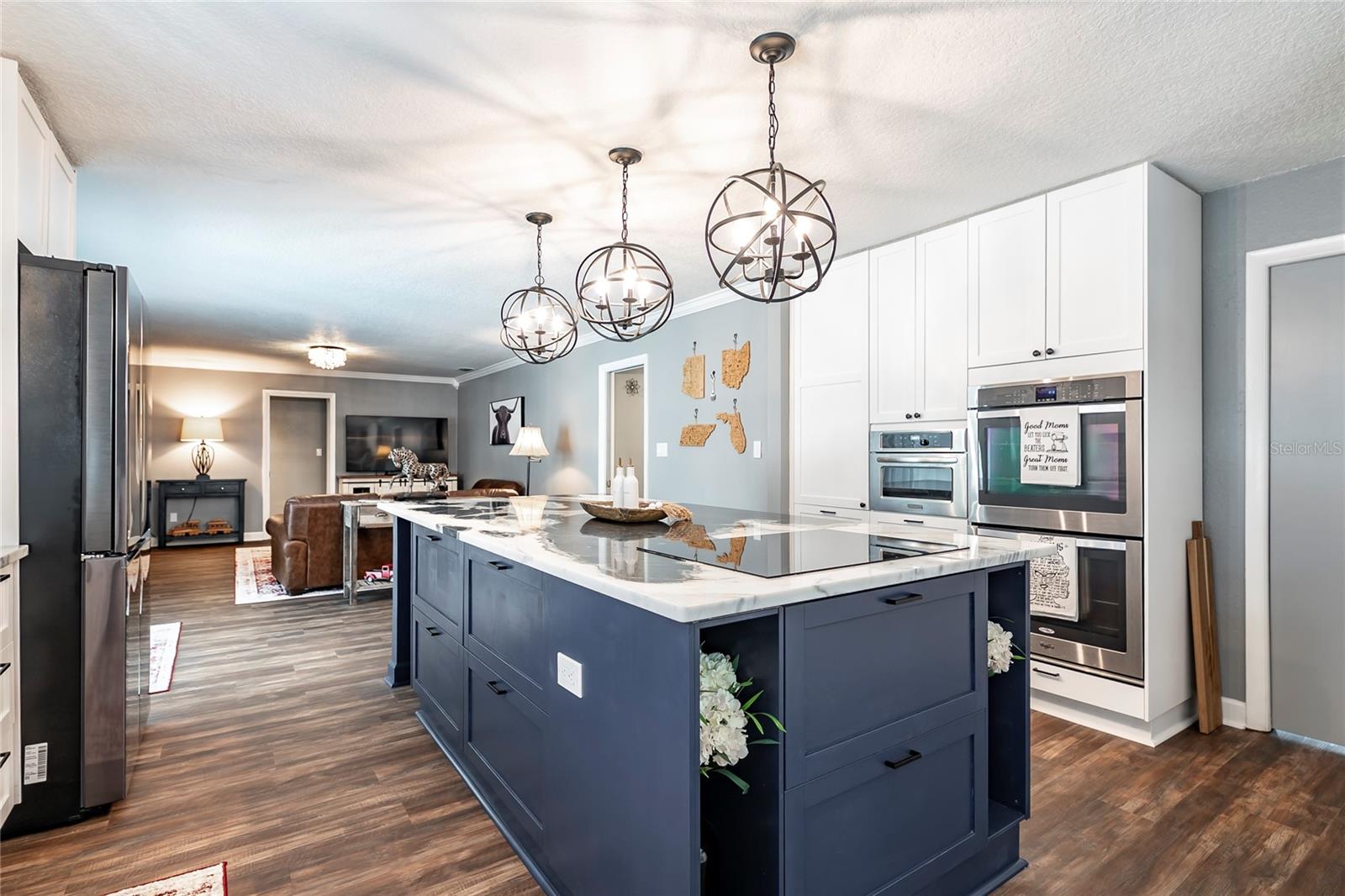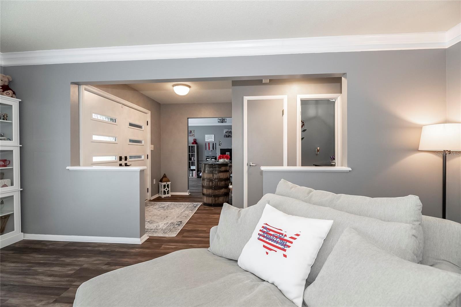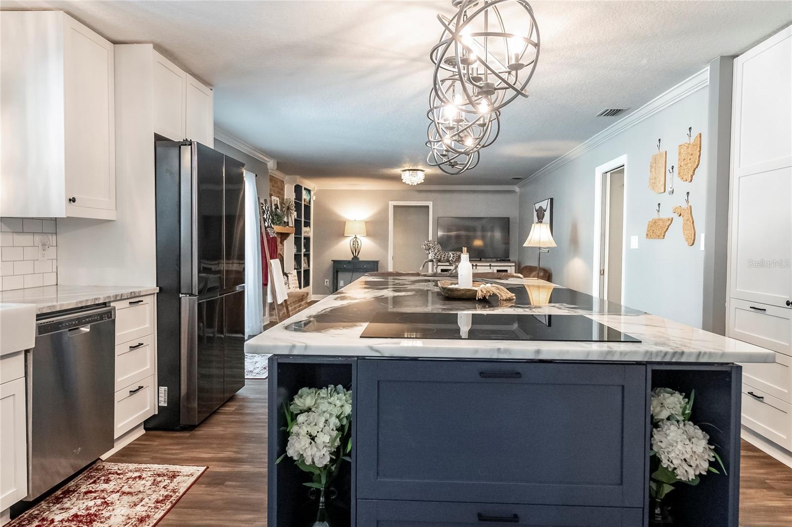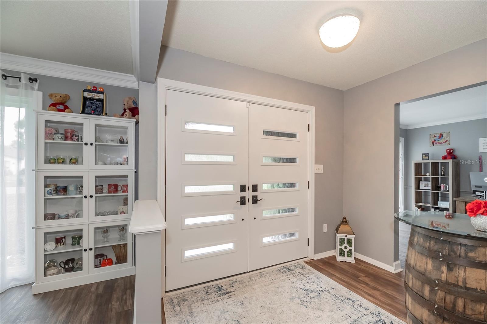 Nestled in the highly coveted Spring Lake Hills neighborhood, this stunning ranch-style pool home boasts 4 bedrooms, 2 full baths, and 1 half bath, offering the perfect blend of comfort and modern upgrades. With an open layout, this home is move-in ready and packed with amenities. Upon entering, you'll be greeted by a custom Amish-built front door and slider security lock features, ensuring safety and style. The home is adorned with all-new windows and new doors at the laundry room exterior, front, pool bath, and sliders to the pool area, perfect for lounging and taking in the immense and fenced yard. Inside, the property features new carpeting and Luxury Vinyl Plank flooring throughout, alongside fresh paint inside and out. The kitchen and bathrooms are updated with gorgeous quartz countertops, and new fixtures add a modern touch. The expansive kitchen island is a centerpiece sure to draw guests and family around to commune and enjoy! Recent upgrades include a new sleek and high-end Samsung fridge, and a new washer and dryer, making daily chores a breeze. A recently re-paved driveway enhances curb appeal, along with new front lawn sod, tree removal, and landscaping updates. The home also includes a newly installed AC and handler (with a 10-year warranty), a 2016 roof, and a newly installed Culligan water softener system. Outside, enjoy the newly resurfaced and re-tiled pool with a new salt system, pool sweep, and new pool screen for easy maintenance and relaxation. The cozy living room wood-burning fireplace has been recently inspected and updated while maintaining its original brick charm, perfect for cuddling up on cooler evenings. Hidden behind a paneled wall for added convenience and a bit of whimsy, the laundry room blends seamlessly into the home's design. The flexible layout includes a renovated 4th bedroom, which is currently used as a spacious master walk-in closet with removable shelving, easily restored to a bedroom if desired. The new electrical box and attic insulation for monthly electrical savings round out the list of recent improvements. The Spring Lake Hills community offers a private boat ramp to enjoy the lake life and beautiful outdoor amenities. This meticulously maintained and recently updated home is perfect for those seeking a blend of luxury and function in a prime location.