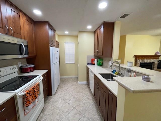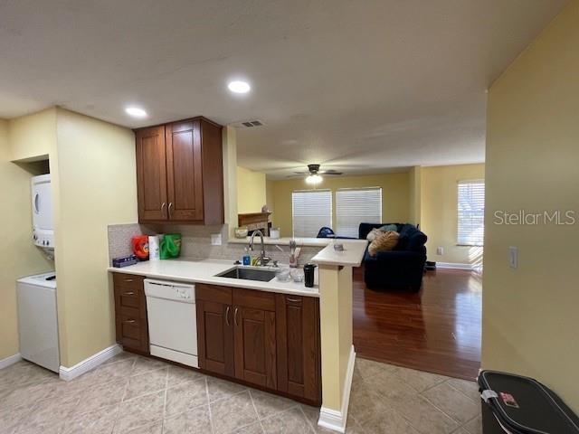 This light and bright downstairs condo unit offers an updated interior with recently remodeled kitchen with shaker style cabinets, quartz countertops and deep stainless sink with updated faucet. Other features include built in wall pantry, stackable washer and dryer plus a diagonal tile flooring. The living room is spacious with plenty of lighting from the oversized windows. The brick fireplace is a great feature and adds warmth to this newly painted interior. A bedroom with glass french doors can be used as an office or den and offers easy access to the outside porch area. The master suite has it's own ensuite bathroom and can accommodate a queen or king bedroom set. Both AC and water heater have been updated in the last couple of years. Most all of the buildings have had new roof replacements and there are ongoing repairs to sidewalks and stairwells inside the community. This property is close to all major roads, excellent shopping centers and top rated schools in Seminole County.