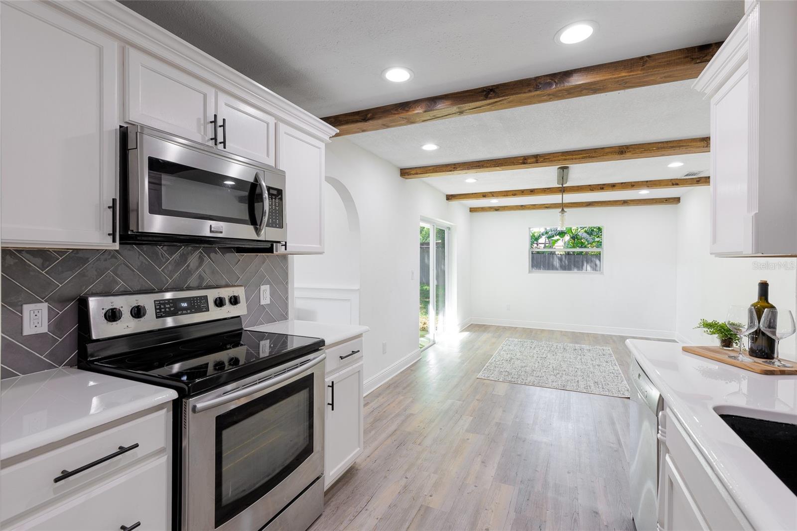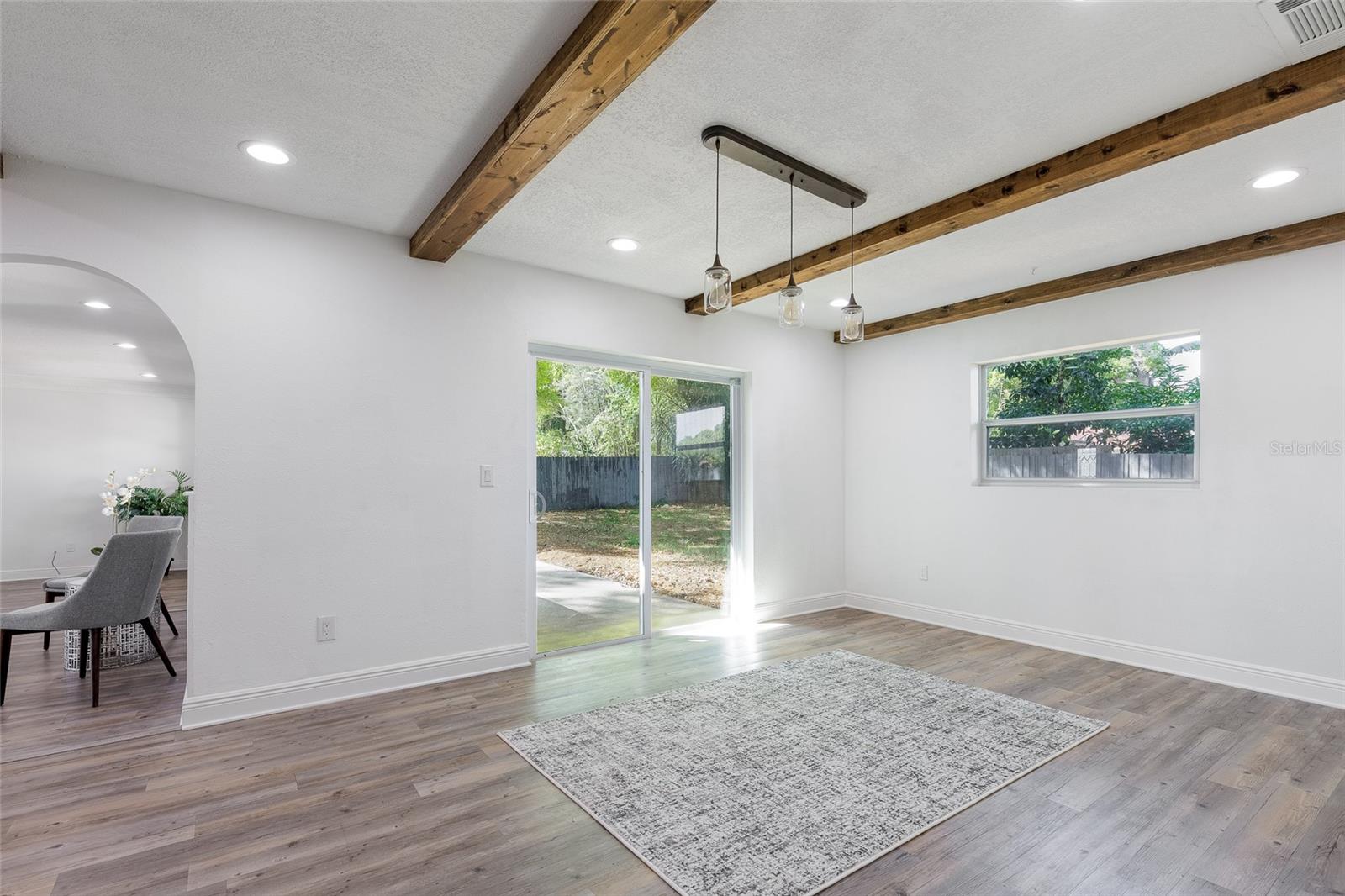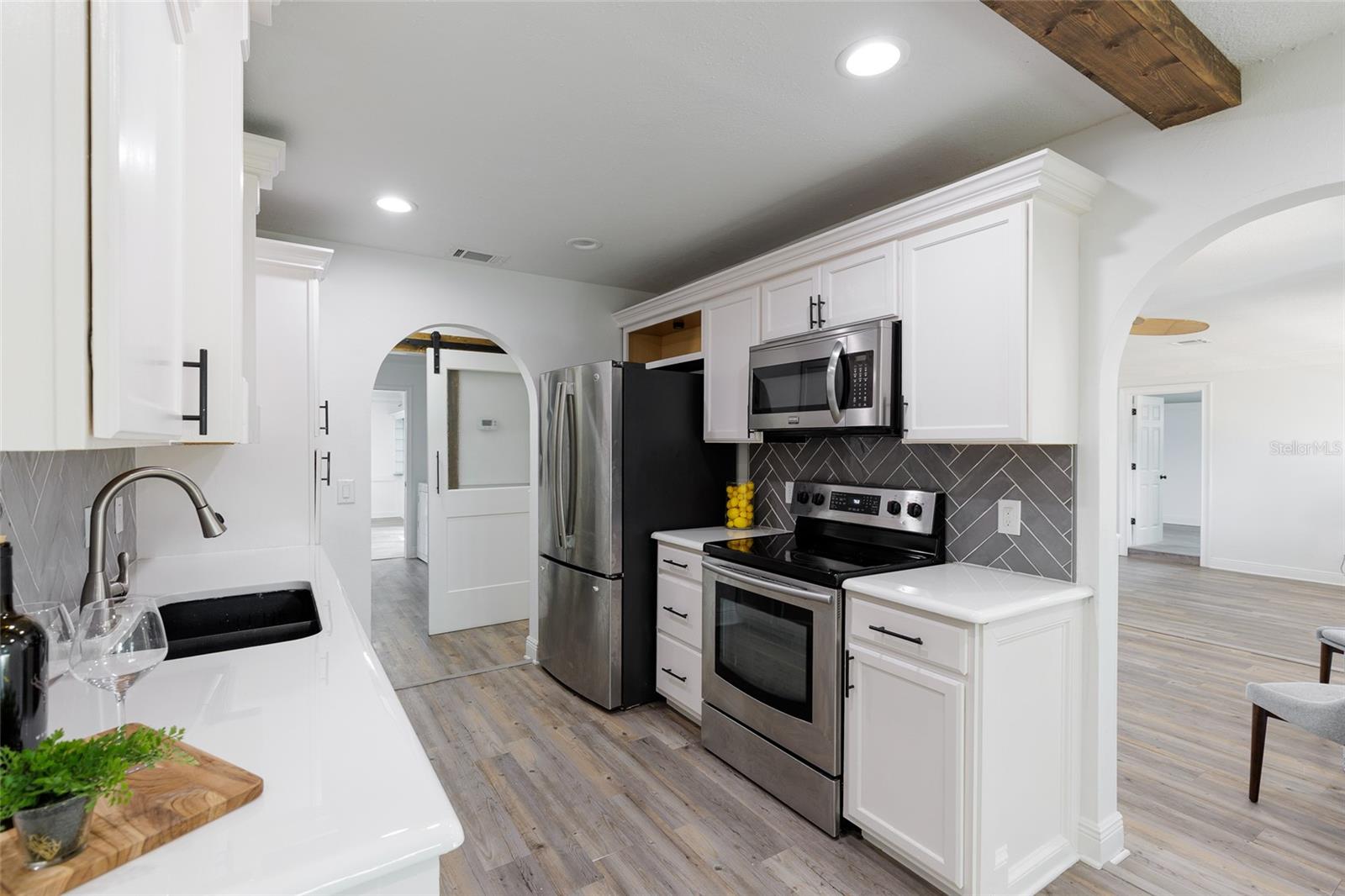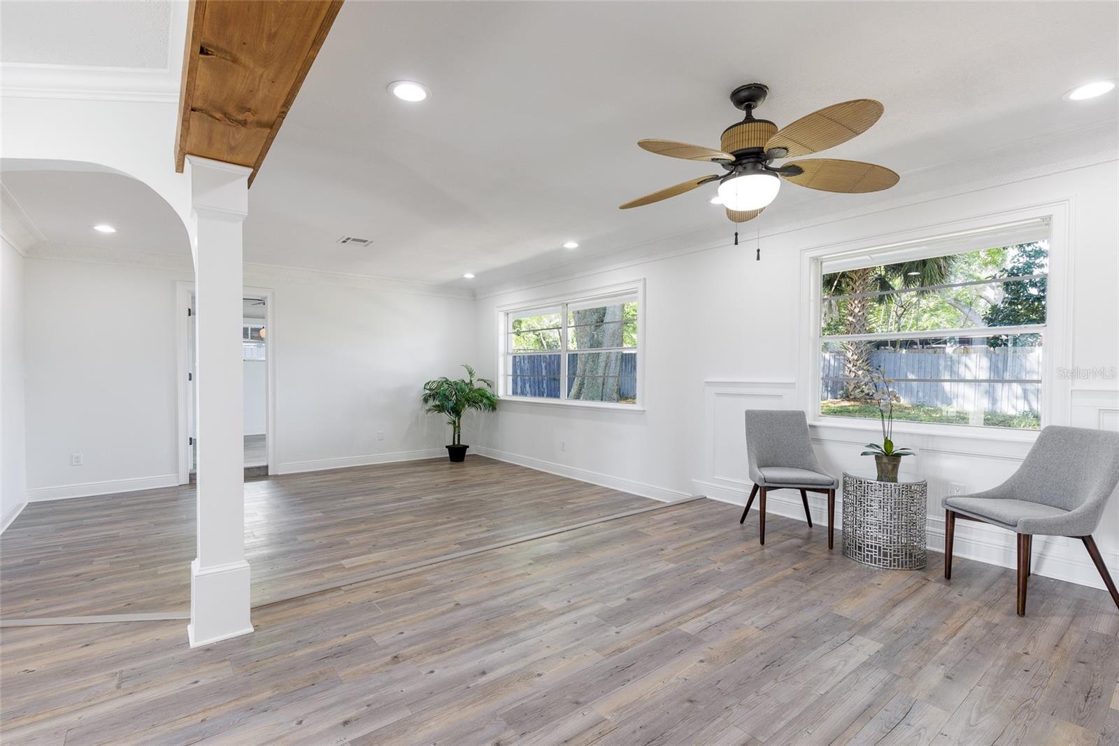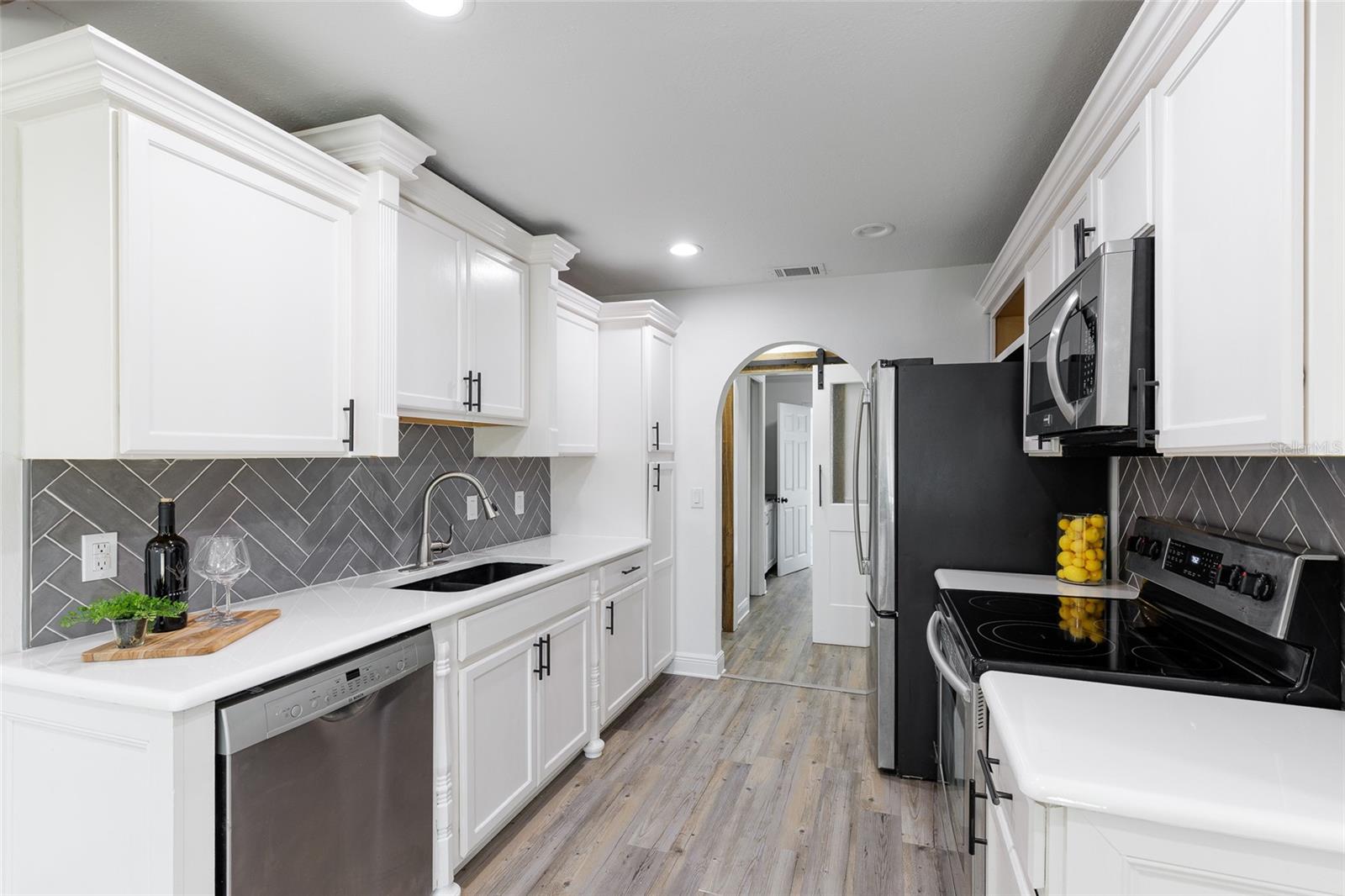 As you step inside, you'll immediately notice the updates that have been applied throughout the home. The living spaces are adorned with new luxury vinyl flooring, providing both durability and a touch of elegance. The kitchen has been completely transformed with solid surface countertops, a stylish new tile backsplash, modern lighting, fresh paint throughout that create a welcoming environment for cooking and entertaining. The converted garage is a highlight of this home, featuring a custom entertainment bar that makes it an ideal space for hosting friends and family. The interior's fresh appeal is matched by the new exterior paint, giving the home a vibrant and inviting appearance. Step outside to the fenced-in yard, offering privacy and a safe haven for outdoor fun, relaxation, or gardening. This space adds to the home's charm and appeal, making it a perfect backdrop for family gatherings or quiet evenings under the stars. Other notable features include a brand-new roof installed in 2023, ensuring peace of mind for years to come. This home is a rare find in an established neighborhood where properties seldom come up for sale, making it a unique opportunity for anyone looking to plant roots in Altamonte Springs. Whether you're a growing family seeking the ideal home in a top-rated school district, or someone who appreciates the convenience of having everything within reach, this renovated gem is ready to welcome you. Don't miss the chance to make it yours and enjoy the best of Central Florida living.