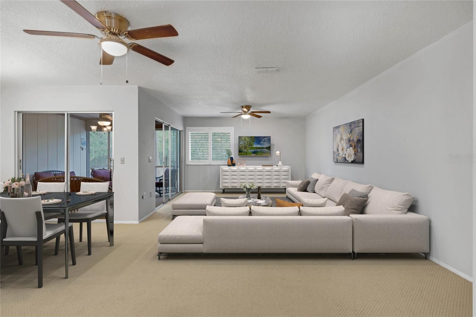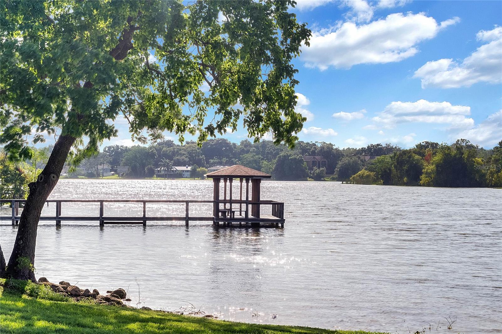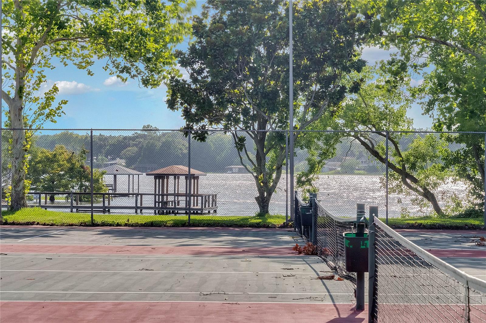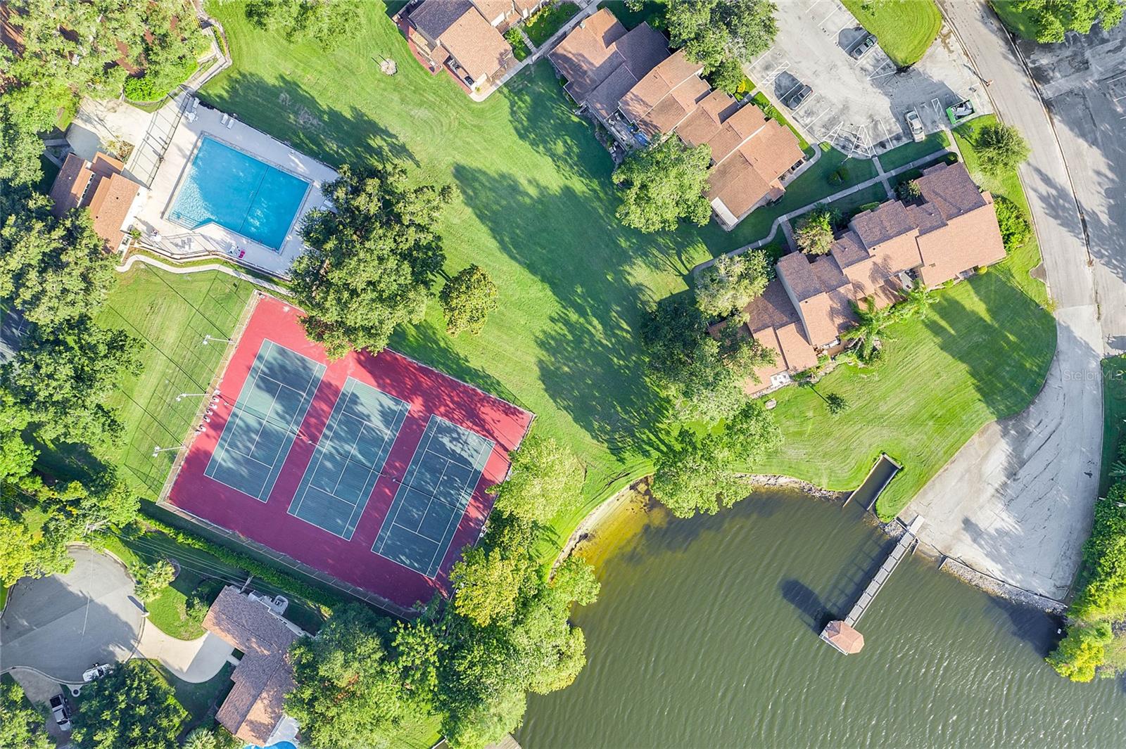 Seller is offering a $10,000 credit to buyer for closing costs and or upgrades. Largest Unit LOWEST PRICE in this Lakefront Community!! What a steal of a deal but seller says sell!! Have you been waiting for one of the larger units in this beautiful community to come available?? Now is your chance! HOA fees cover internet and cable. NEW Roof - 2022 and TWO NEW AC systems in 2020. One for upstairs and one downstairs, for complete comfort and efficiency. This 3 bedroom 2.5 bath home is one of the larger condo floorplans offered in this community! Home has a generous foyer leading to an open living floorplan. The spacious living room and dining room areas are designed with an open concept. Both rooms have sliding doors that go out to a covered and screened patio area over looking a peaceful backyard with a buffer of trees so neighboring property can not be seen. There is a built in dry bar for entertaining that features extra storage. The kitchen is open to the dining room on one side and an eat in dinette on the other to offer plenty of dining options. The kitchen has a pantry closet and plenty of storage cabinets and counter top space. There is a half bath tucked in the corner near the stairs for privacy. Upstairs there are three bedrooms and two baths. The primary bedroom is extremely large with a sitting area off the master and has a walk in closet. The en-suite primary bathroom offers a multitude of flexibility with a sink and make up area, a private water closet with tub/shower plus a second separate shower area. The other two bedrooms offer good closet space and a shared hallway bathroom. The second bathroom has a tub/shower combo. The amenities to the community include 2 pools, tennis, pickleball, shuffleboard, basketball, beautiful lake views with a private dock, and kayak. The clubhouse offers a fitness room, meeting space and recreational space with ping pong table. Community is gated.