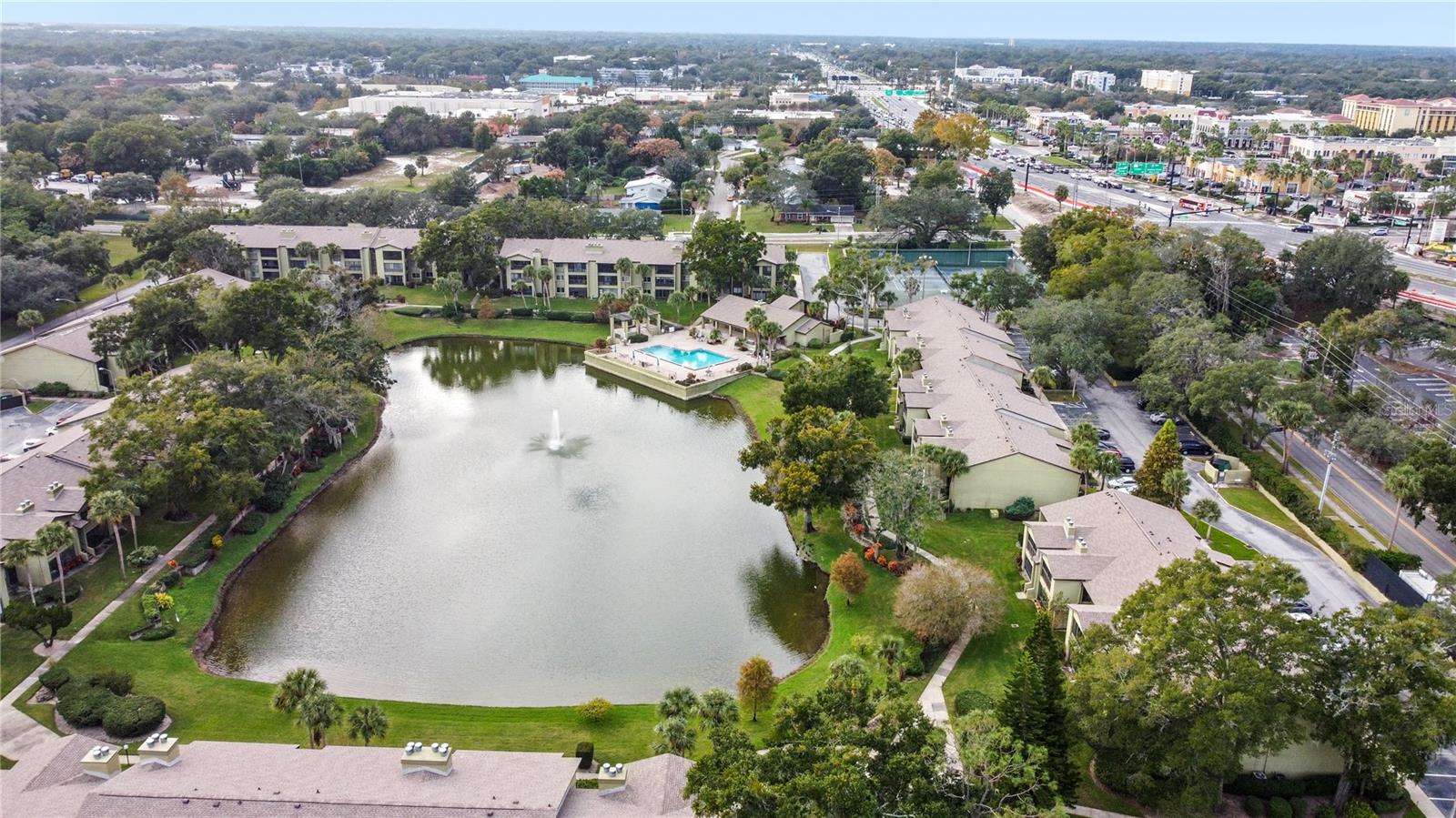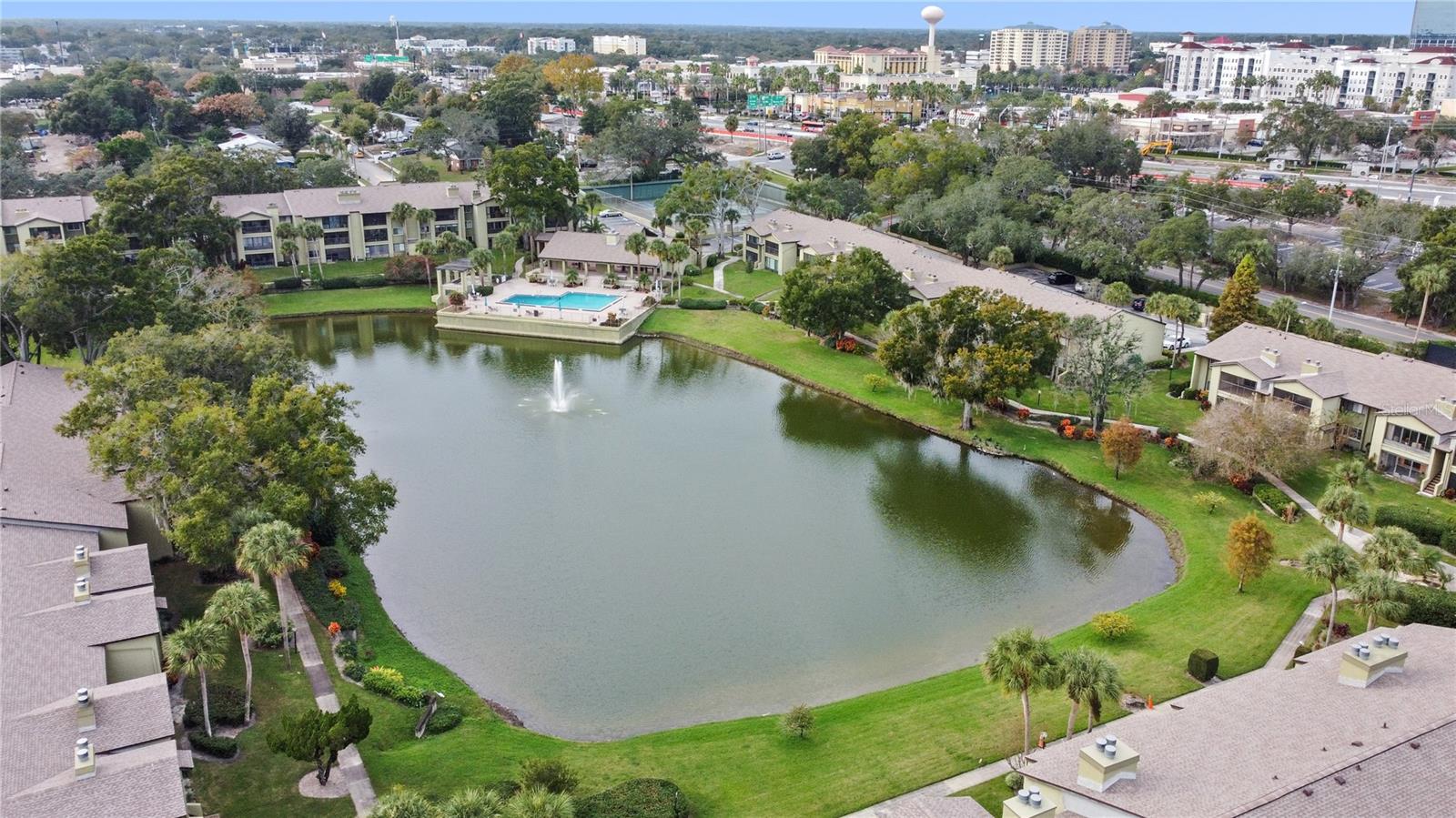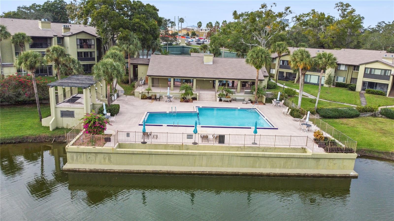 Prime Location Alert! Welcome to Escondido Condos, a tranquil retreat in Altamonte Springs, FL. This distinctive top-floor, 2-bedroom, 2-bathroom unit offers breathtaking pond and pool views, enhanced by the convenience of an elevator. In this vibrant 55+ community, you'll enjoy amenities such as tennis courts, a fitness center, and a clubhouse. The well-maintained home features a charming kitchen with ample cabinet space, room for a breakfast table, and a window that floods the space with natural light. The elegant vaulted ceilings in the living area create an airy ambiance, complemented by a charming fireplace and a beautiful mirrored wet bar. The sunroom, with delightful water views, offers additional storage. The primary bedroom features a walk-in closet, an en-suite bathroom, and serene views of the pond and pool. The split floor plan includes a guest bathroom and a second bedroom, with the added convenience of an in-unit washer and dryer. Recent upgrades include a building repaint in 2023, a roof replacement in 2023, and a new air conditioner in 2016. Escondido Condos offer more than just a place to live; it's a lifestyle. Enjoy designated parking, a pool, tennis courts, and a clubhouse, all within the beautiful surroundings of Altamonte Springs. Experience the joy of living in this serene community!