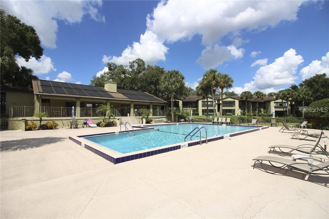 RARE SINGLE-STORY UNIT. LOCATED IN THE HEART OF ALTAMONTE SPRINGS. WALKING DISTANCE FROM ALL. This 3 BED/2 Bath condo has it all! Located in an established 55+ PET-FREE COMMUNITY surrounded amongst well-manicured grounds featuring wonderful garden sidewalks and plenty of benches to sit, relax and take in the views of the multiple fountains and water features throughout. Enjoy peaceful living under a canopy of oak trees nestled amongst tropical foliage. All the amenities are literally steps away. Light, Bright, Open, Spacious, immaculately clean and Move in Ready. Enter through the foyer to a grand Living-Dining area that includes a brick wood burning fireplace, This Split Plan condo offers a Grand Primary Suite with slider doors that open to the enclosed lanai. En Suite Bath includes Walk-In Closet, Vanity with loads of cabinet storage and spacious Shower. Second Bedroom offers wall shelving and 2nd Bath includes Tub/Shower combo with loads of storage. Inside laundry space includes lots of shelf storage. All rooms include ceiling fans with lights and all windows with custom blinds. Huge storage closet adjacent to Enclosed Lanai. NEW ROOF 2023. GREAT LEASING INVESTMENT! HOA Fee Includes: Cable TV and Onsite Management office. AMENITIES: Clubhouse; Heated Pool; Tennis Courts; PickleBall; Shuffle Board Court; Car Wash Area; Ample Parking. NEW UPGRADES TO COMPLEX: NEWLY RENOVATED CLUBHOUSE with full kitchen, game tables all available for reserving for private entertaining for your special events/holidays and Community Activities. ALTAMONTE SPRINGS is Minutes Away from Everything & Central to All: All Major Transportation, 2 Airports, Best Schools, Advent Hospitals & Medical Complex, Fine Dining & Shopping, Grocery Stores, Movie Theaters, Cultural & Sports Entertainment/Attractions, Park Festivals, Fireworks, Biking/Jogging Trails, Beaches and More!