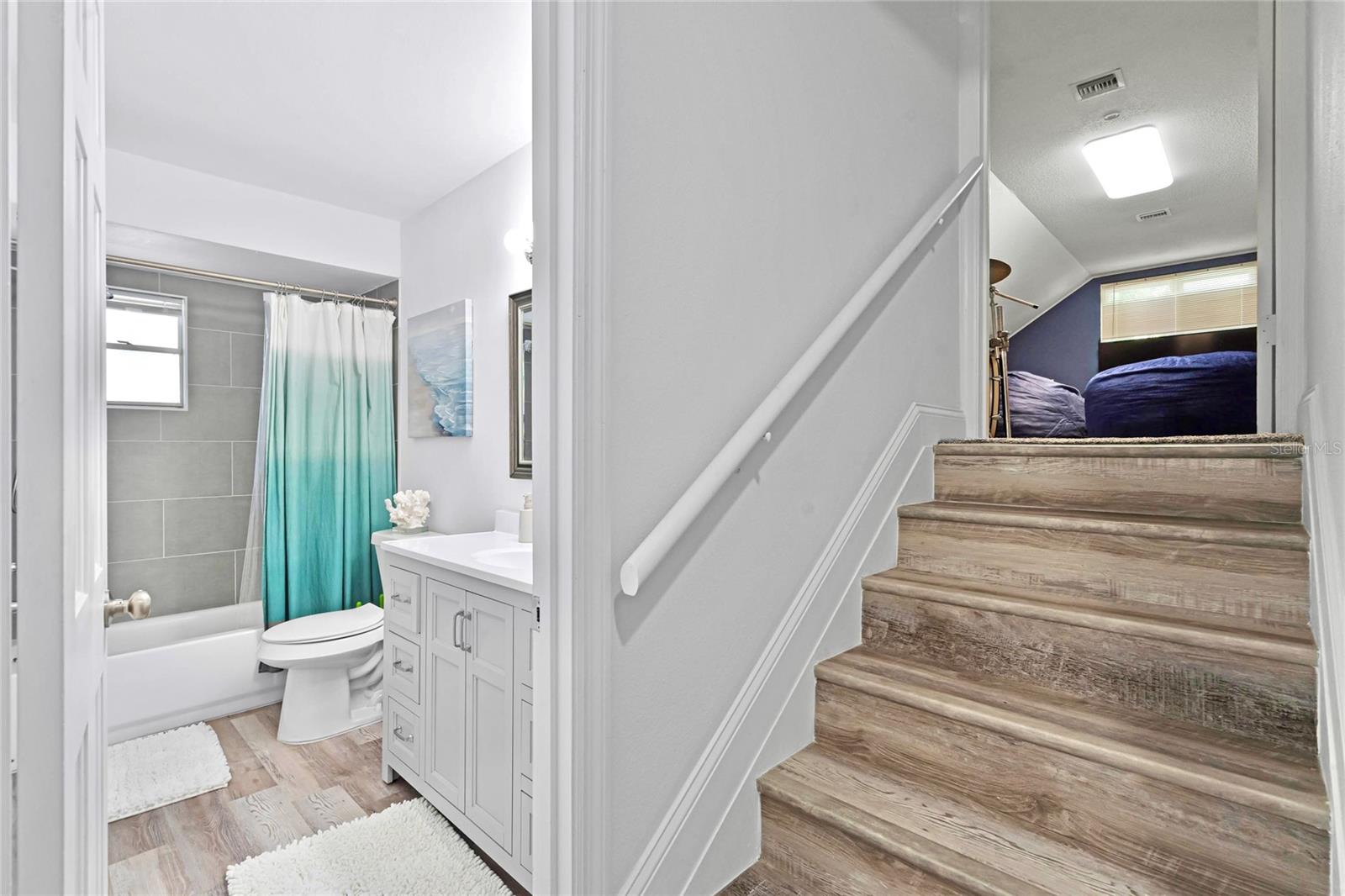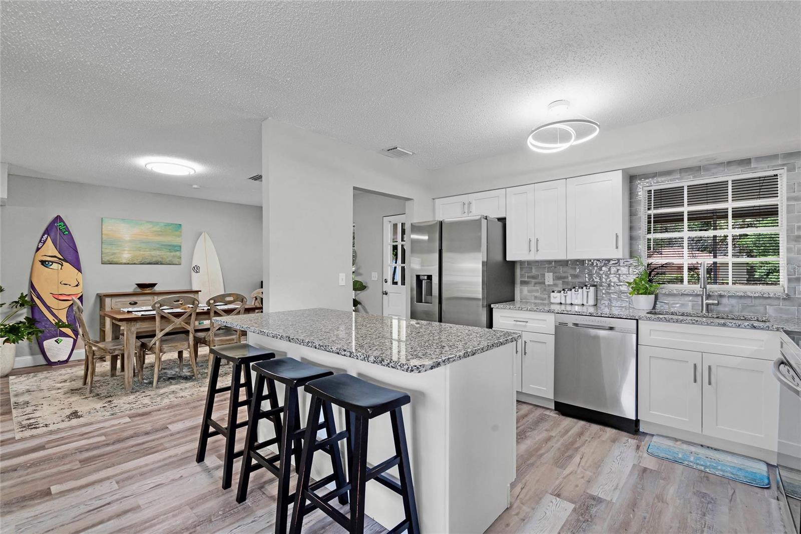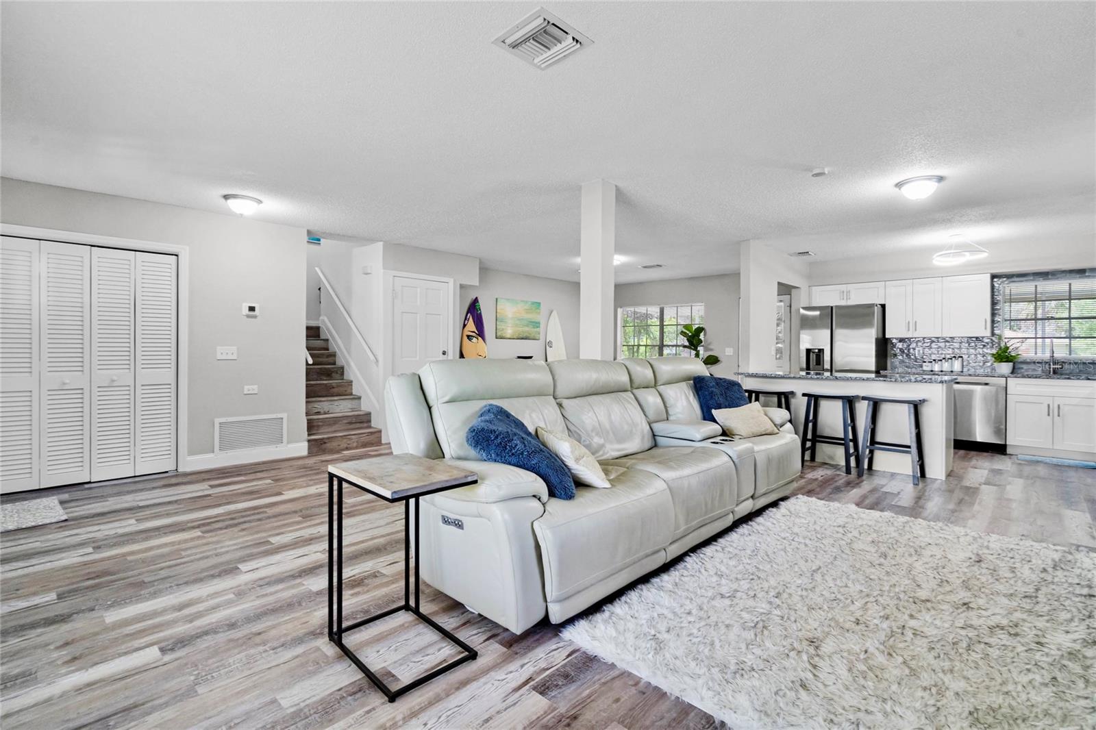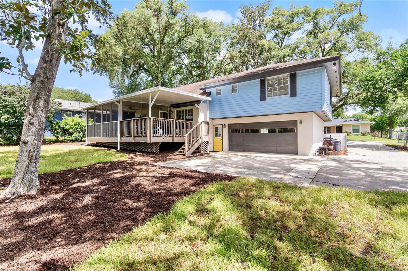 Schedule a tour today of this beautifully updated home in central Altamonte Springs on a huge lot with no HOA! As soon as you walk in you'll notice the home features an ideal open floor plan with tons of natural light creating an inviting and airy environment. All the floors are luxury vinyl plank throughout the common living areas. The kitchen has been fully updated within the last year with new cabinets, all new stainless steel appliances and updated counters and backsplash. The kitchen's central island allows for lots of prep space as well as bar seating. Off the dining area you'll find access to the large covered patio with plenty of space for grilling and outdoor seating/entertaining. You will also note the large backyard has recently been cleared and newly sodded. Back in the home you'll take a few steps up to the bedrooms and bonus room level. This level features a centrally located guest bathroom, recently updated with new vanity, fixtures and tile work. The primary bedroom features double closets as well as an ensuite bathroom with walk-in shower also all recently updated within the last year. You'll find two additional guest bedrooms on this level both with ample closet space and soft carpet flooring. The final room is a large bonus room or bedroom that features several built in closets for additional storage. The home also features a wrap around driveway with a rear entry 2 car attached garage. Additional updates include a newer septic tank (2023) and HVAC system (2023) , water heater (2017) backyard storage shed, roof less than 10 years old, newer electrical box/panels and updated landscaping. This home is 100% move-in ready! All this set in an ideal location just minutes to the Altamonte Mall, Whole Foods, I-4, 434 and 436.