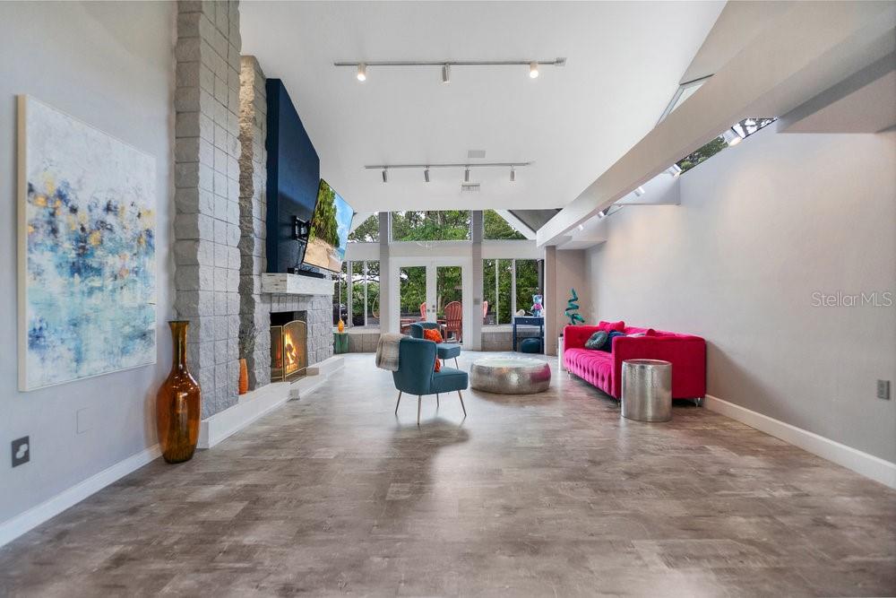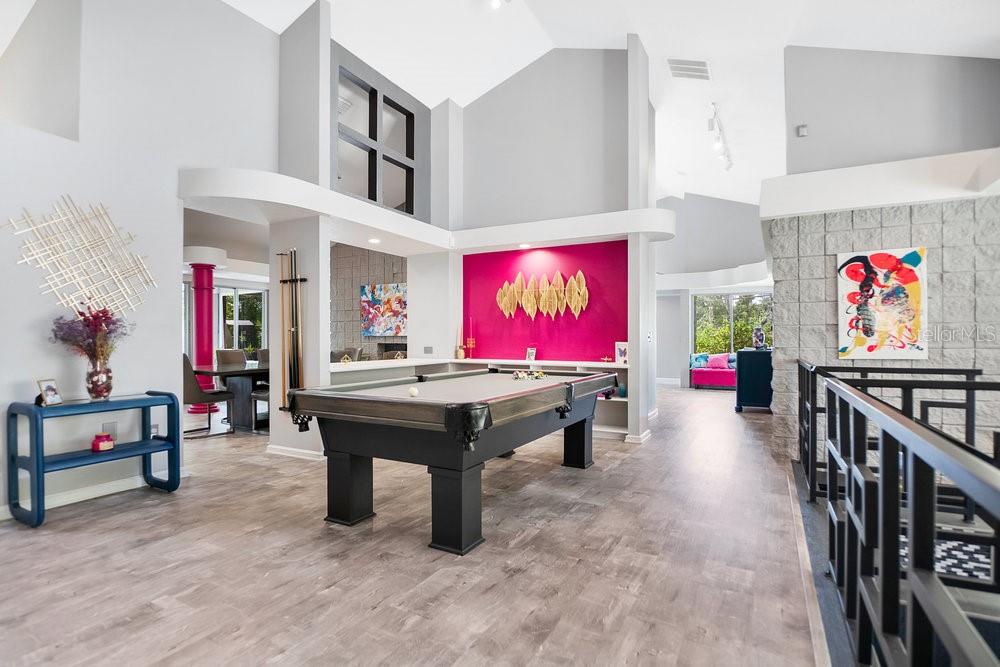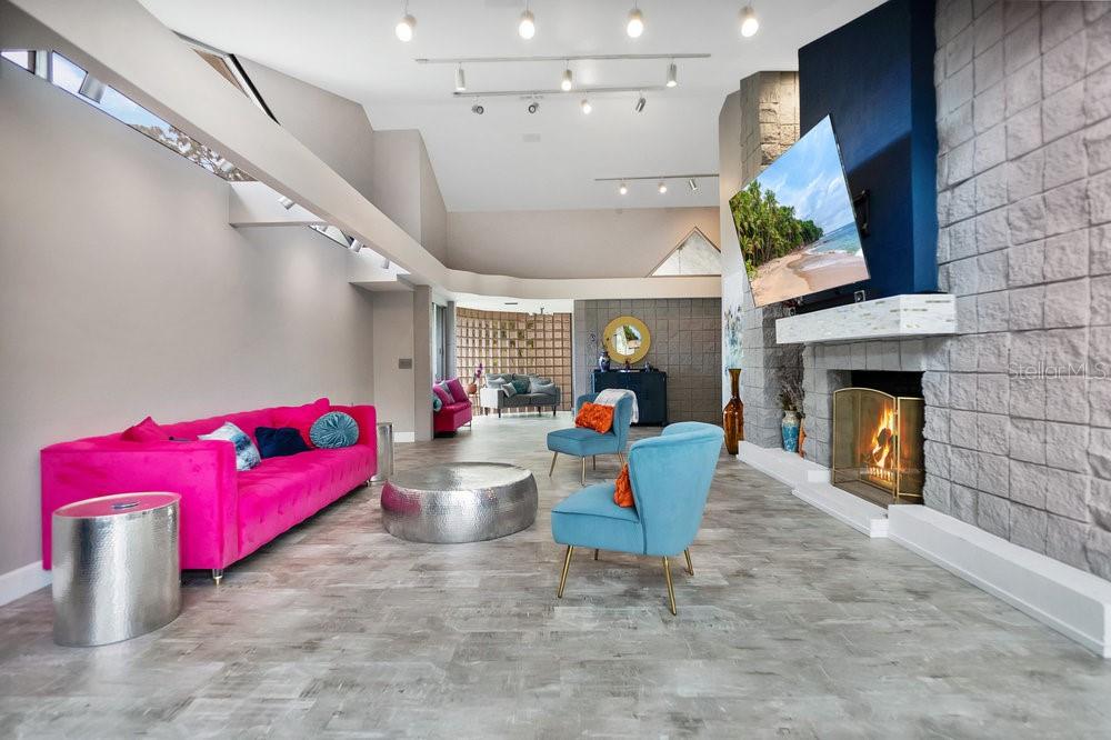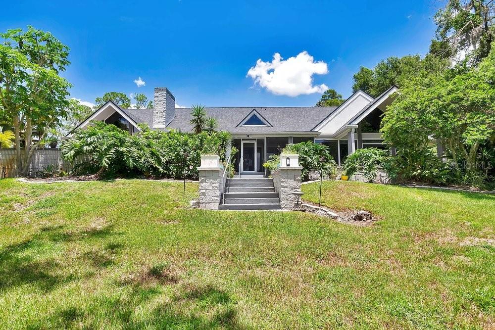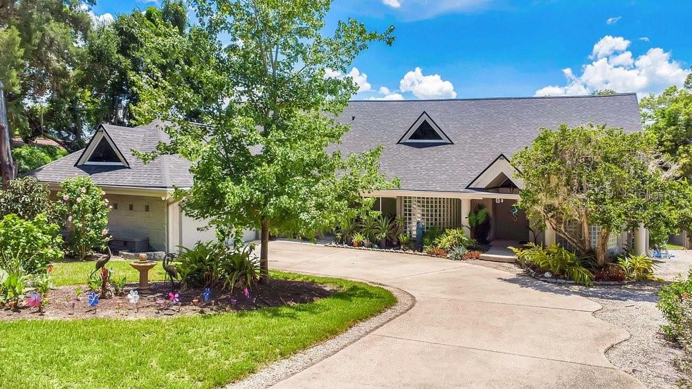 Welcome to the newest Altamonte Springs Lake Front. An exquisitely designed modern masterpiece located on the shores of Lake Marion. This home provides a serene setting boasting panoramic lakefront views, 100 ft. or waterfront, immaculate grounds with lush greenery, butterfly and herb gardens as well as bubbling fountains. Renovated with a Modern Chic design that emphasizes clean lines, geometric shapes, large windows, 20+" vaulted ceilings and aesthetically pleasing flow in both interior and exterior spaces. Built for entertaining, this is a Split Floor Plan home featuring 3 Bedrooms, 2 Full Baths and 1 Half Bath. Formal Living and Dining Rooms with Floor to Ceiling double sided fireplace, Built-in shelving stocked for readers, Family Room, Loft with Spiral Staircase and Designer Laundry Room. A spacious Chef's kitchen with unparalleled views of lake, Stainless Steel Appliances, Stone Counter-tops and Back-Splash. The Main Bedroom Suite has an Industrial Vibe complete with Four Poster Bed, 50" freestanding soaking tub, dual vessel sinks, walk-in glass block shower with rainfall shower system and a walk-in closet with custom closet system. Full sunken game area as well as a Billiard Room for Entertaining. Throughout the home you will find noteworthy features that include but are not limited to Custom Closets, Glass Accents, Mood Lighting, Niches, Accents, Designer Lights, Mirror, Fans and Furnishings. Every detail of this home has been thought out to perfection. Enjoy great Fishing, paddle boarding or kayak on the 13 acre private lake. Representing the best of Contempory Design and lakefront living. Owner is willing to sell complete with all furnishing minus some personal items, details available upon request. Accessible to major roadways and the Sunrail as well as local and boutique shopping, dining, farmers markets, trails, parks mutliple beaches and theme parks