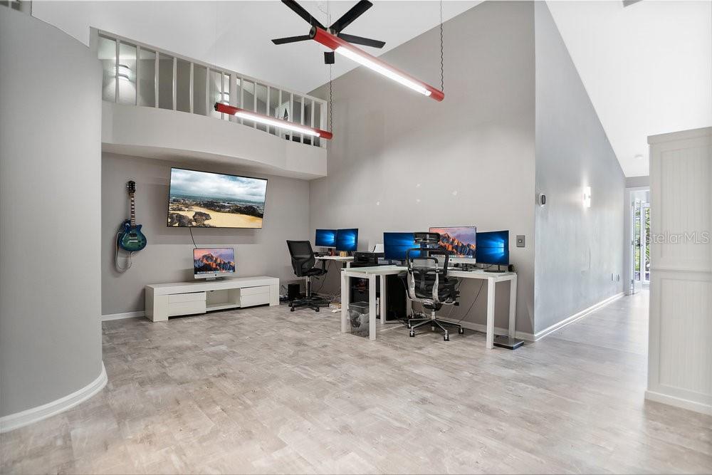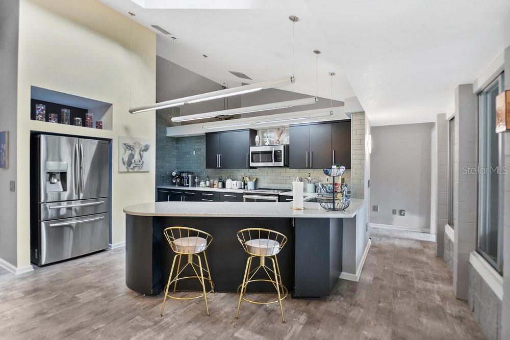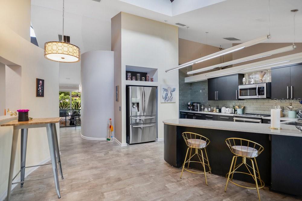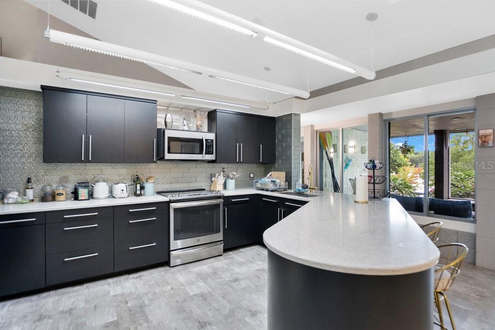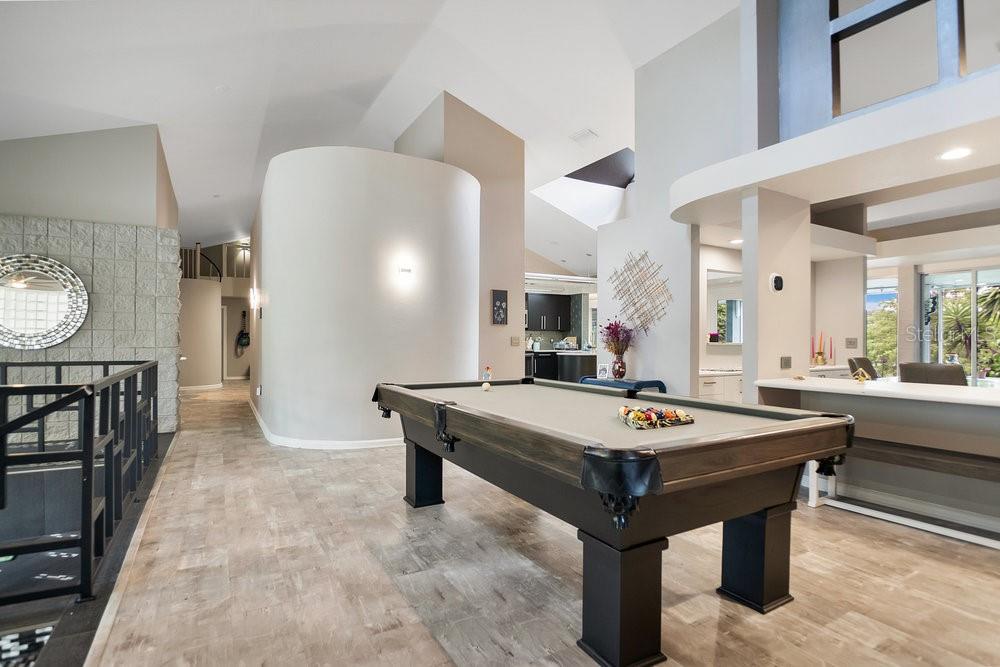 Welcome to the newest Altamonte Springs Lake Front. An exquisitely designed modern masterpiece located on the shores of Lake Marion. This home provides a serene setting boasting panoramic lakefront views, 100 ft. or waterfront, immaculate grounds with lush greenery, butterfly and herb gardens as well as bubbling fountains. Renovated with a Modern Chic design that emphasizes clean lines, geometric shapes, large windows, 20+" vaulted ceilings and aesthetically pleasing flow in both interior and exterior spaces. Built for entertaining, this is a Split Floor Plan home featuring 3 Bedrooms, 2 Full Baths and 1 Half Bath. Formal Living and Dining Rooms with Floor to Ceiling double sided fireplace, Built-in shelving stocked for readers, Family Room, Loft with Spiral Staircase and Designer Laundry Room. A spacious Chef's kitchen with unparalleled views of lake, Stainless Steel Appliances, Stone Counter-tops and Back-Splash. The Main Bedroom Suite has an Industrial Vibe complete with Four Poster Bed, 50" freestanding soaking tub, dual vessel sinks, walk-in glass block shower with rainfall shower system and a walk-in closet with custom closet system. Full sunken game area as well as a Billiard Room for Entertaining. Throughout the home you will find noteworthy features that include but are not limited to Custom Closets, Glass Accents, Mood Lighting, Niches, Accents, Designer Lights, Mirror, Fans and Furnishings. Every detail of this home has been thought out to perfection. Enjoy great Fishing, paddle boarding or kayak on the 13 acre private lake. Representing the best of Contempory Design and lakefront living. Owner is willing to sell complete with all furnishing minus some personal items, details available upon request. Accessible to major roadways and the Sunrail as well as local and boutique shopping, dining, farmers markets, trails, parks mutliple beaches and theme parks
