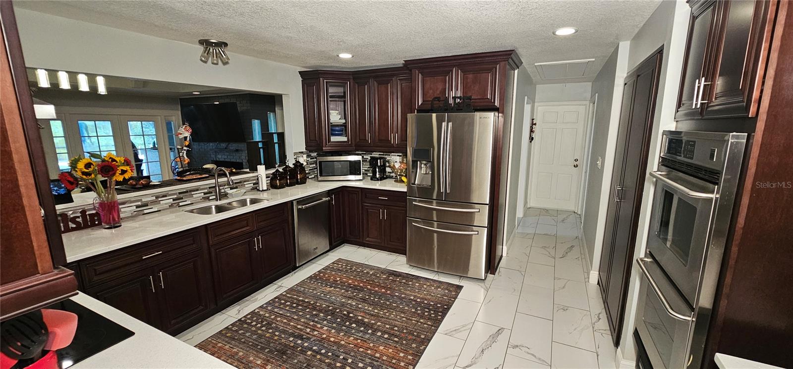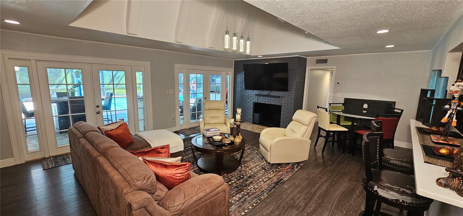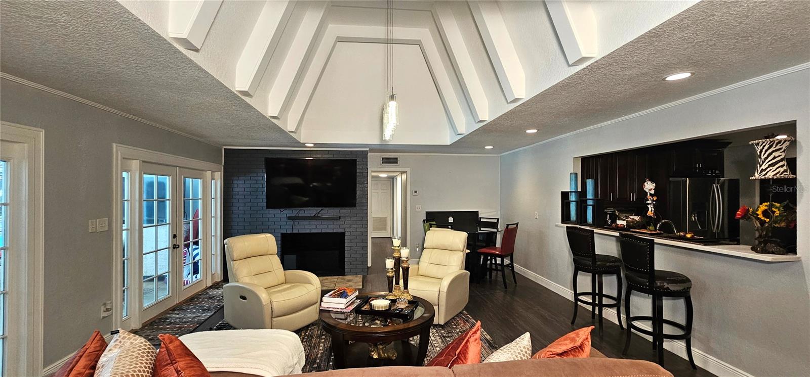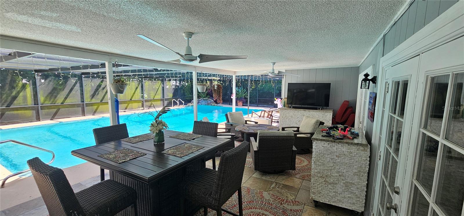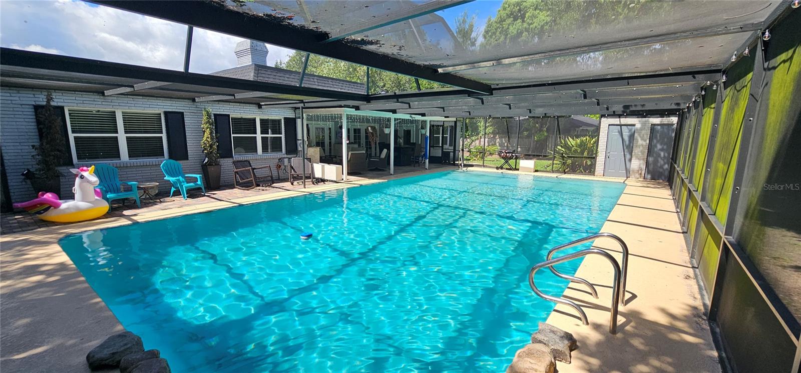 CREATIVE FINANCING - Let me be the first to welcome you to your French colonial style home boasting over 3,200 ft², a new roof in 2023, and priced under appraisal value! Everything about the property has been perfectly customized to accommodate any sized occasion. Whether you are hosting extended family on vacation or a gathering of friends and loved ones this home will perfectly cater to all of your needs. The oversized driveway on the side of the home easily provides room for a multitude of vehicles yet still gives access your large three-car garage while staying out of sight of the picturesque pathway that guides you to your double door entryway. Upon entering your home you will be greeted by elegant flooring and crown molding that carries throughout the home. Traveling down the foyer you are greeted by the options of a separate formal dining room accented with Wainscoting paneling or the family room to the side. Then conveniently located in the center of your estate lies a kitchen that is perfectly suited for crafting a masterpiece for any sized crowd, or small family meal. The kitchen highlights beautiful quartz countertops and office area, a built-in double oven with a separate flat top cook space, and plenty of storage thanks to the pantry featuring pull out shelving and luxurious solid wood 42 inch cabinetry. The kitchen pass through with countertop seating keeps you connected to the memories being made in the living room which is one of the highlights of the home. The room showcases an extravagant vaulted ceiling, a decorative fireplace that could easily be functional again, room to accommodate any size gathering, and twin French doors that let in natural lighting. This home was designed with a split floor plan separating the large three bedrooms from the sanctuary that is your primary bedroom. This main bedroom provides a plethora of space to make your personal private retreat while still allowing access to the back patio by way of another set of French doors. The primary bathroom continues to provide a relaxing oasis featuring a walk-in closet, dual sinks, a separate Jacuzzi tub, and a beautiful shower with three southing showerheads. The multitude of French doors in the home provide access to the backyard showcasing a large covered patio that flows into the gigantic screened pool enclosure. This oversized pool gives you ample space for swimming laps while also providing tasteful accents highlighted by the rock waterfall and vegetation. Exiting the screened enclosure the fenced yard provides ample space to accommodate your furry friends or any outdoor activity. Your home is also perfectly located within walking distance of the community amenities including a giant gazebo housing fans with seating and multiple grills, volleyball court, basketball court, lighted tennis courts, playground for the children, and a fire pit all overlooking a beautiful lake with ramp access. This community area also provides an extended dock with a table and seating to make romantic memories. All of this is located in an area that allows easy access to everything that Central Florida has to offer. Schedule your showing today because perfection like this does not last on the market for long!