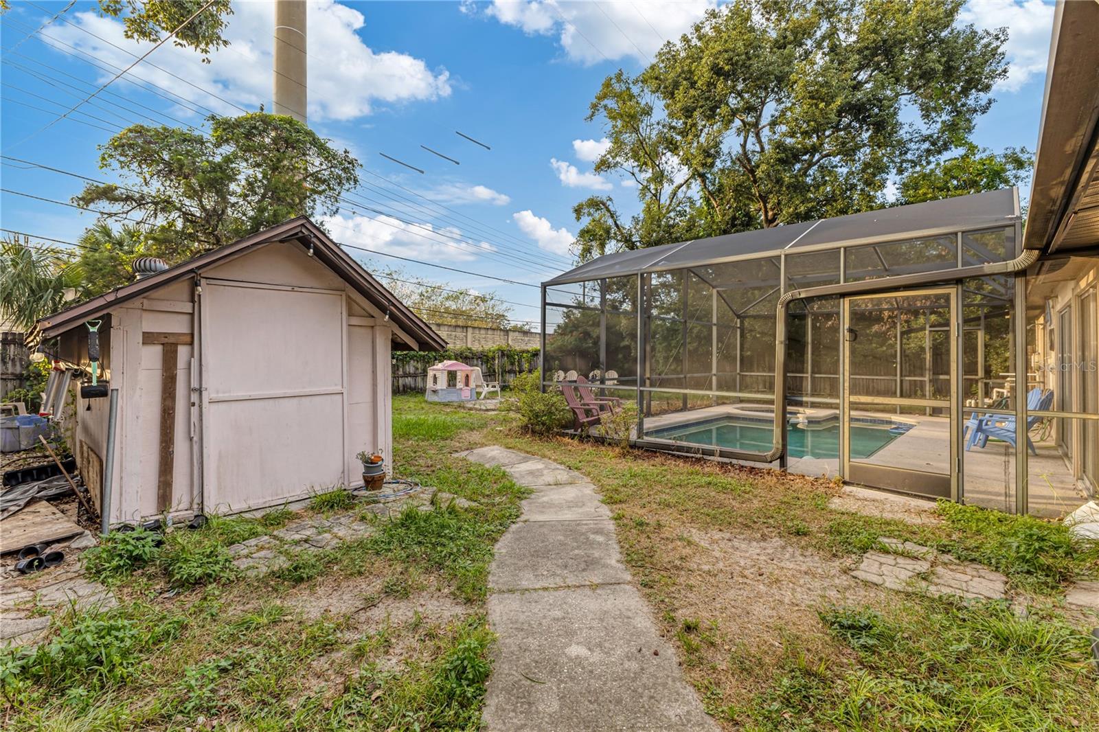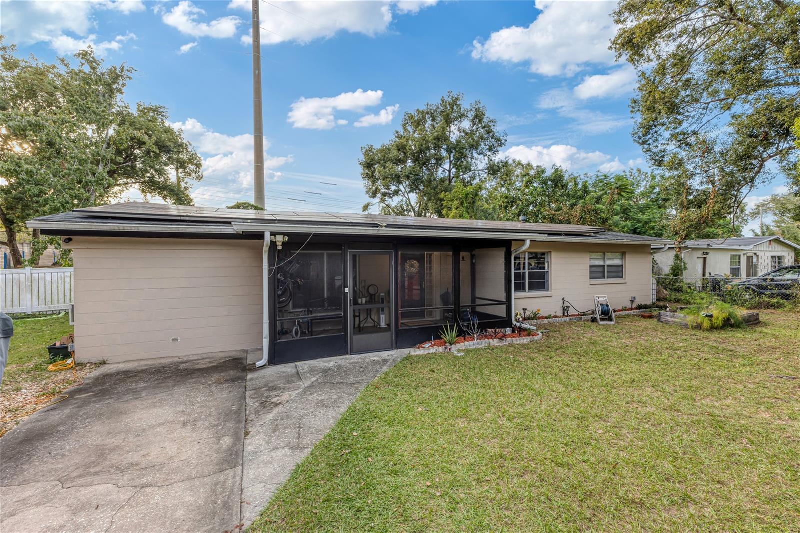 NEW LOWER PRICE!!!!!! MOTIVATED SELLER!!!! Welcome to your new home! This pool home is close to shopping and the main highways and boasts a New Roof (2018), Salt Water Pool System (2022), Gas Water Heater (2021), Home is hard wired with a 50 AMP transfer switch for your GENERATOR! Solar Panels (2018) can also be transferred to new Buyer! Home has a spacious kitchen with loads of storage ideal for preparing meals and dining. Outdoor living is equally as impressive with and enclosed front porch AND rear covered patio with salt water pool that is ideal for enjoying Florida's beautiful year-round weather. Whether you are having your morning coffee or hosting a BBQ these spaces provide a quiet retreat for outdoor relaxation. The backyard is completely fenced, spacious and includes a shed for additional storage, perfect for keeping tools, equipment and hobbies neatly organized, NO REAR NEIGHBORS AND NO HOA make this property ideal. Make you appointment today!!!