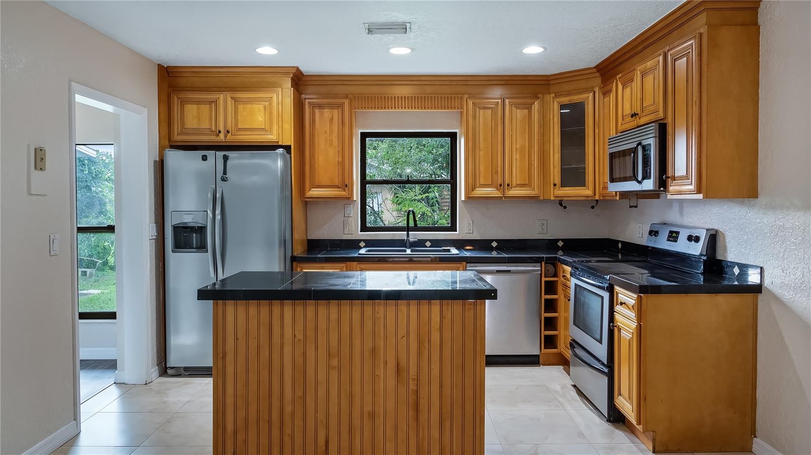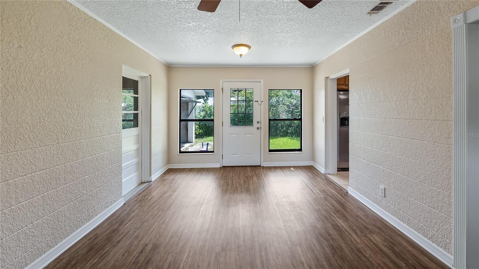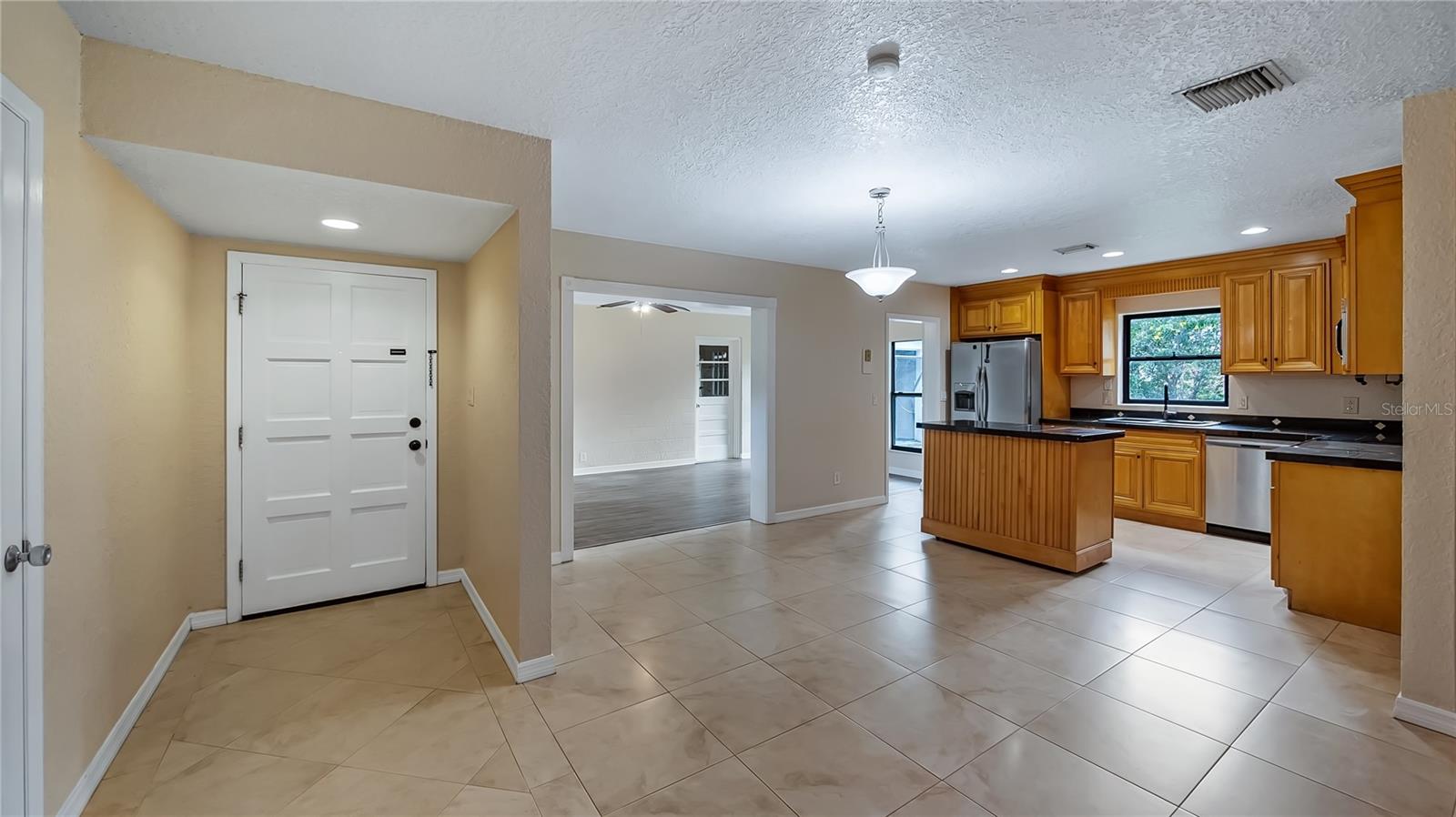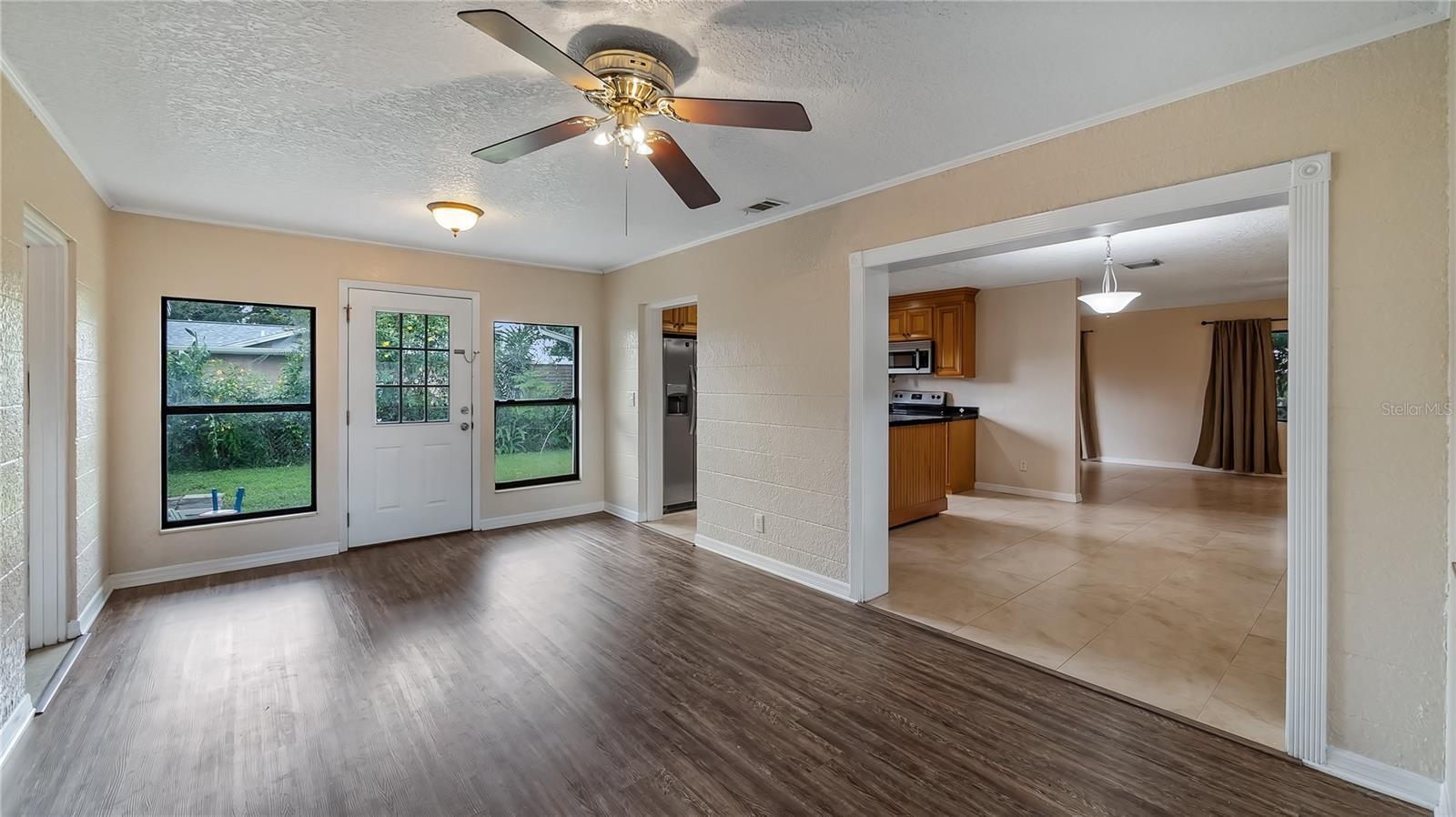 Welcome home to this beautiful home. There is so much to love starting with being on a corner lot with a pecan tree right in the front yard. Pull up to the home and you will see a long driveway big enough for 4 cars to park in front of the spacious garage. Upon entering the home from the covered front porch you will notice the open layout the gorgeous 20 inch porcelain tile and the large windows! Those who enter say WOW how Spacious! The dining room kitchen combo are to your left and the living room with lots of space in straight ahead. In the entry you will also find a "coat" closet typical for the area. Turn right down the hall and you will find two DEEP closets along with the guest bath. Two bedrooms with standard closets can also be found. Off to the right at the end of the hall you will find the master bedroom with a walk in closet. All the bedrooms feature luxury vinyl plank floors along with ceiling fans. Back through the hall to the other side of the home is the well appointed kitchen with solid surface counters, stainless steel appliances and and island on wheels that can be moved to the spot you feel best. Off the the kitchen you will find the family room bonus room that was previously a breezeway. This bonus room leads to the back yard or to the garage. The back yard has an irrigation room as well as an extra 200 sq ft storage garage! The 2 car garage is oversized and has the washer and dryer hookups. The home has extra insulation to make it more energy efficient. Located just off of Maitland Avenue this home is so convenient! You can get to I4 in a jiffy, you are between 436 and Maitland Blvd. 17/92 is just a handful of blocks away. Shopping, grocery, banking, dining, everything is at your fingertips. Come check it out for yourself.