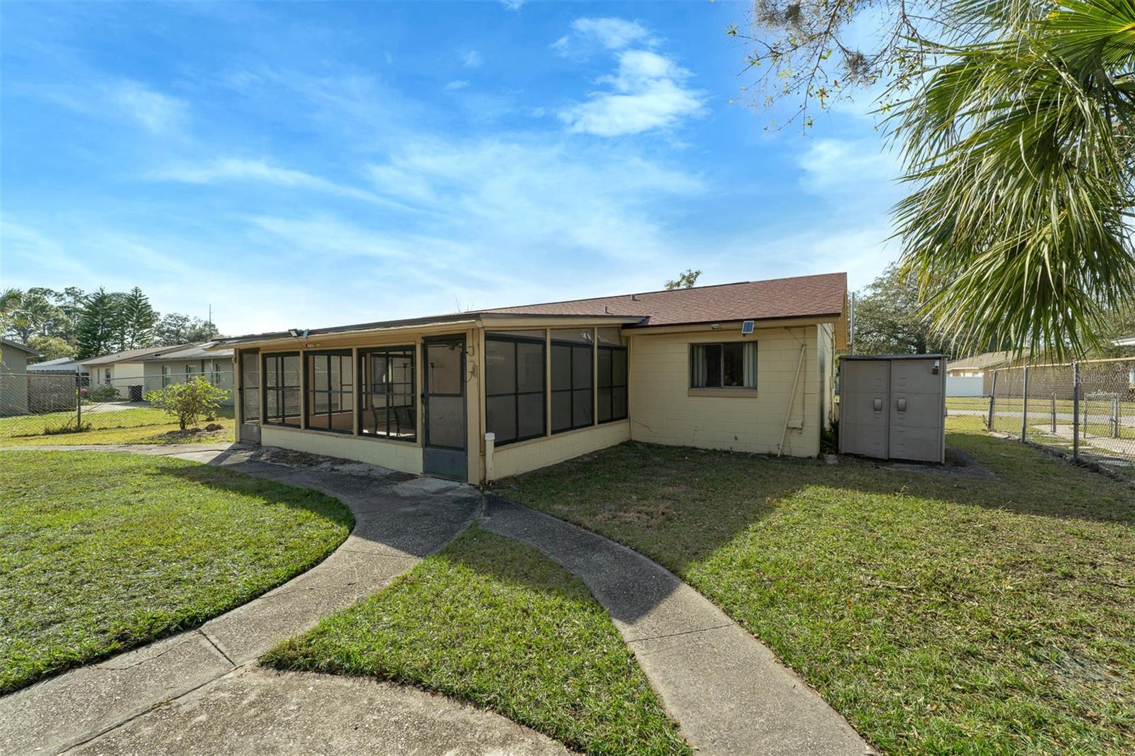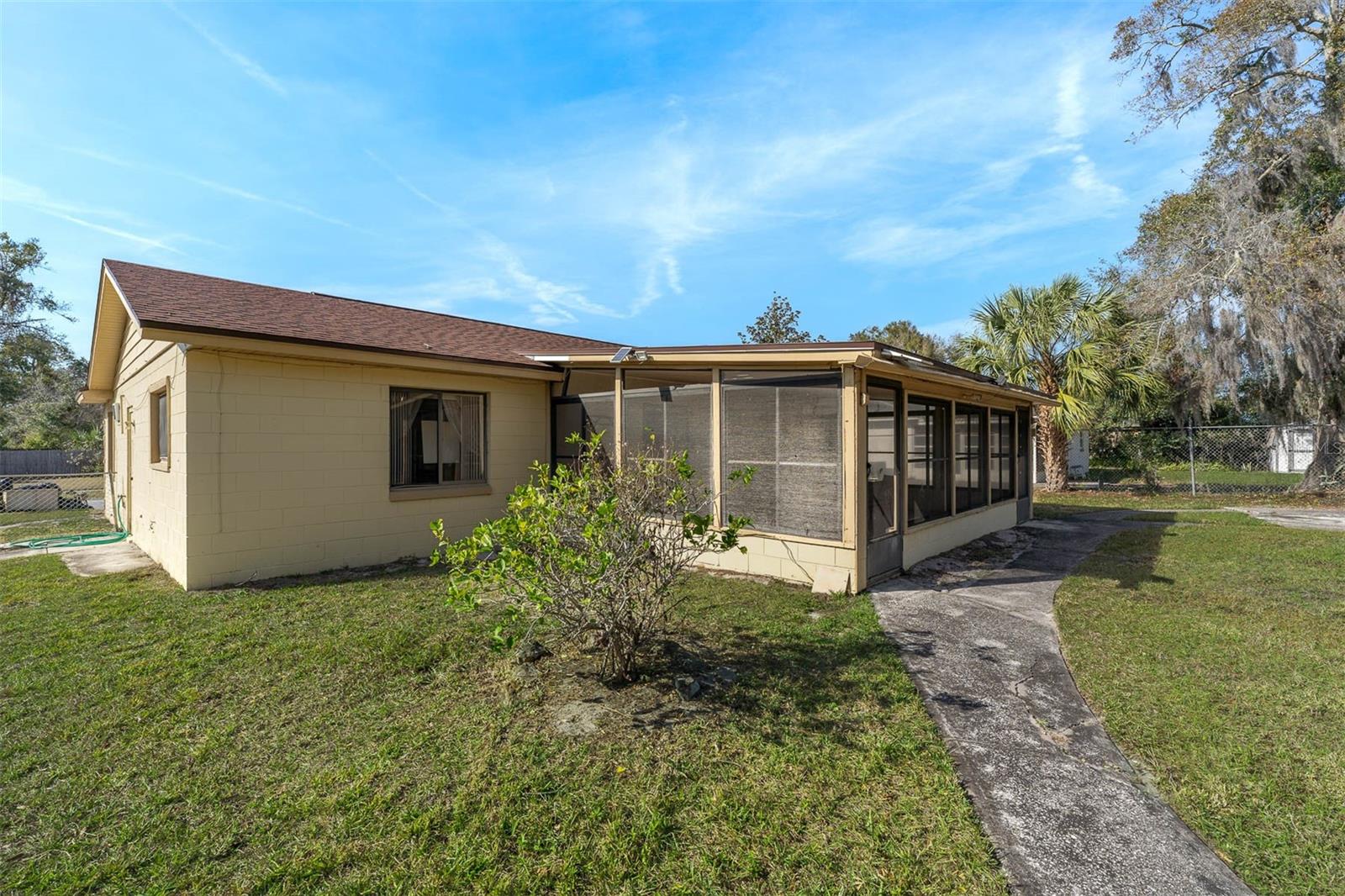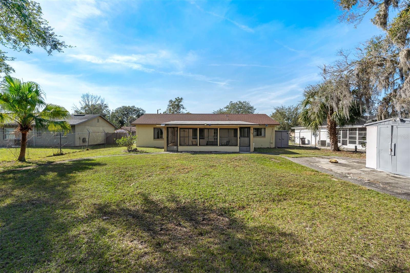 Discover the perfect blend of space, comfort, and value with this beautifully maintained 4-bedroom, 1.5-bathroom home on a generous 0.26-acre lot. Fully furnished and move-in ready, this property offers incredible potential at a price well below market value. Step inside to find a spacious and inviting kitchen, ideal for creating memorable meals and entertaining guests. Relax and unwind on the oversized screened-in patio, perfect for year-round outdoor enjoyment. The large lot features two versatile sheds, perfect for storage, workshops, or hobbies. The property offers convenient dual access from both the front and rear streets, adding to its unique appeal. Recent updates include a new roof installed in October 2021, providing long-term peace of mind.
