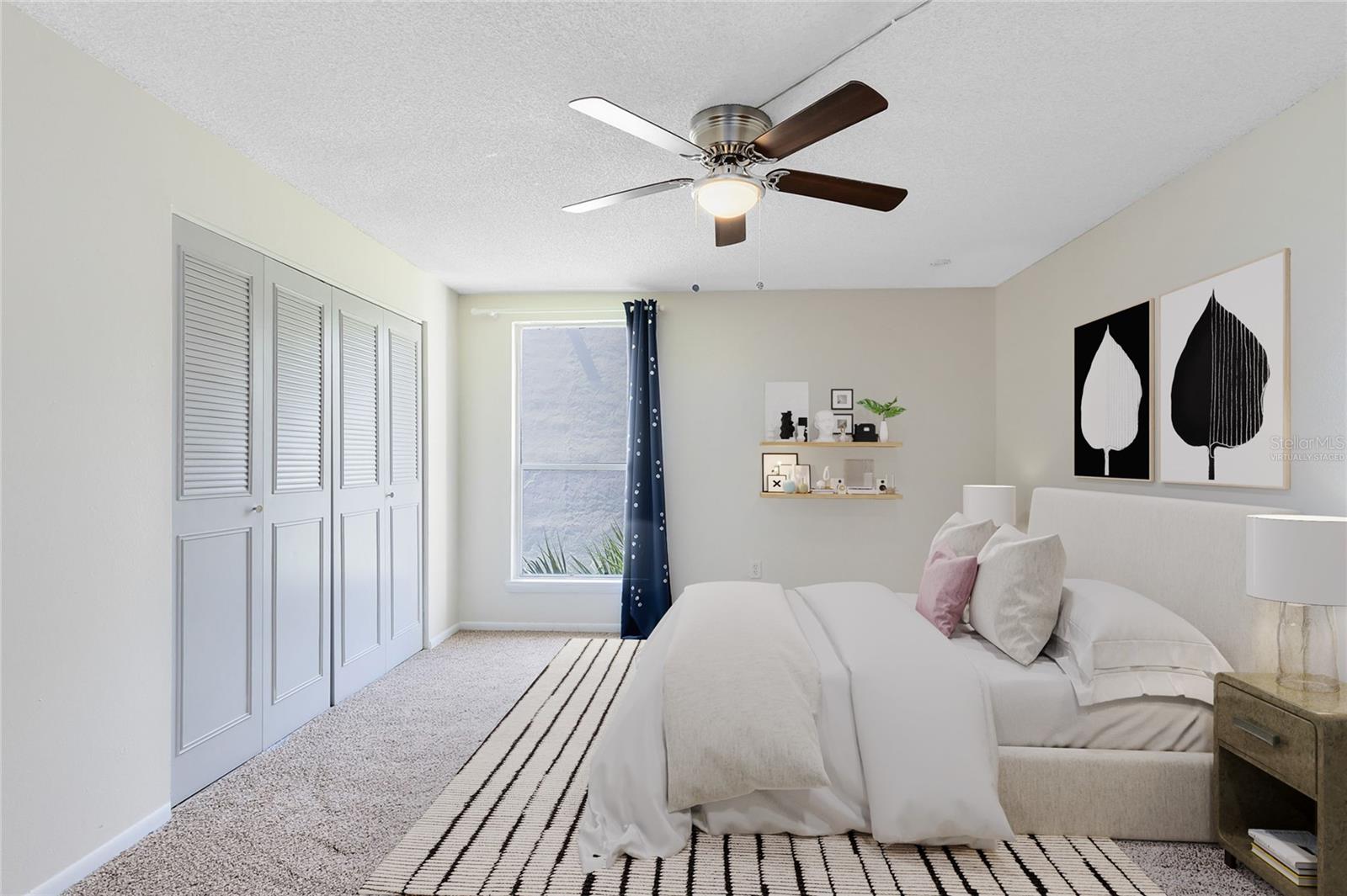 One or more photo(s) has been virtually staged. Welcome to this spacious, optionally furnished 2-bedroom, 2-bathroom condo located in the heart of Altamonte Springs with stunning views of Lake Orienta. This second-floor unit offers the best of both worlds—ground floor access from the parking area and elevated lake views from your private screened-in balcony. Step inside to find a smart and functional layout: the dining room and kitchen are to your left upon entry, while the spacious living room sits to your right. Down the hall are two generously sized bedrooms and two full bathrooms, providing comfort and privacy for residents and guests alike. The heart of the home is the expansive family room filled with natural light and sliding glass doors that open to the screened porch—perfect for enjoying your morning coffee while overlooking the water. The kitchen features updated stainless steel appliances, modern lighting, sleek countertops, and ample cabinet space. Both bathrooms include solid surface vanities, updated lighting, tile flooring, modern faucets, and tile shower surrounds for a clean, contemporary look. Notable improvements include a new electric panel, full interior paint, new carpet, and a new AC system—all completed in 2021. Other recent upgrades include laminate flooring in main living areas and newer ceiling fans throughout. The condo also comes equipped with an in-unit washer and dryer, making everyday living even more convenient. The primary bedroom offers tranquil lake views, a spacious walk-in closet, and an en-suite bath with dual sinks. This quiet lakefront community is designed for those who love the outdoor lifestyle—offering private access to Lake Orienta with a boat ramp, onsite boat storage, and opportunities for fishing, canoeing, or paddleboarding. Residents also enjoy amenities like 3 pools, tennis courts, a clubhouse, laundry facility, and more. Ideally located just minutes from Altamonte Mall, grocery stores, restaurants, and major highways, and within easy reach of downtown Orlando and the airport. HOA dues include water, sewer, trash, and building maintenance. Don’t miss your chance to experience serene lakeside living in this beautifully maintained condo. Schedule your showing today!