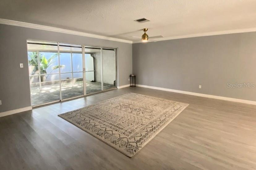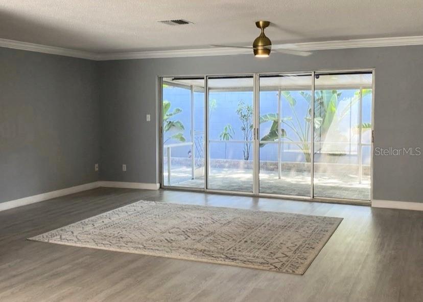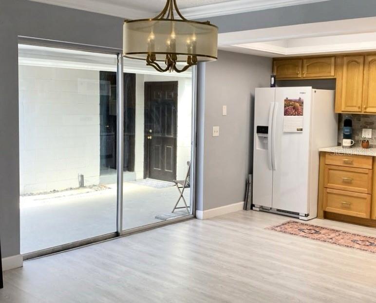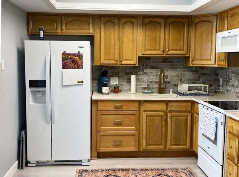 Discover serenity and calm in this inviting 2-bedroom, 2-bathroom villa-style condo. Step into an expansive open layout adorned with luxurious vinyl flooring, complemented by a courtyard entry that sets a tranquil tone from the moment you arrive. The kitchen boasts wood cabinets, full pantry and a brand-new range, perfect for culinary adventures. Relaxation awaits through double sliding doors that open onto a spacious screened lanai, ideal for enjoying the outdoors in comfort. An additional private patio extends your living space beyond, offering a secluded retreat. The large primary bedroom ensures comfort and privacy. A screened courtyard off the kitchen leads to a sizable utility room with extra storage and convenient access to the carport. Enjoy a peaceful, low-maintenance lifestyle in a prime location close to shopping, dining, major highways, and the scenic Cranes Roost Park. Imagine watching fireworks from the comfort of your own home—an everyday luxury that awaits in this serene retreat. Luxury vinyl floors, fridge and microwave 2020. Welcome Home!