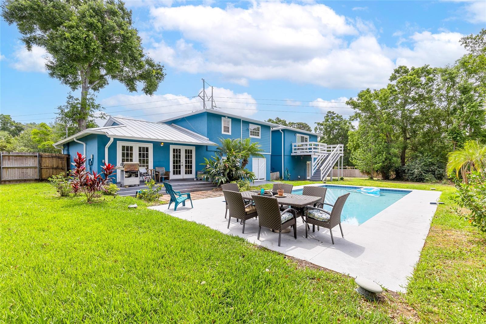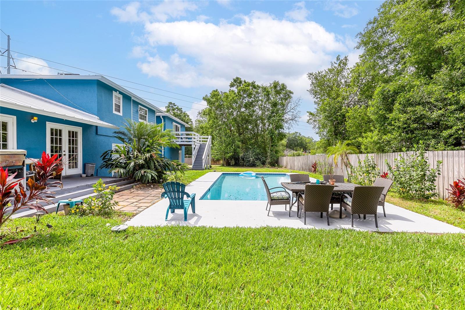 Welcome to this spacious 4 bedroom 3.5 bath home in the sought after community of Sanlando Springs! This quiet neighborhood has NO HOA and is centrally located near the Altamonte Mall, restaurants, shopping, hospitals, community parks, I-4 and SR 434. This charming pool home is situated on a little under .5 acre. When you enter the home there is a dining room that could also be used as a living room. The kitchen has GRANITE COUNTERTOPS, STAINLESS STEEL APPLIANCES, and WARM WOOD CABINETS. Next to the kitchen is a breakfast nook for casual meals and a beautiful view of the pool. The large living room has a half bath and new sliding glass doors that give this room an airy bright feel. Upstairs are 2 generous sized bedrooms and the primary suite with a primary bathroom. Above the oversized 2-car garage is a huge IN-LAW SUITE with a FULL BATH, KITCHENETTE and BRAND NEW SLIDING GLASS DOOR that goes out to a deck. You can enjoy your morning coffee with a pool view. This living space has a PRIVATE ENTRY WAY that could be used as a GARAGE APARTMENT. The over-sized 2-car garage faces the side of the home. Pool has a large patio that has plenty of space for outdoor furniture. Updates include: BRAND NEW METAL ROOF and RAINGUTTERS in 2024, NEW SLIDING GLASS DOORS, NEW EXTERIOR PAINT, REPIPED IN 2020, RECESSED LIGHTING AND CEILING FANS throughout the home, septic tank pumped less than one year ago and home is generator ready. Enjoy pool parties and gatherings in this spacious beautiful home! Schedule your private showing today!