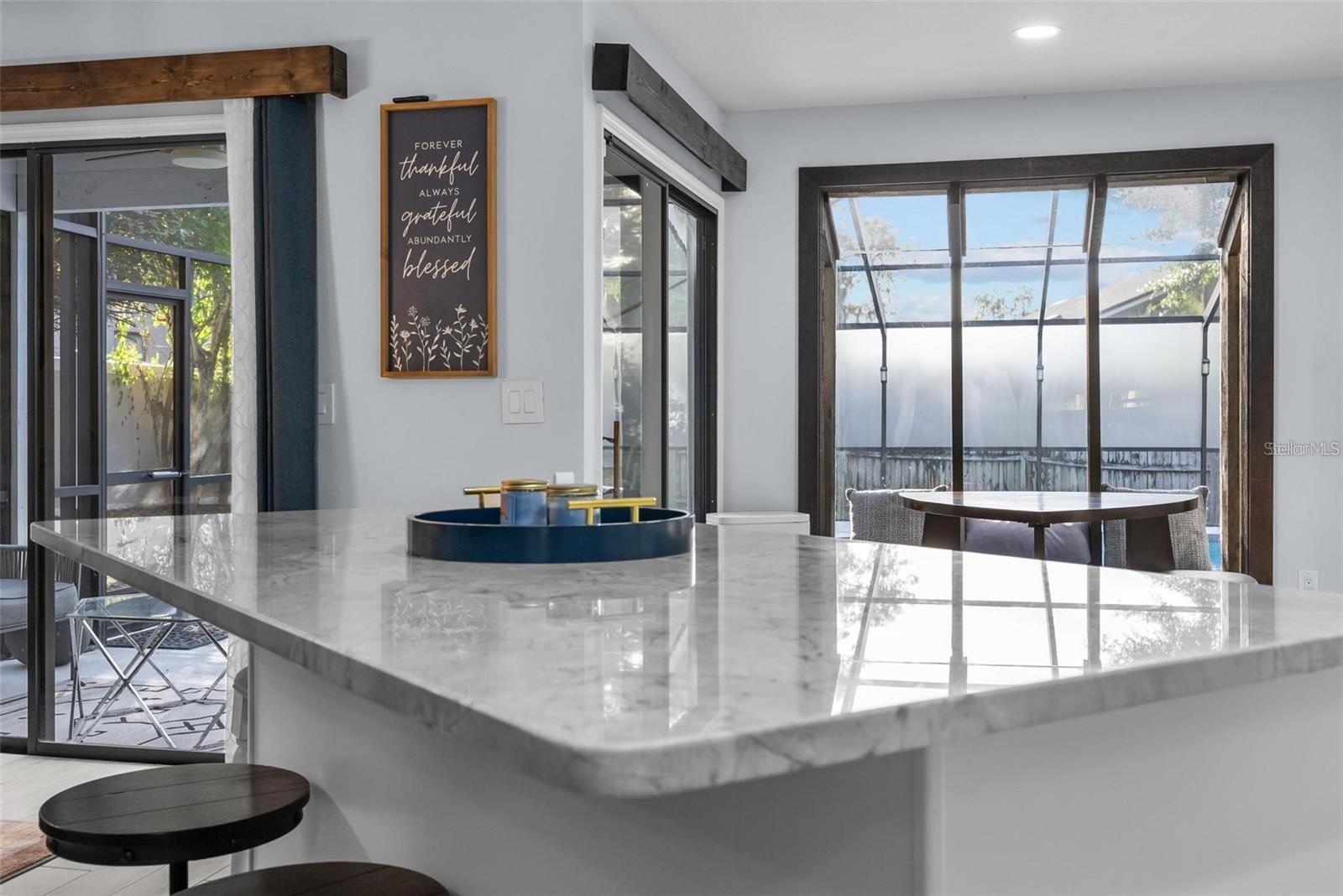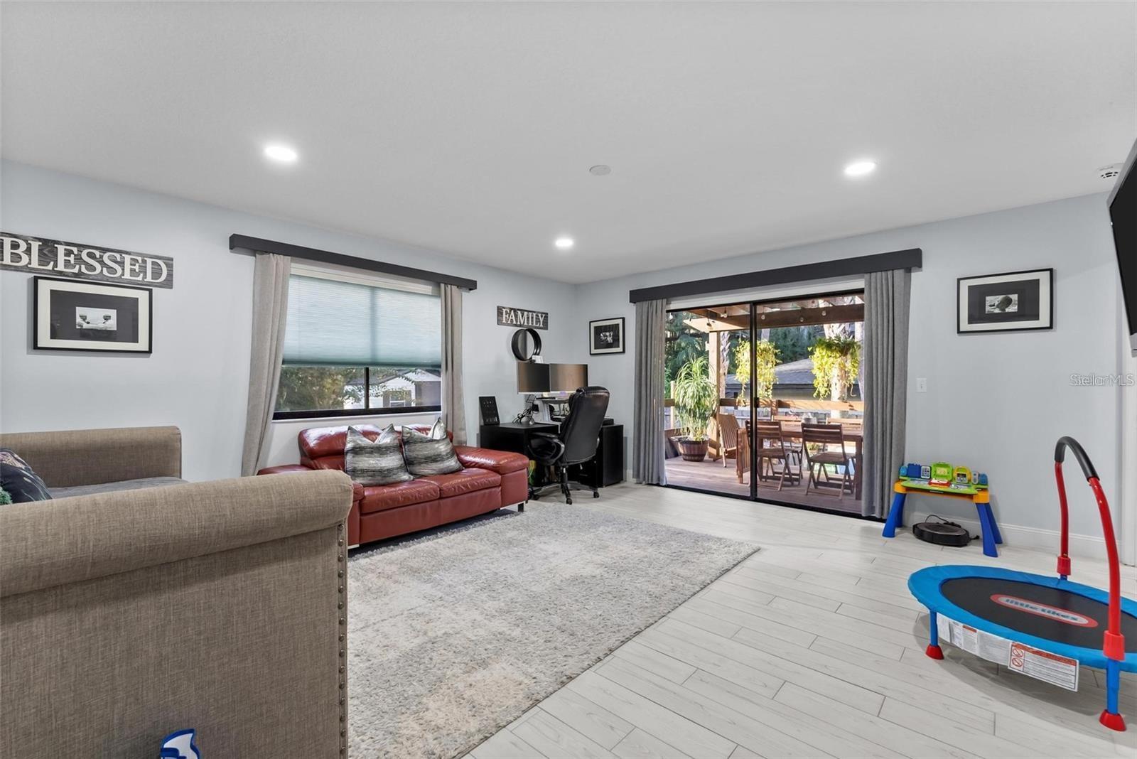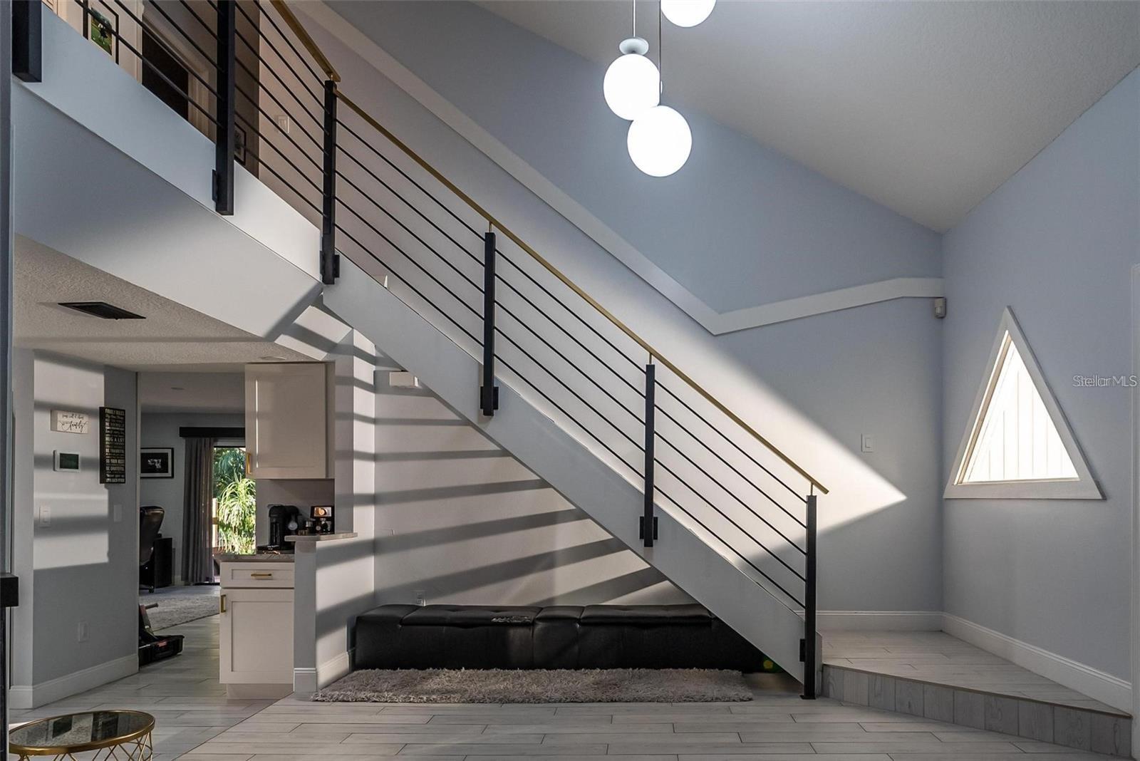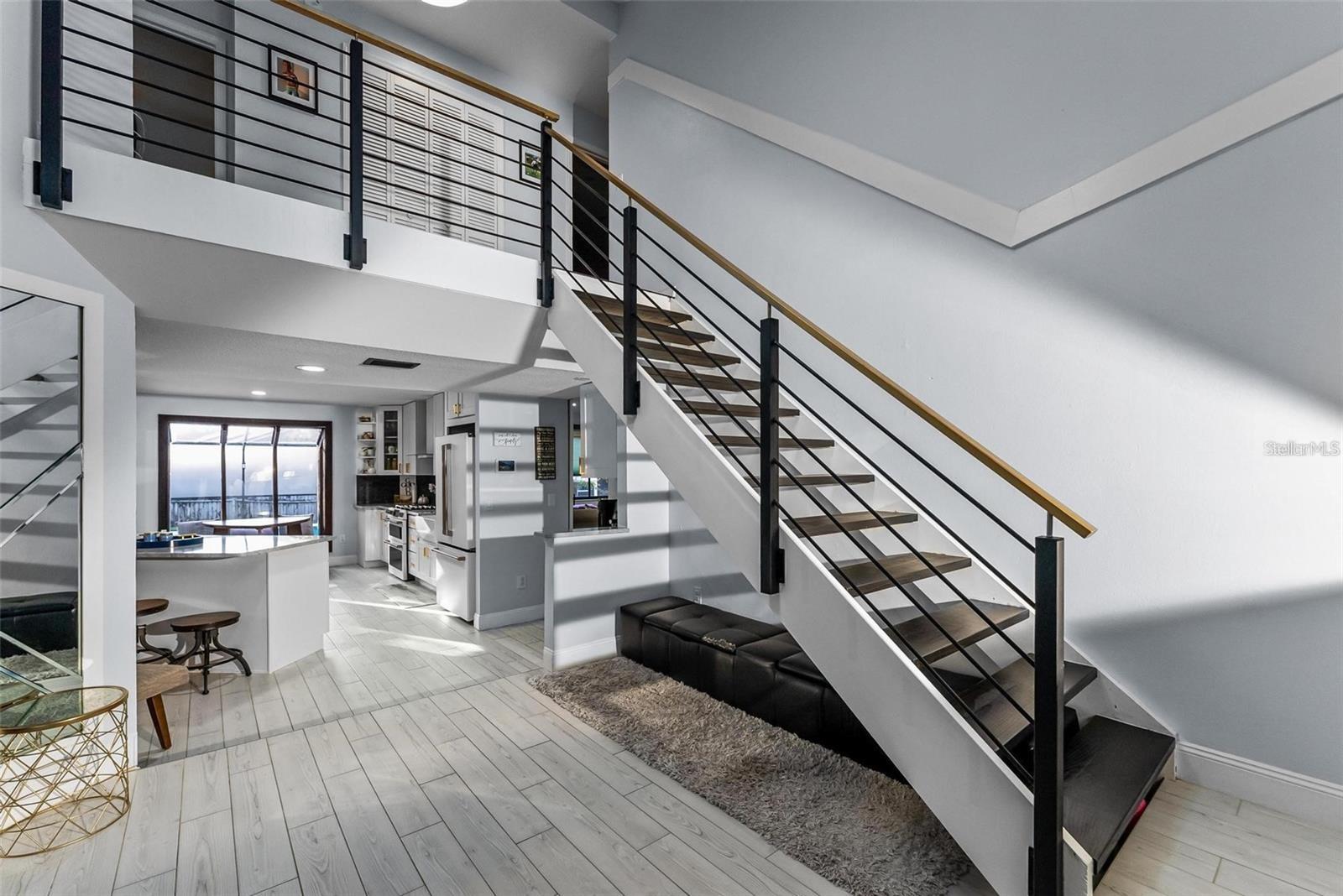 Prepare to Be Impressed by This Exceptional Home! Step inside and be greeted by an abundance of natural light streaming in from three sides, highlighting the soaring 20-foot ceilings and creating an expansive, airy feel. A stunning custom-engineered handrail staircase adds a unique architectural touch, setting this home apart. Completely updated from top to bottom, this home boasts a modern open-concept kitchen with 8-foot soft-close cabinets, a spacious island perfect for entertaining, and panoramic views of the pool deck through oversized windows—including a charming sunroom-style window in the kitchen. The versatile downstairs living room features an adjoining full bathroom and can easily function as a guest suite or additional bedroom. Upstairs, the master suite offers a fully remodeled bathroom and a private sunroom off the balcony—ideal as an office, playroom, or creative space. Additional highlights include: Newer systems: A/C (2018), Roof (2020) No HOA Oversized driveway with additional access to the backyard This one-of-a-kind property blends style, functionality, and comfort. Schedule your private showing today!