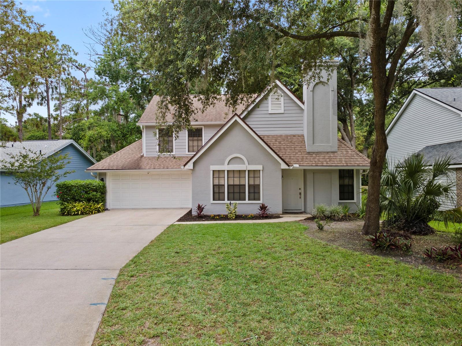 Welcome to this beautifully maintained 3-bedroom, 2-bathroom gem nestled in the highly desirable Country Creek, Southridge community. From the moment you step inside, you’ll be greeted by a warm and welcoming ambiance, abundant natural light, and a thoughtfully designed floor plan that balances comfort, functionality, and style. At the heart of the home sits a modern, sun-filled kitchen featuring sleek quartz countertops, generous cabinetry, and a bright dinette area, the perfect spot to start your day with coffee and sunshine. Conveniently located nearby, the indoor laundry area adds an extra layer of practicality to your everyday routine. The spacious living room provides a cozy yet elegant gathering space, highlighted by a built-in electric fireplace that sets the tone for relaxing evenings, movie nights, or quiet moments at home. The split floor plan ensures privacy and flexibility. The primary suite is conveniently situated on the main floor, offering a calm retreat, while two additional bedrooms upstairs provide ideal spaces for family, guests, or a comfortable home office. Step outside to your private backyard sanctuary, complete with an open patio and mature landscaping that enhances the sense of tranquility. The expansive side yard allows room to plant privacy hedges or create your own secluded retreat for gatherings, barbecues, or peaceful afternoons outdoors. As part of the Country Creek community, residents enjoy access to two sparkling pools, perfect for cooling off on warm Florida days or connecting with neighbors in a resort-style setting. Located within the top-rated Lake Brantley School District and just minutes from shopping, dining, parks, and major roadways, this home truly has it all: comfort, convenience, and charm. Don’t miss the opportunity to make this exceptional home yours; it’s one you’ll want to experience in person!