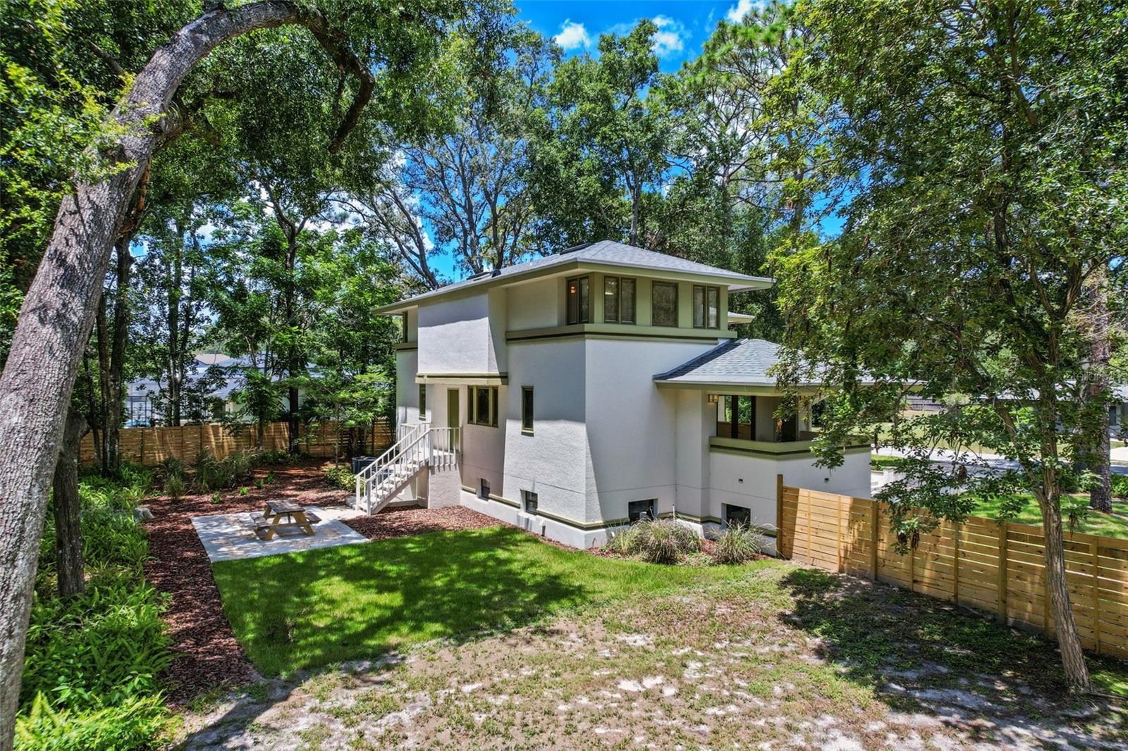 Located in the heart of Altamonte Springs, this one-of-a-kind architectural gem blends timeless design with modern updates. Designed and built by a local architect inspired by the work of Frank Lloyd Wright, this 2,800 sq. ft. home offers 3 bedrooms, 3.5 baths, and distinctive craftsmanship throughout. Rich wood detailing flows through the spacious interior, complemented by a brand-new kitchen featuring quartz countertops, modern appliances, and custom finishes. The stunning Florida room, anchored by a new oversized picture window, invites natural light and tranquil views. Recent updates include fully renovated bathrooms, fresh paint, new fixtures, tile and cork flooring, updated landscaping, and a fenced backyard with a new patio perfect for entertaining or relaxing in privacy. Nestled in a quiet neighborhood yet minutes from premier shopping, dining, and conveniences, this property offers a rare combination of character, comfort, and location! This home is truly a must see!