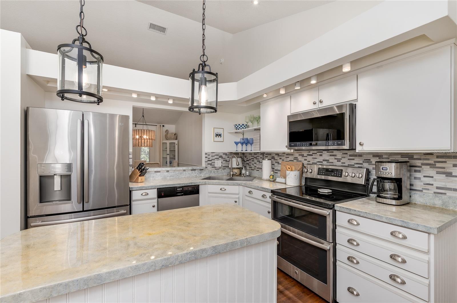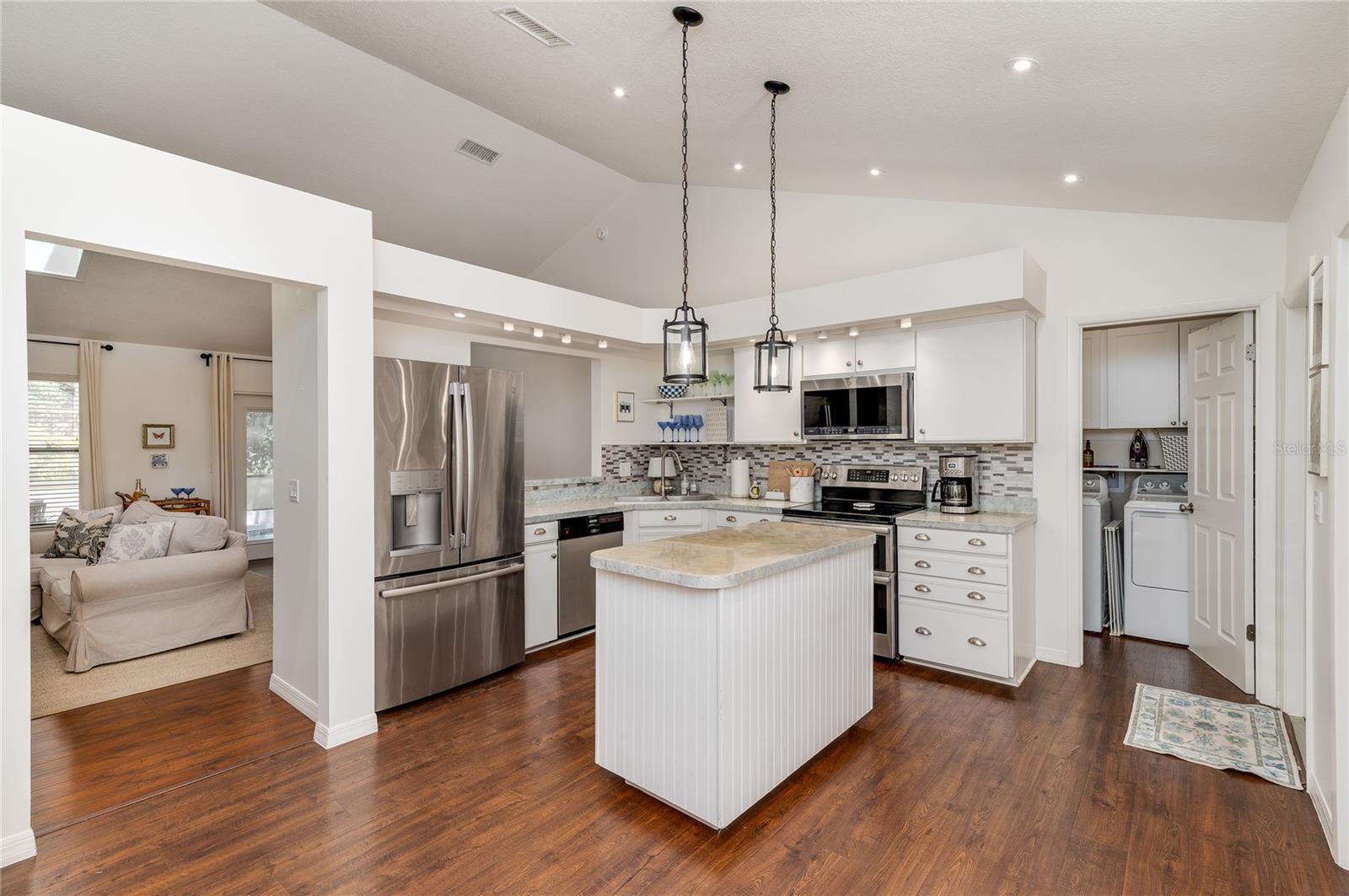 Move-in ready Country Creek Charmer. Don't miss this immaculate split-plan pool home on a quiet cul-de-sac with lush landscaping, long paver walkway, and two-car garage; the open-concept living area features a vaulted ceiling, wood burning fireplace, and wood-grain vinyl flooring, while the dining room’s French doors open to a private heated pool with enclosure—perfect for entertaining. The kitchen includes a center island and breakfast bar, closet pantry and room for a breakfast nook. There are unlimited options to make this kitchen your dream kitchen. Recent updates include: 2025 re-plumb, air ducts ,and fresh interior paint; 2024 refrigerator; 2023 HVAC and French doors; 2020 heated pool/enclosure, gutters and bathroom updates; 2019 front pavers; 2018 exterior paint/shutters, recessed kitchen lighting, range, microwave, window trim and laundry cabinets; and 2017 waterproof vinyl flooring in master/kitchen/laundry plus numerous fixtures and finishes. Additional highlights include a timed irrigation using reclaimed water, and community amenities—2 pools with clubhouse, tennis/racquetball courts, basketball courts and playgrounds—conveniently located just minutes from I-4, 429, Publix, Costco, Target, Home Depot, Genesis sport club, hospitals, restaurants and shopping. Pristine and thoughtfully maintained; this home is ready for its next owner. ***Ask about the assumable FHA option***