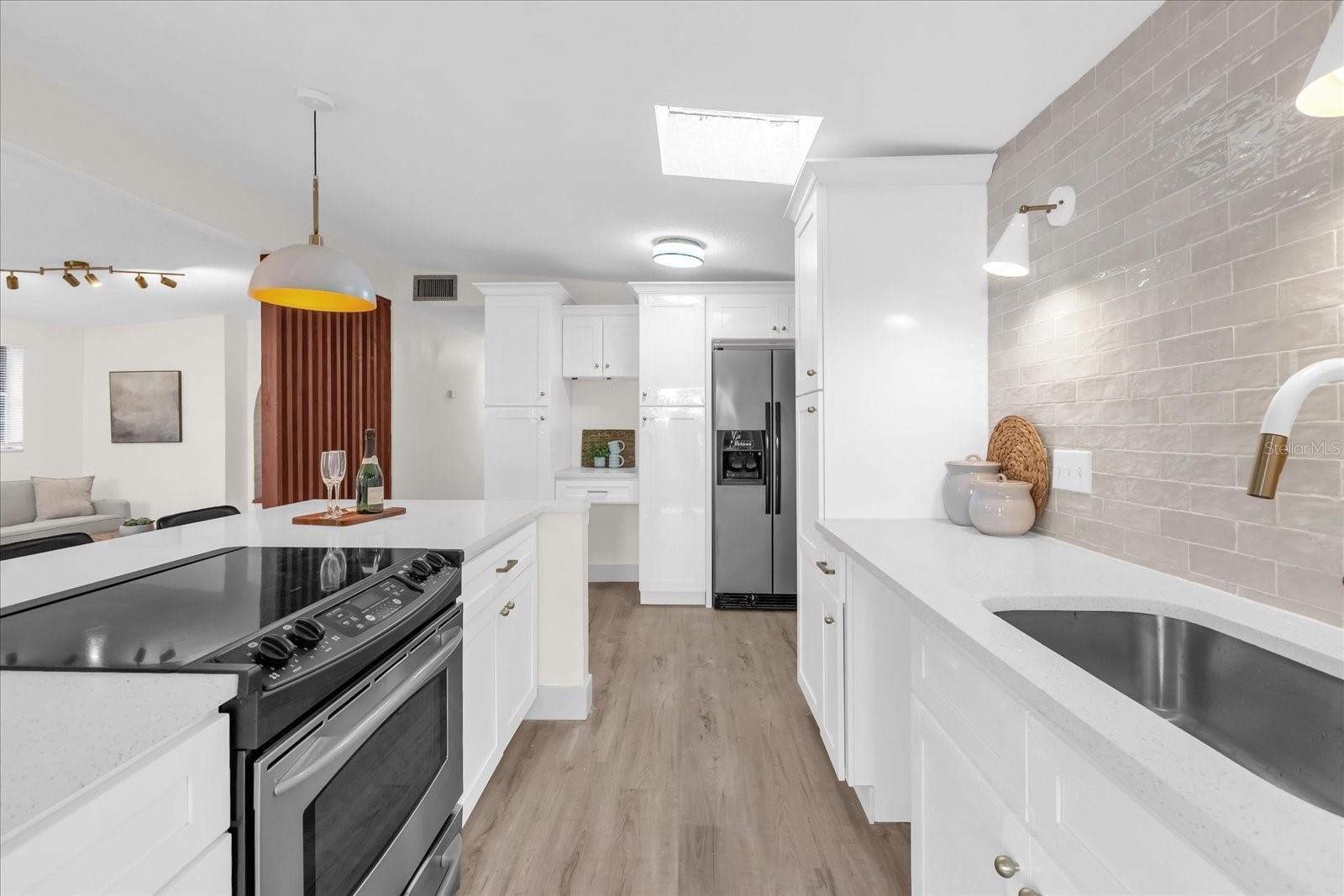 Lightning-fast response—see today and move in within 30 days. This beautifully custom-renovated 3-bedroom, 2-bath home at 409 Oakhurst Street is designed for buyers who want style, comfort, and location working together. From the moment you arrive, the home feels intentional—warm, refined, and easy to live in. Inside, a cozy living room with a custom arched reading nook invites you to slow down and stay awhile, while the designer kitchen and dining space delivers the kind of everyday luxury buyers crave, featuring a cooktop island, skylight, built-in desk area, and elegant white-and-gold finishes that make the space feel bright, open, and elevated. The spacious family room anchors the home with a dramatic real rock focal wall and custom built-in shelving in deep blue and stained wood, creating a setting that feels both impressive and comfortable. The primary bathroom is a true retreat, finished with wood-look tile, gold fixtures, and a high-end hands-free smart toilet, while the guest bath offers crisp deep-blue and white finishes. A black marble tile mudroom with custom wood storage adds practical luxury to daily life. Major updates include a brand-new 2025 roof and fresh sod for strong curb appeal. Beyond the home itself, the location seals the deal—just minutes from Altamonte Mall for shopping and dining, Uptown Altamonte with its vibrant community events, restaurants, and waterfront paths, and the brand-new Rolling Hills Park development offering modern green space and recreation. This isn’t just a home—it’s a lifestyle upgrade in one of Altamonte Springs’ most connected and evolving areas, ready for you to step in and start living.