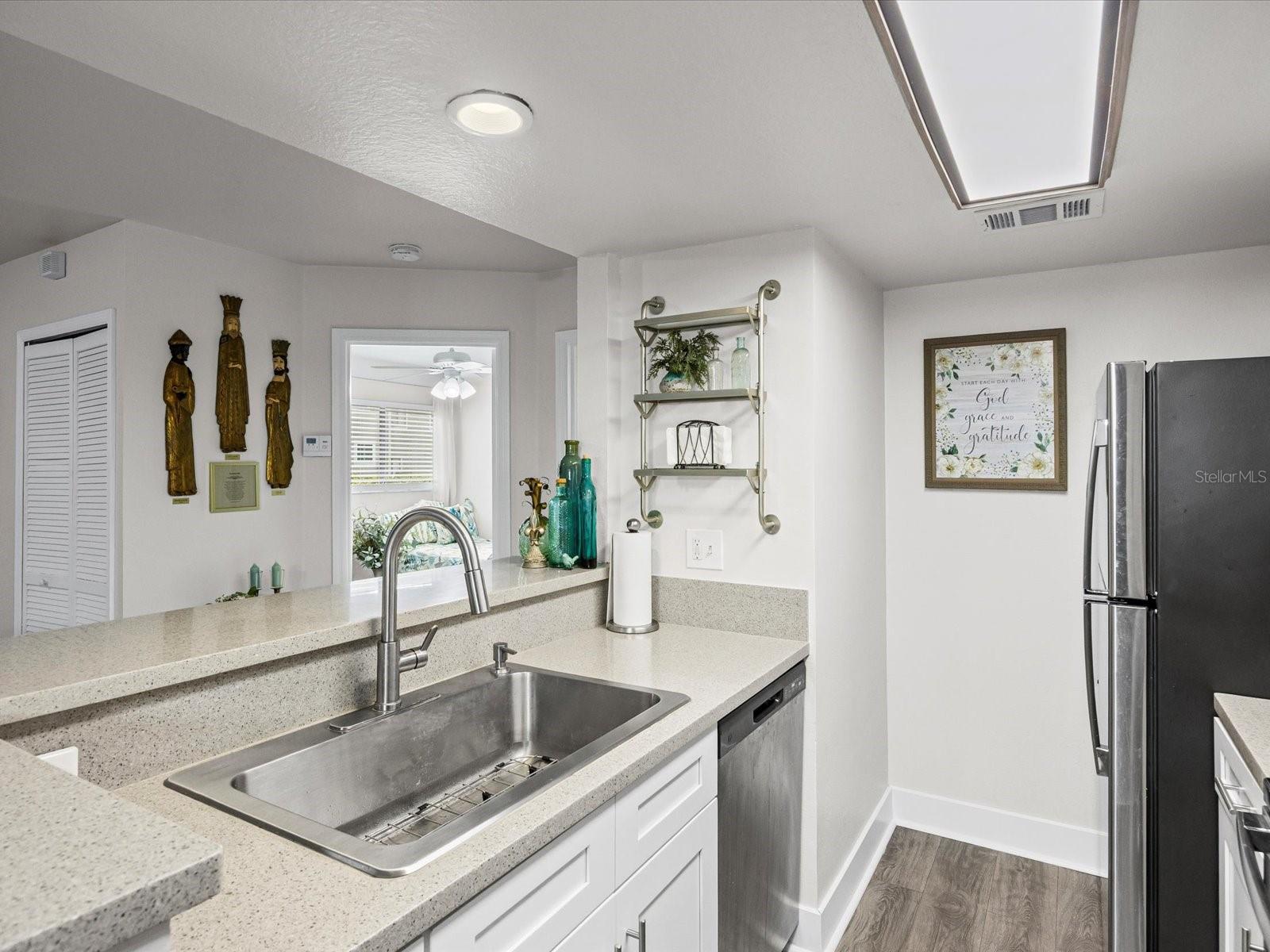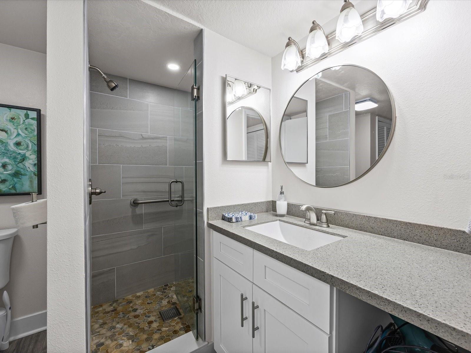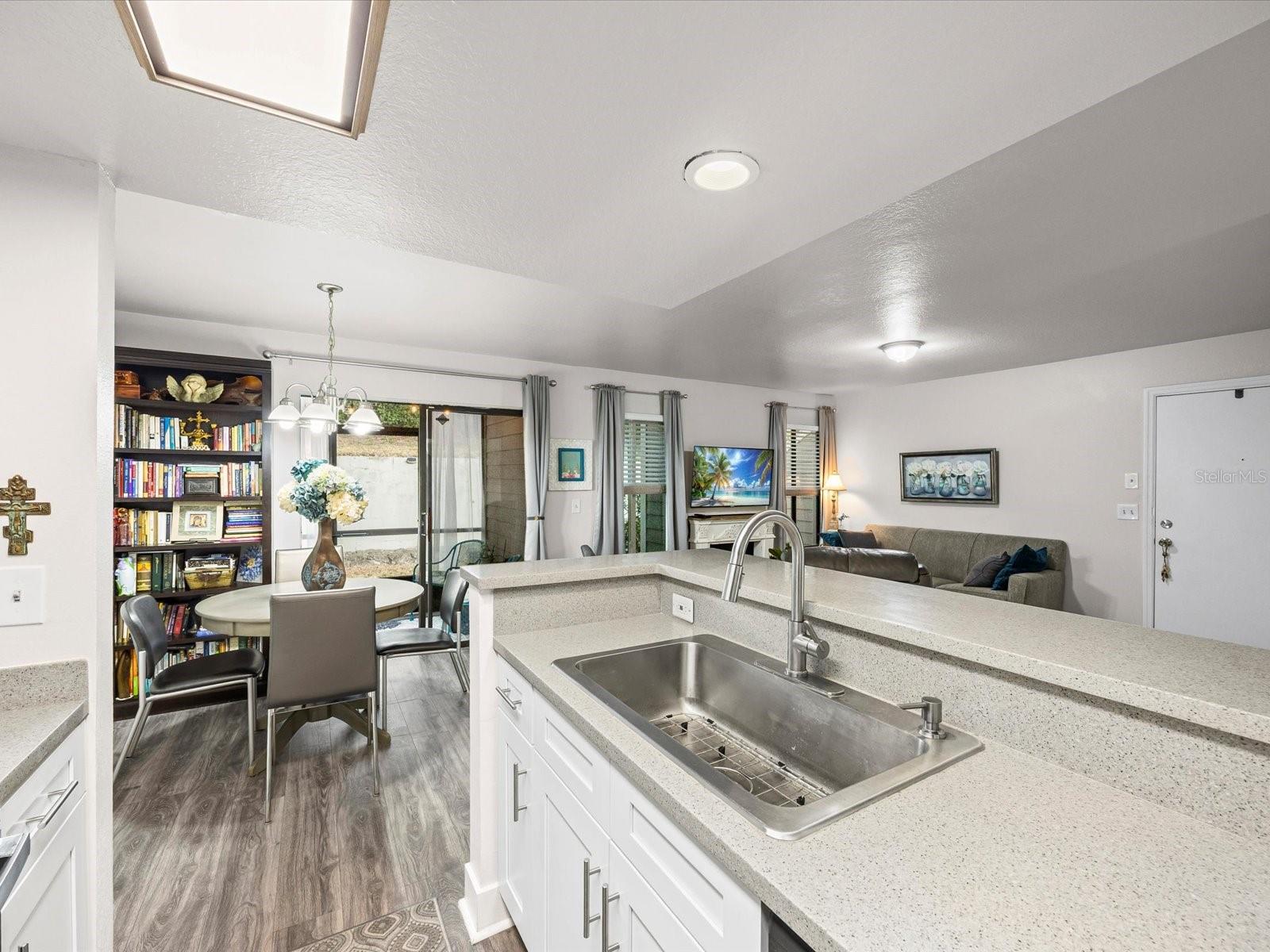 Welcome to this beautifully renovated, quiet end-unit condominium located within the desirable Sunridge community of Altamonte Springs. This move-in-ready residence has been thoughtfully updated throughout with modern finishes, quality improvements, and functional enhancements that offer comfort, efficiency, and ease of living. The interior features laminate flooring throughout, freshly refinished ceilings, and a bright, open layout that allows natural light to flow effortlessly through the space. The updated kitchen has been designed with both style and functionality in mind, showcasing custom soft-close cabinetry accented with brushed nickel hardware, new countertops, and brand-new stainless steel appliances. A generously sized food pantry provides excellent storage and organization, making the kitchen ideal for both everyday use and entertaining. Additional interior conveniences include a new full-size side-by-side washer and dryer located in the laundry closet, along with a large linen closet for added storage. The spacious primary suite offers a comfortable retreat with a walk-in closet and a private en-suite bathroom featuring a custom rebuilt lighted shower, new sink and faucet, and a dedicated vanity beauty bar. Hampton Bay ceiling fans are installed in each bedroom, enhancing airflow and year-round comfort. The main living area is highlighted by a wood-burning fireplace, adding warmth, character, and ambiance to the home. Sliding doors lead to a screened-in porch that includes a locked storage closet and a paver exit to a semi-private backyard area, providing a peaceful outdoor space ideal for morning coffee, relaxing evenings, or light gardening. The property benefits from a prime end-unit location, offering additional privacy and reduced shared walls. Additional features include one assigned parking space and low HOA fees. The community is conveniently situated near AdventHealth Altamonte Springs, Altamonte Mall, Cranes Roost Park, and Uptown Altamonte, offering access to shopping, dining, entertainment, walking trails, waterfront views, and regularly hosted community events. With close proximity to major roadways, employment centers, medical facilities, and recreational amenities, this home provides an excellent balance of comfort, convenience, and lifestyle. This is a rare opportunity to own a turn-key condominium in a well-established and highly sought-after Altamonte Springs community.