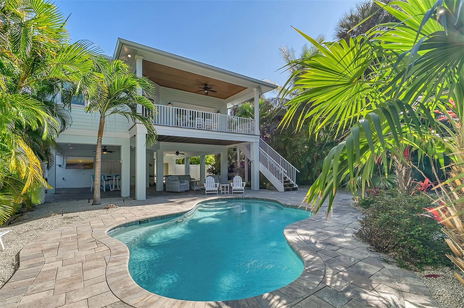 Experience the epitome of coastal luxury at this 3BR/2BA haven nestled in the heart of Anna Maria. This pool home is a true gem, offering a perfect blend of luxury, craftsmanship and location. Built by Gagne Construction, one of the area's top builders, this home exudes quality and attention to detail. Upon entering, you're greeted by a well-designed great room floor plan, ideal for entertaining guests or enjoying family time. This home was designed with island living in mind focusing on the outdoor space featuring balconies overlooking the backyard paradise. The kitchen is a standout feature, boasting wood cabinets, quartz countertops, a center island with a breakfast bar, designer backsplash, and stainless steel appliances. The high-end finishes continue throughout the home, with crown molding, wood grain tile, custom window treatments, designer light fixtures, and gulf-inspired accents and furnishings adding to the coastal charm. The master bedroom is impressive with its ensuite bathroom. The second and third bedroom are the perfect size and have access to the second bathroom. Outdoor living is a highlight of this retreat, with open-air decks, an oversized 2-car garage, and a backyard oasis featuring a heated pool. The large covered patio provides ample seating, dining space, and even a ping pong table, perfect for enjoying the island's tropical weather. Located just one block from historic Pine Ave, nestled between the Gulf and Bay, this turnkey furnished home offers both luxury and convenience. The location is unbeatable, with Pine Ave's renowned attractions just a short stroll away, the beach only a couple of blocks, and Bean Point just minutes away. Whether you're looking for a family vacation home or an investment opportunity with significant rental history, Spring Haven offers it all. Don't miss your chance to own this extraordinary piece of paradise!