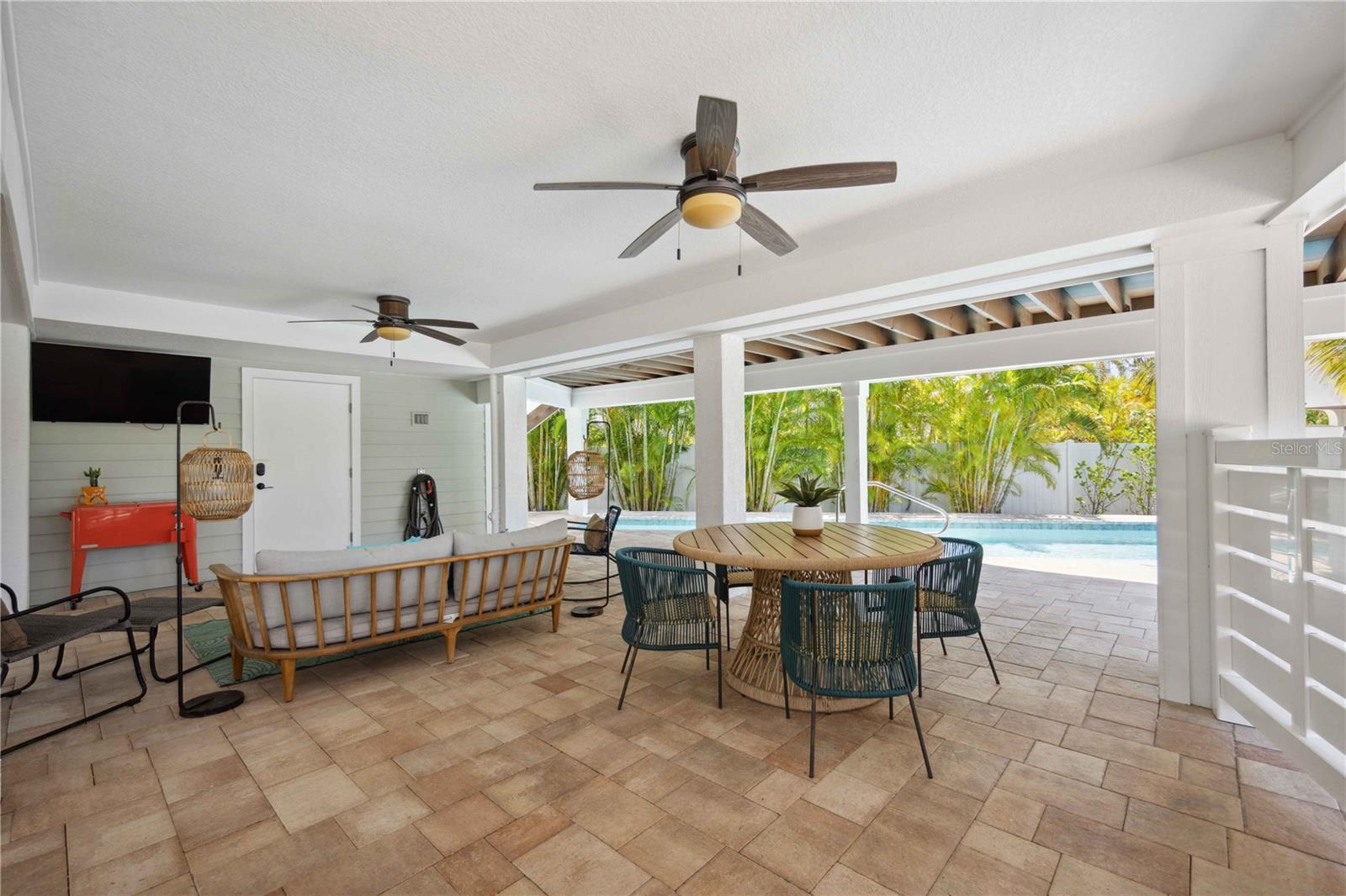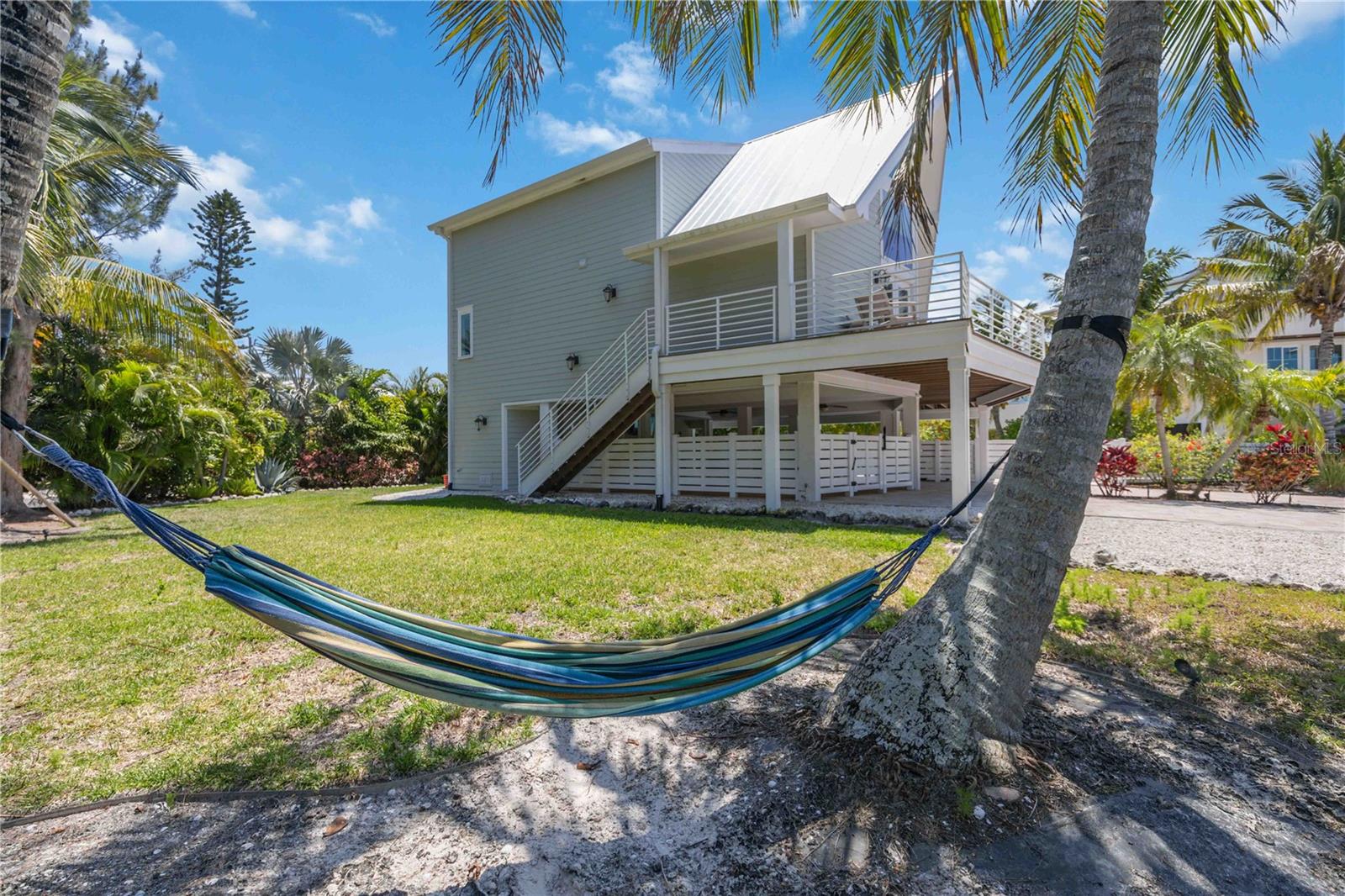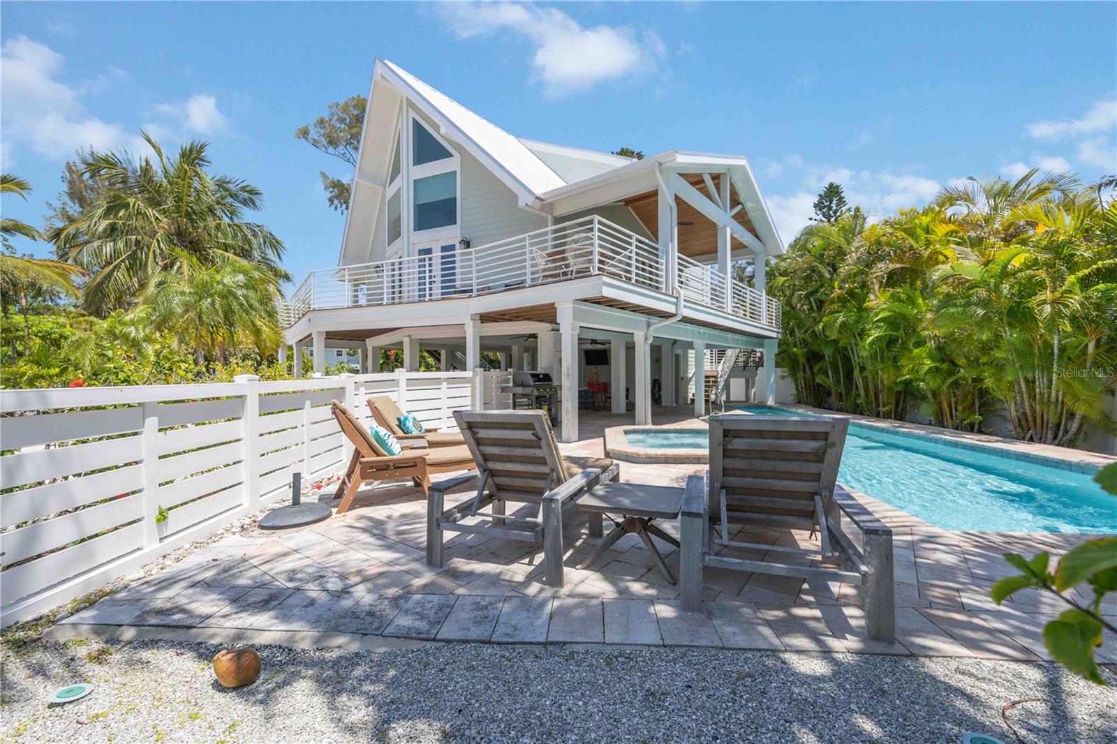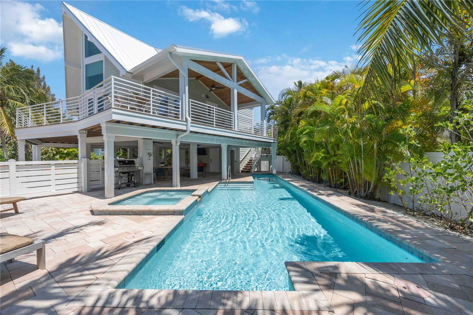 ELEVATED HOME in Anna Maria being sold turnkey. This home weathered the storm remarkably. Main living area on 2nd and 3rd levels are completely livable and ready for move-in; no visible leaks or damage. AC and water heater are elevated and working. The home does not have interior living space or a garage on the ground level; storage closets only (repairs being made). Pool equipment being replaced and landscaping to be freshened. Discover the epitome of coastal living on Anna Maria Island with this stunning elevated beach house. Boasting three bedrooms, 3 1/2 baths, a loft, and family room, this meticulously designed retreat offers both luxury and comfort. Relax in style with your own heated pool and spa, perfect for unwinding after a day of exploring the island's beauty. Enjoy coastal breezes while lounging on the wrap around porch and balcony or on the open-air lower level. Oversized yard is ideal for napping on a hammock, playing volleyball or spending time around a fire-pit.... you can create your own magic. Convenience meets charm as you step outside and find yourself just a leisurely stroll away from the quaint shops and delectable restaurants lining Pine Avenue. Whether you're seeking a peaceful retreat or an adventure-filled getaway, this beach house promises an unforgettable experience. With its tasteful decor and turnkey status, this property presents an enticing opportunity for both personal enjoyment and investment. Don't miss your chance to own a piece of paradise on Anna Maria Island. Schedule a viewing today and let the allure of coastal living captivate you. Rental history available upon request. Plans for addition are also available.