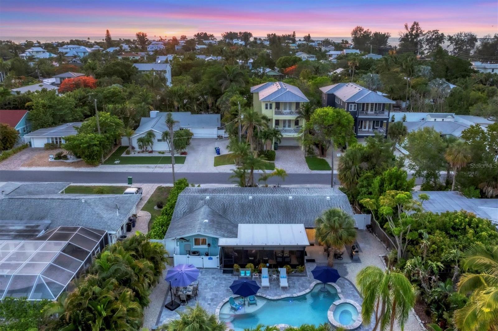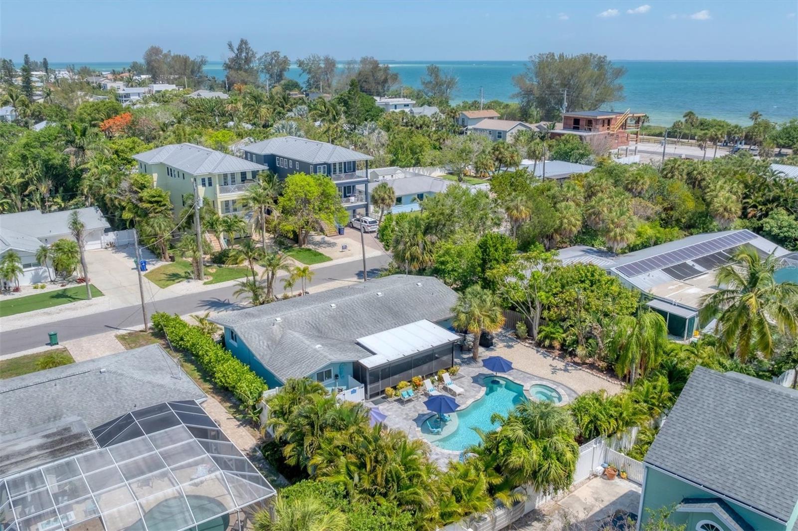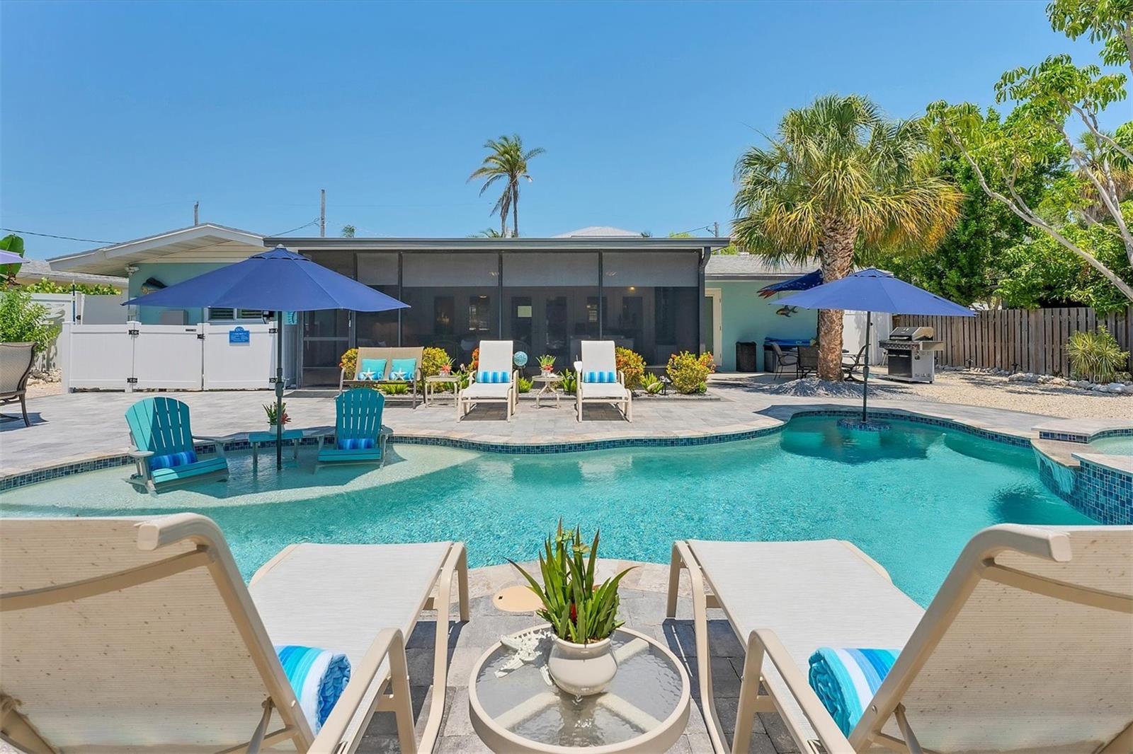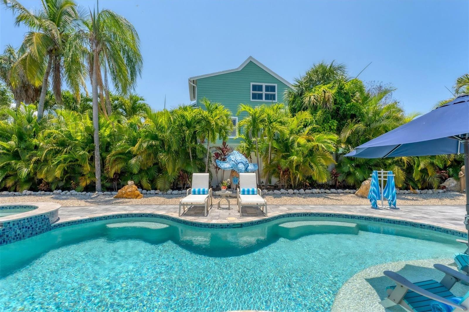 Location! Location! Location! Come Visit…Fall in Love with luxury beach living at it’s finest in this amazing, turnkey furnished, completely and beautifully remodeled 3 bedroom, 3 bathroom resort like pool home with lush island tropical landscaping. This exquisite cottage is nestled on a quiet palm tree lined street, just north of Pine Avenue, in the highly desirable city of Anna Maria, only three houses from the Bay Beach and City Pier!! This is a wonderful investment opportunity, currently showcased as a vacation rental (Bayside Bliss), but could easily be enjoyed as a primary residence or secondary home for our welcomed “snow birds.” This open~ airy~ split floor plan effortlessly combines the seamless living areas of the kitchen, living room, and dining rooms. The updated, beautifully appointed kitchen is sure to impress even the most discerning chef, featuring coastal shaker wood cabinets, turquoise-glass tile backsplash, stainless appliances, quartz counter tops, and spacious island with ample seating and storage, illuminated by the beautiful turquoise pendant lighting above. The stunning dining room, with it’s gorgeous, expansive French doors overlook the extremely spacious screened lanai and the breathtaking views of the spectacular resort-like pool~spa oasis. Enjoy abundant seating in the spacious living room with sleeper sofa, while watching your favorite movie on the large screen TV. After an enjoyable day at the beach or dinner at one of the many wonderful island restaurants, retreat to the serene primary king en-suite with walk-in shower. The second bedroom offers plenty of space with two twin beds. Impressive third bedroom presents a secondary king en-suite with vaulted ceilings, walk-in shower, private entrance, and is on the alternate side of the home for welcomed privacy. Indulge in the epitome of aquatic luxury with a meticulously crafted pool, complete with state-of-the-art heating and cooling systems, fiber optics, offering a symphony of color and ambiance. The tropical pool oasis is adorned by it's captivating centerpiece... the hand crafted giant sea turtle sculpture that was painted by a local artist and previously hung in Mote Marine Aquarium in Sarasota. Enjoy peace of mind with new Hurricane Impact Windows (2022), new electrical wiring and electric panel (2022), all new plumbing with new drain lines to the sewer as well as new supply lines (2022), newly built saltwater pool with pebble tech surface~heated and cooled with fiber optic lighting (2023), pool safety alarms (2023), exterior painting (2022), outdoor shower, new landscaping (2023), new A/C (2018), roof (2011), be sure to ask your Agent for the extensive Home Improvements/Updates List in the attachments. Enjoy all that Anna Maria has to provide with it’s nearby City Pier, Rod & Reel Pier, beautiful world famous beaches, swimming, boating, fishing, abundant island boutiques and shops, plus wonderful island restaurants for your dining pleasure. Enjoy watching the enticing virtual/video tour and call today!!