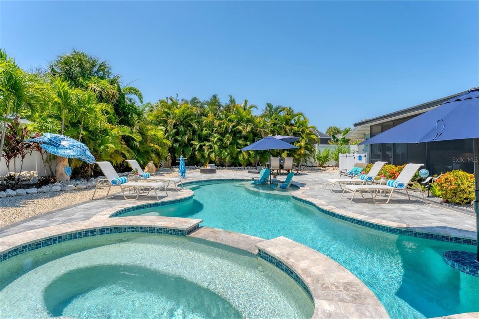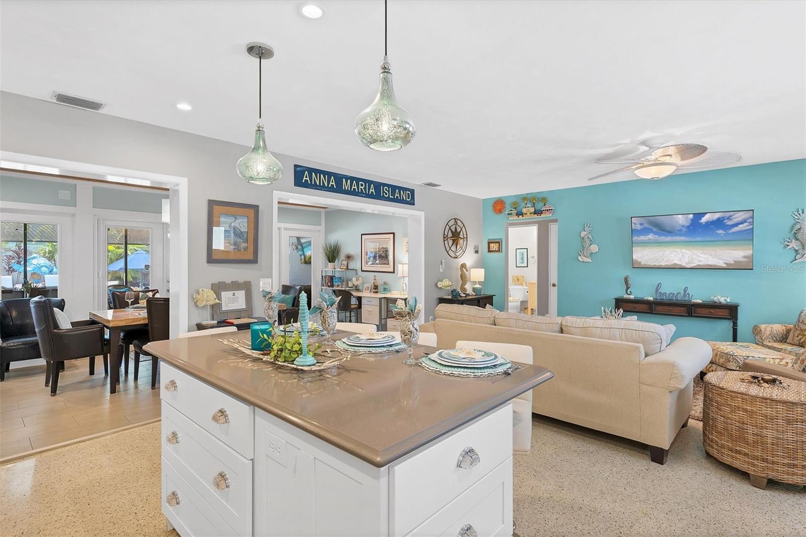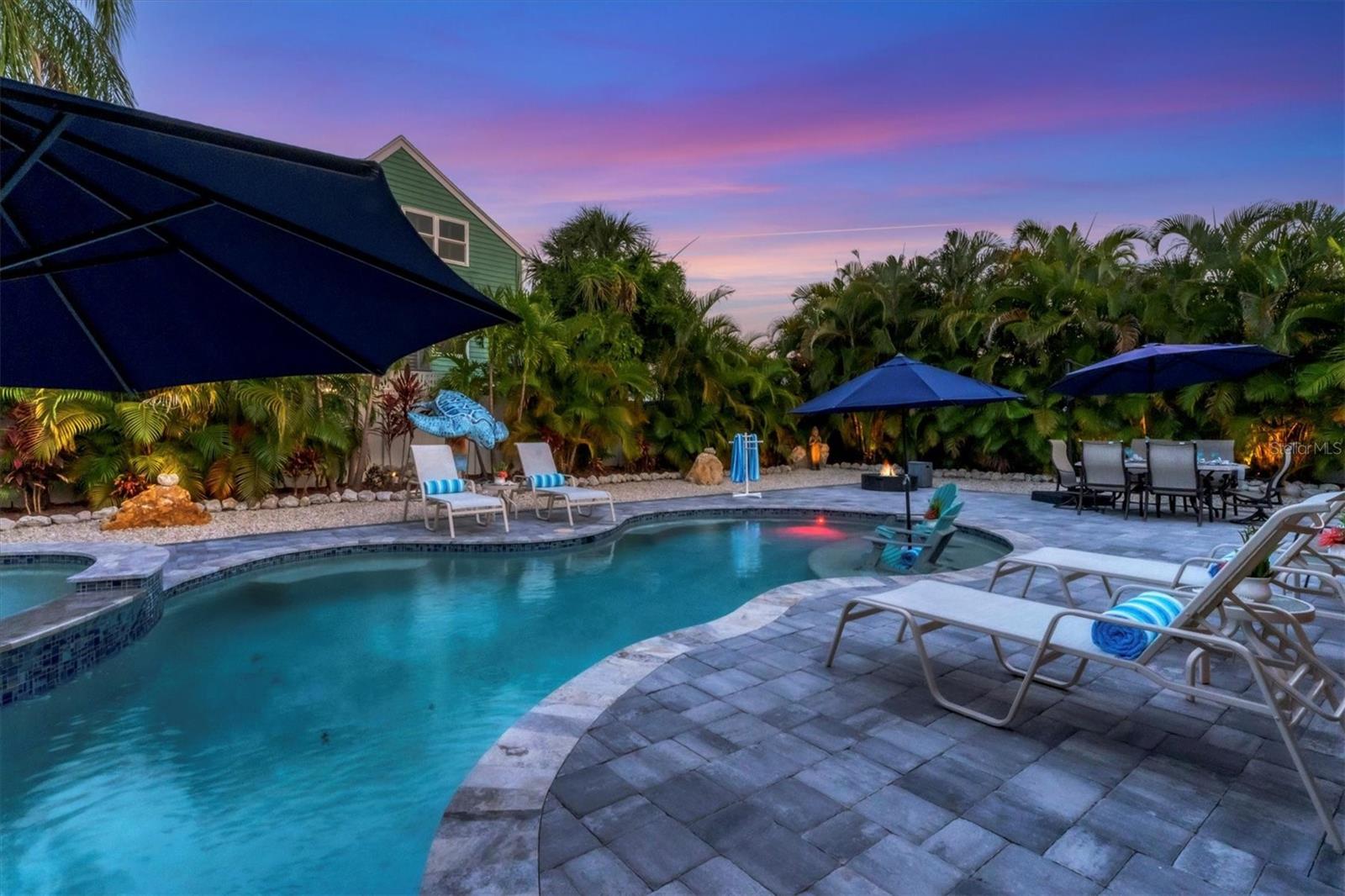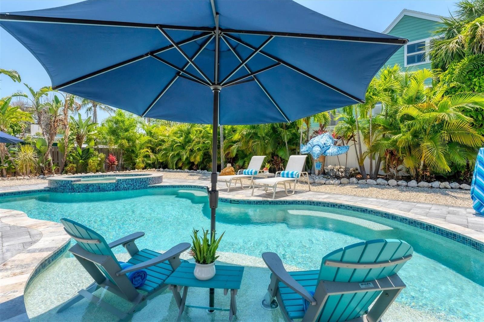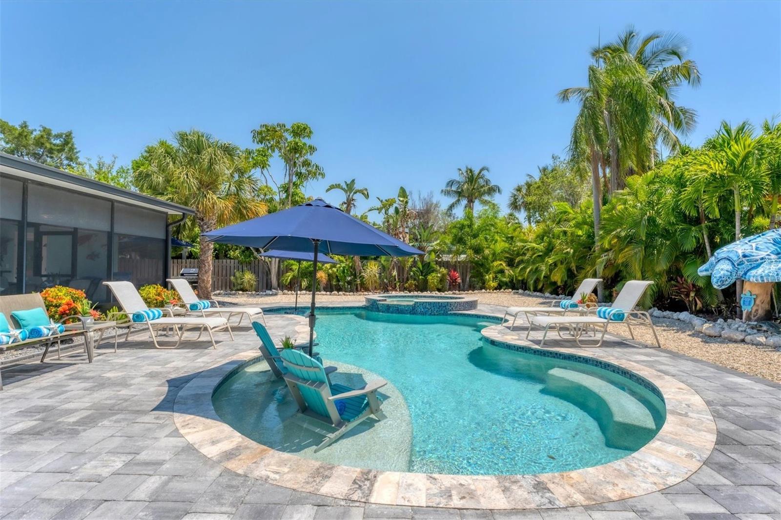Location! Location! Location! Come Visit…Fall in Love with luxury beach living at it’s finest in this amazing, turnkey furnished, completely and beautifully remodeled 3 bedroom, 3 bathroom resort like pool home with lush island tropical landscaping. This exquisite cottage is nestled on a quiet palm tree lined street, just north of Pine Avenue, in the highly desirable city of Anna Maria, only three houses from the Bay Beach and City Pier!! This is a wonderful investment opportunity, currently showcased as a vacation rental (Bayside Bliss), but could easily be enjoyed as a primary residence or secondary home for our welcomed “snow birds.” This open~ airy~ split floor plan effortlessly combines the seamless living areas of the kitchen, living room, and dining rooms. The updated, beautifully appointed kitchen is sure to impress even the most discerning chef, featuring coastal shaker wood cabinets, turquoise-glass tile backsplash, stainless appliances, quartz counter tops, and spacious island with ample seating and storage, illuminated by the beautiful turquoise pendant lighting above. The stunning dining room, with it’s gorgeous, expansive French doors overlook the extremely spacious screened lanai and the breathtaking views of the spectacular resort-like pool~spa oasis. Enjoy abundant seating in the spacious living room with sleeper sofa, while watching your favorite movie on the large screen TV. After an enjoyable day at the beach or dinner at one of the many wonderful island restaurants, retreat to the serene primary king en-suite with walk-in shower. The second bedroom offers plenty of space with two twin beds. Impressive third bedroom presents a secondary king en-suite with vaulted ceilings, walk-in shower, private entrance, and is on the alternate side of the home for welcomed privacy. Indulge in the epitome of aquatic luxury with a meticulously crafted pool, complete with state-of-the-art heating and cooling systems, fiber optics, offering a symphony of color and ambiance. The tropical pool oasis is adorned by it's captivating centerpiece... the hand crafted giant sea turtle sculpture that was painted by a local artist and previously hung in Mote Marine Aquarium in Sarasota. Enjoy peace of mind with new Hurricane Impact Windows (2022), new electrical wiring and electric panel (2022), all new plumbing with new drain lines to the sewer as well as new supply lines (2022), newly built saltwater pool with pebble tech surface~heated and cooled with fiber optic lighting (2023), pool safety alarms (2023), exterior painting (2022), outdoor shower, new landscaping (2023), new A/C (2018), roof (2011), be sure to ask your Agent for the extensive Home Improvements/Updates List in the attachments. Enjoy all that Anna Maria has to provide with it’s nearby City Pier, Rod & Reel Pier, beautiful world famous beaches, swimming, boating, fishing, abundant island boutiques and shops, plus wonderful island restaurants for your dining pleasure. Enjoy watching the enticing virtual/video tour and call today!!