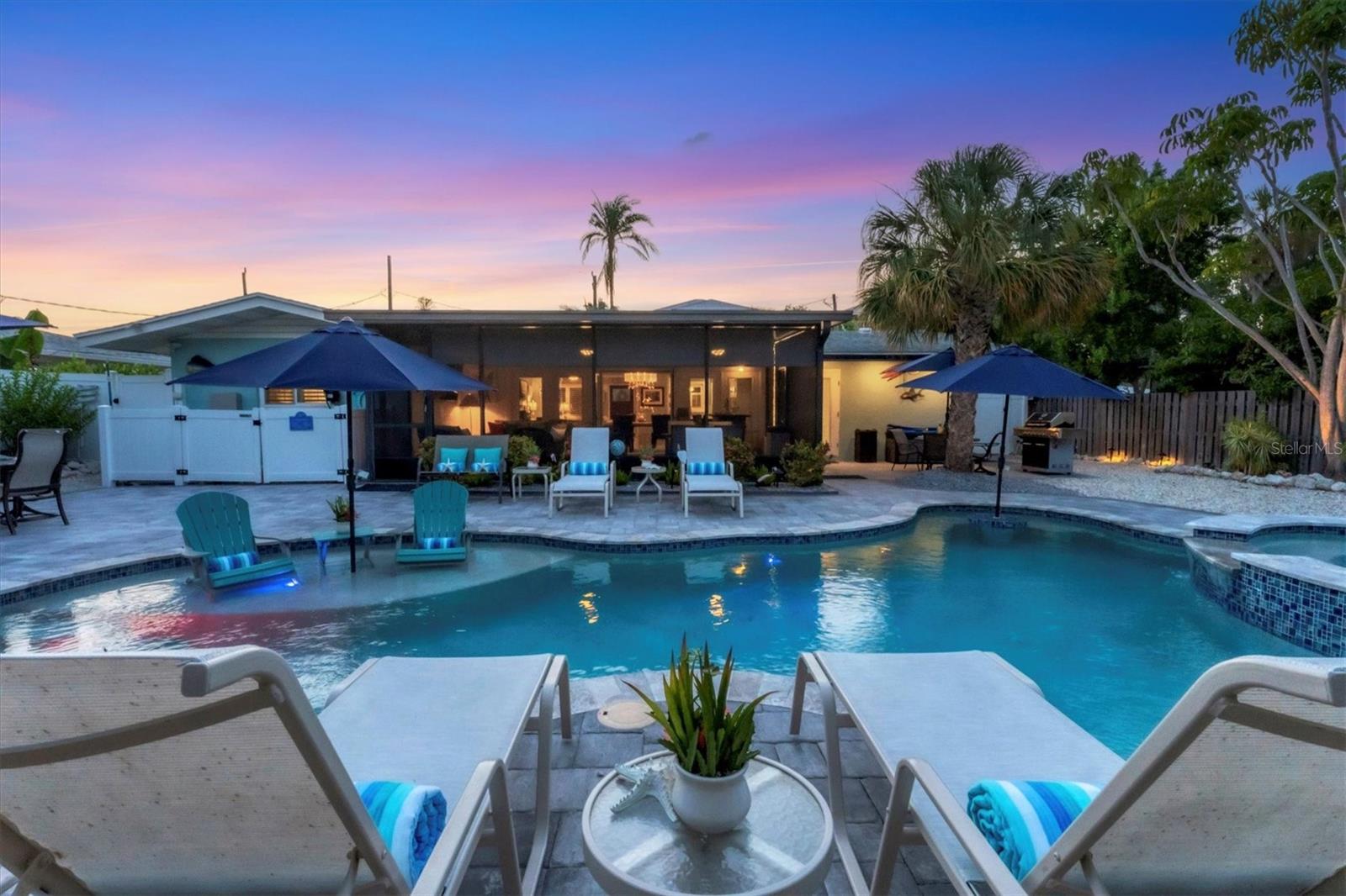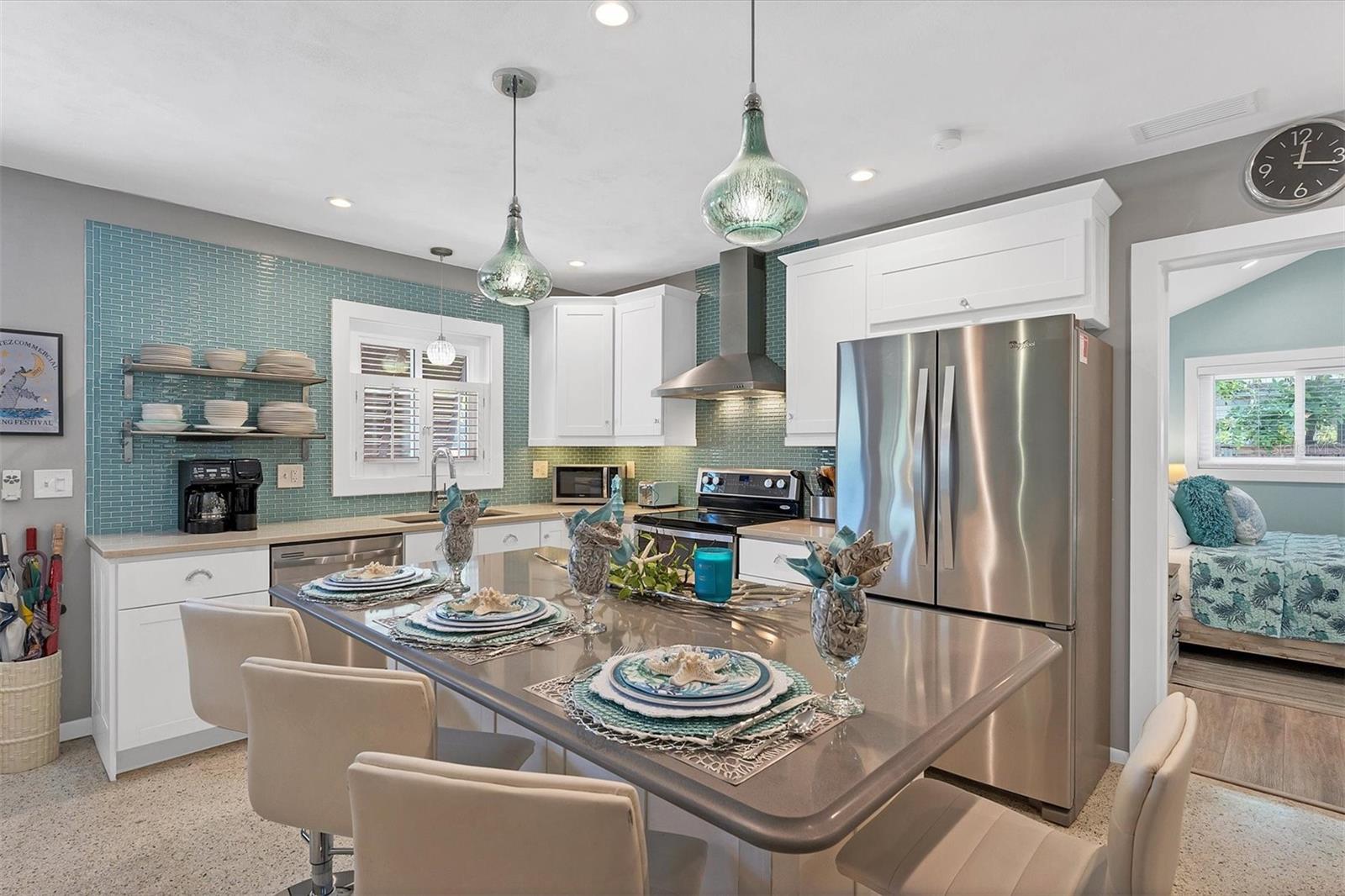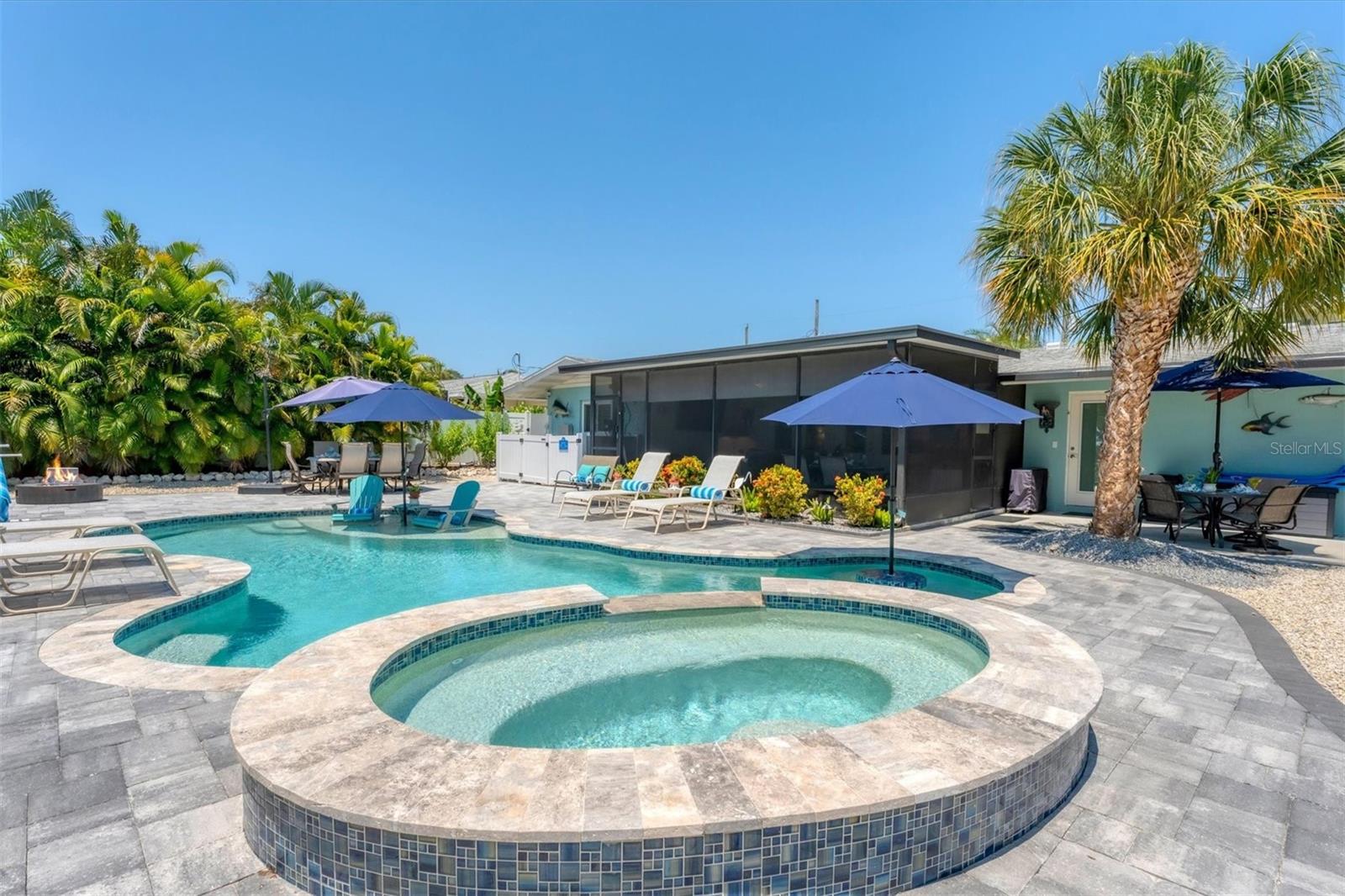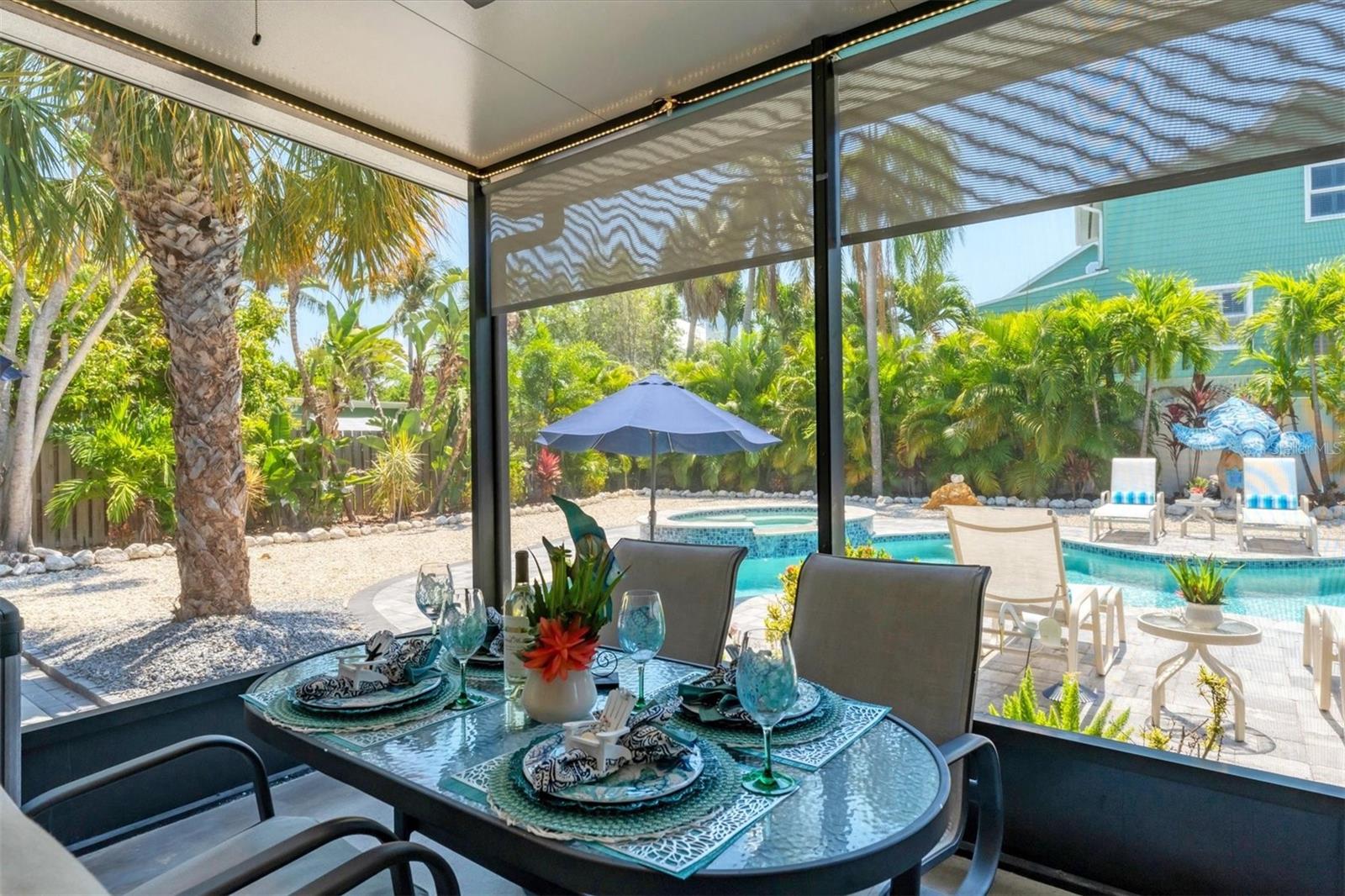 Location! Location! Location! Come Visit…Fall in Love with luxury beach living at it’s finest in this amazing, turnkey furnished, completely and beautifully remodeled 3 bedroom, 3 bathroom resort like pool home with lush island tropical landscaping. This exquisite cottage is nestled on a quiet palm tree lined street, just north of Pine Avenue, in the highly desirable city of Anna Maria, only three houses from the Bay Beach and City Pier!! This is a wonderful investment opportunity, currently showcased as a vacation rental (Bayside Bliss), but could easily be enjoyed as a primary residence or secondary home for our welcomed “snow birds.” This open~ airy~ split floor plan effortlessly combines the seamless living areas of the kitchen, living room, and dining rooms. The updated, beautifully appointed kitchen is sure to impress even the most discerning chef, featuring coastal shaker wood cabinets, turquoise-glass tile backsplash, stainless appliances, quartz counter tops, and spacious island with ample seating and storage, illuminated by the beautiful turquoise pendant lighting above. The stunning dining room, with it’s gorgeous, expansive French doors overlook the extremely spacious screened lanai and the breathtaking views of the spectacular resort-like pool~spa oasis. Enjoy abundant seating in the spacious living room with sleeper sofa, while watching your favorite movie on the large screen TV. After an enjoyable day at the beach or dinner at one of the many wonderful island restaurants, retreat to the serene primary king en-suite with walk-in shower. The second bedroom offers plenty of space with two twin beds. Impressive third bedroom presents a secondary king en-suite with vaulted ceilings, walk-in shower, private entrance, and is on the alternate side of the home for welcomed privacy. Indulge in the epitome of aquatic luxury with a meticulously crafted pool, complete with state-of-the-art heating and cooling systems, fiber optics, offering a symphony of color and ambiance. The tropical pool oasis is adorned by it's captivating centerpiece... the hand crafted giant sea turtle sculpture that was painted by a local artist and previously hung in Mote Marine Aquarium in Sarasota. Enjoy peace of mind with new Hurricane Impact Windows (2022), new electrical wiring and electric panel (2022), all new plumbing with new drain lines to the sewer as well as new supply lines (2022), newly built saltwater pool with pebble tech surface~heated and cooled with fiber optic lighting (2023), pool safety alarms (2023), exterior painting (2022), outdoor shower, new landscaping (2023), new A/C (2018), roof (2011), be sure to ask your Agent for the extensive Home Improvements/Updates List in the attachments. Enjoy all that Anna Maria has to provide with it’s nearby City Pier, Rod & Reel Pier, beautiful world famous beaches, swimming, boating, fishing, abundant island boutiques and shops, plus wonderful island restaurants for your dining pleasure. Enjoy watching the enticing virtual/video tour and call today!!