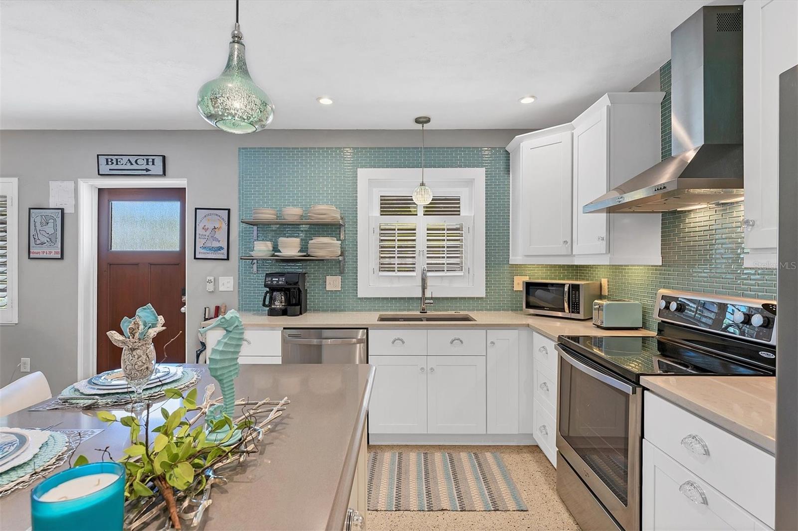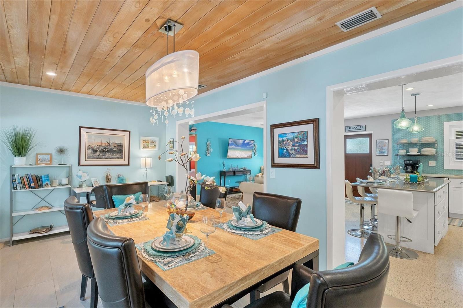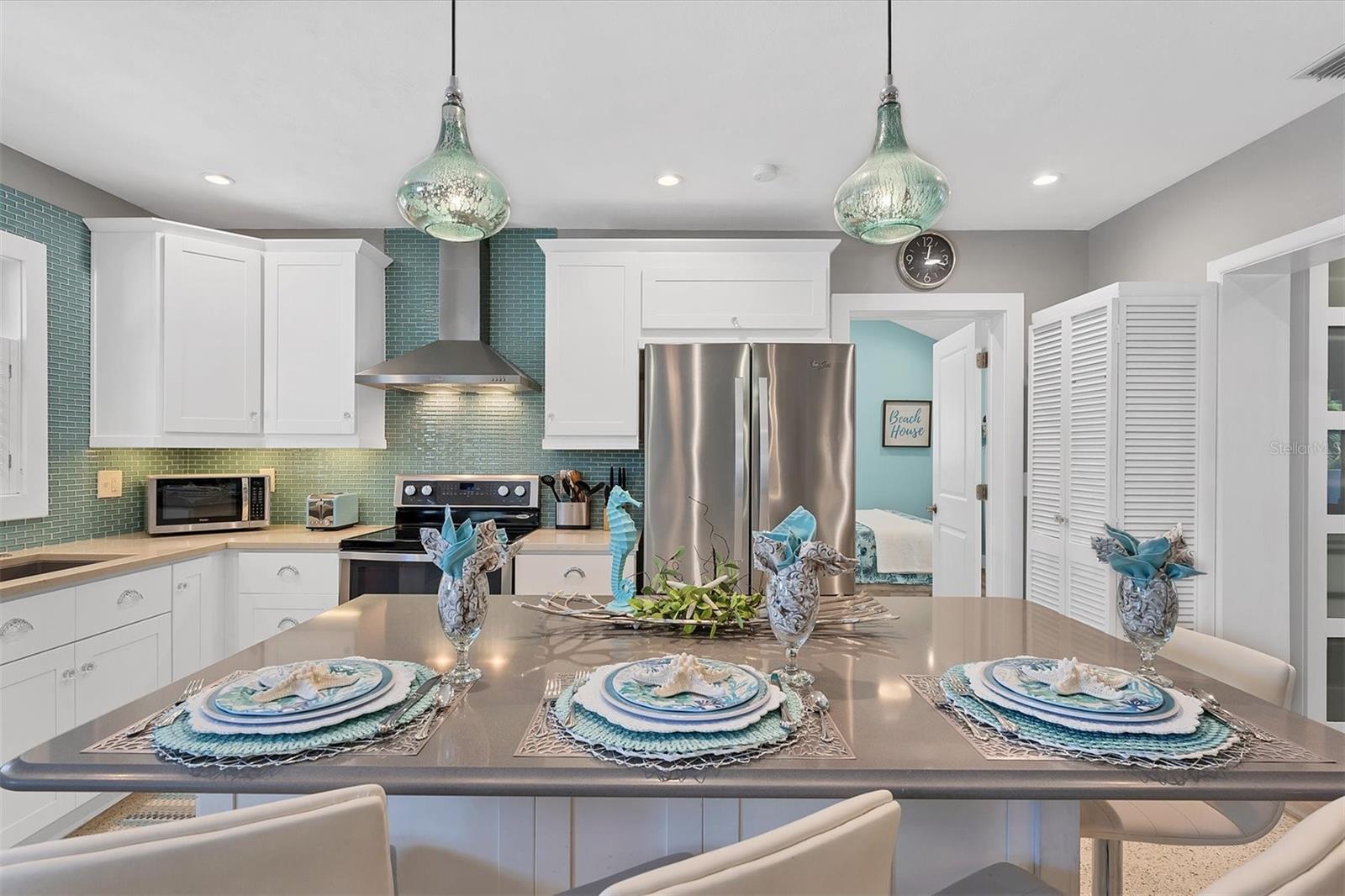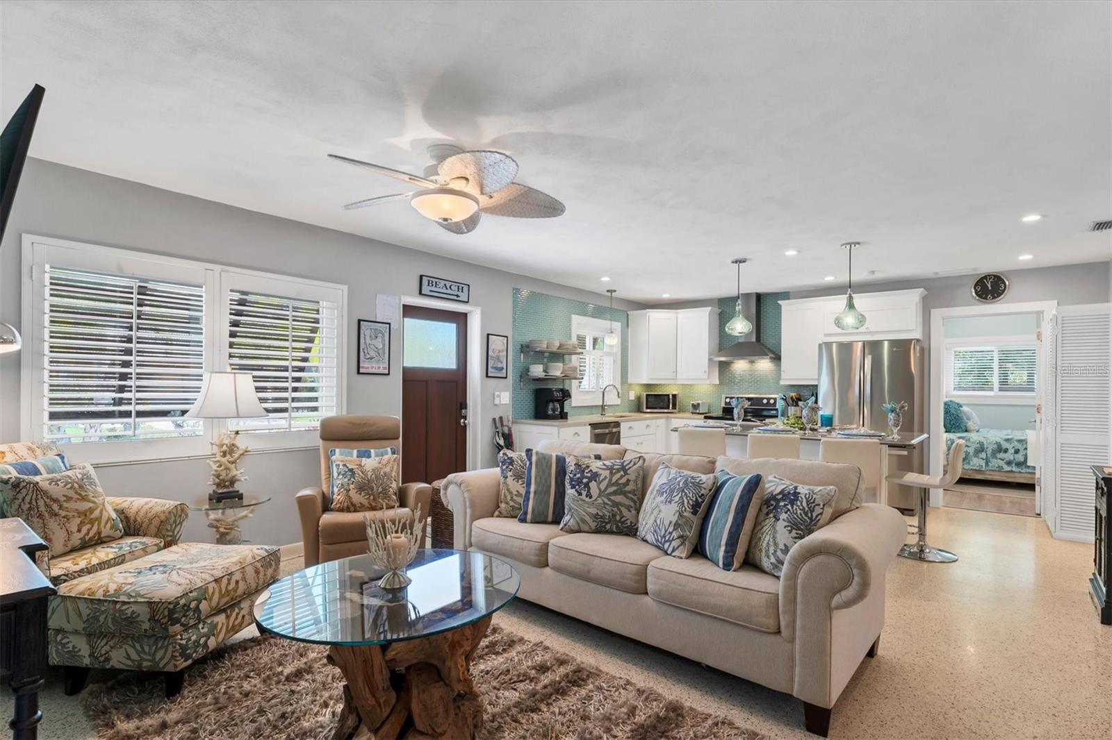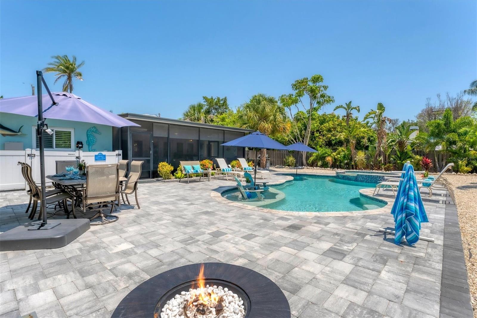 Location! Location! Location! Come Visit…Fall in Love with luxury beach living at it’s finest in this amazing, turnkey furnished, completely and beautifully remodeled 3 bedroom, 3 bathroom resort like pool home with lush island tropical landscaping. This exquisite cottage is nestled on a quiet palm tree lined street, just north of Pine Avenue, in the highly desirable city of Anna Maria, only three houses from the Bay Beach and City Pier!! This is a wonderful investment opportunity, currently showcased as a vacation rental (Bayside Bliss), but could easily be enjoyed as a primary residence or secondary home for our welcomed “snow birds.” This open~ airy~ split floor plan effortlessly combines the seamless living areas of the kitchen, living room, and dining rooms. The updated, beautifully appointed kitchen is sure to impress even the most discerning chef, featuring coastal shaker wood cabinets, turquoise-glass tile backsplash, stainless appliances, quartz counter tops, and spacious island with ample seating and storage, illuminated by the beautiful turquoise pendant lighting above. The stunning dining room, with it’s gorgeous, expansive French doors overlook the extremely spacious screened lanai and the breathtaking views of the spectacular resort-like pool~spa oasis. Enjoy abundant seating in the spacious living room with sleeper sofa, while watching your favorite movie on the large screen TV. After an enjoyable day at the beach or dinner at one of the many wonderful island restaurants, retreat to the serene primary king en-suite with walk-in shower. The second bedroom offers plenty of space with two twin beds. Impressive third bedroom presents a secondary king en-suite with vaulted ceilings, walk-in shower, private entrance, and is on the alternate side of the home for welcomed privacy. Indulge in the epitome of aquatic luxury with a meticulously crafted pool, complete with state-of-the-art heating and cooling systems, fiber optics, offering a symphony of color and ambiance. The tropical pool oasis is adorned by it's captivating centerpiece... the hand crafted giant sea turtle sculpture that was painted by a local artist and previously hung in Mote Marine Aquarium in Sarasota. Enjoy peace of mind with new Hurricane Impact Windows (2022), new electrical wiring and electric panel (2022), all new plumbing with new drain lines to the sewer as well as new supply lines (2022), newly built saltwater pool with pebble tech surface~heated and cooled with fiber optic lighting (2023), pool safety alarms (2023), exterior painting (2022), outdoor shower, new landscaping (2023), new A/C (2018), roof (2011), be sure to ask your Agent for the extensive Home Improvements/Updates List in the attachments. Enjoy all that Anna Maria has to provide with it’s nearby City Pier, Rod & Reel Pier, beautiful world famous beaches, swimming, boating, fishing, abundant island boutiques and shops, plus wonderful island restaurants for your dining pleasure. Enjoy watching the enticing virtual/video tour and call today!!