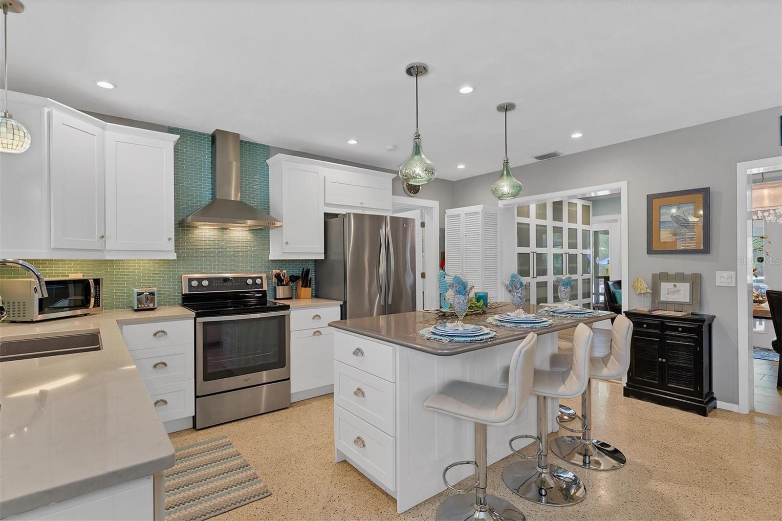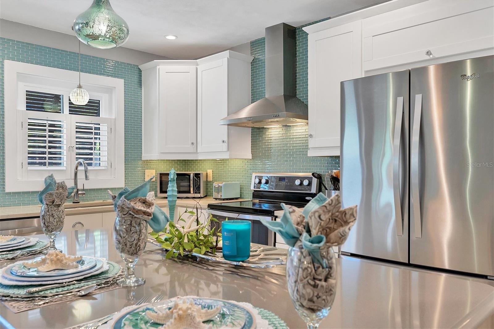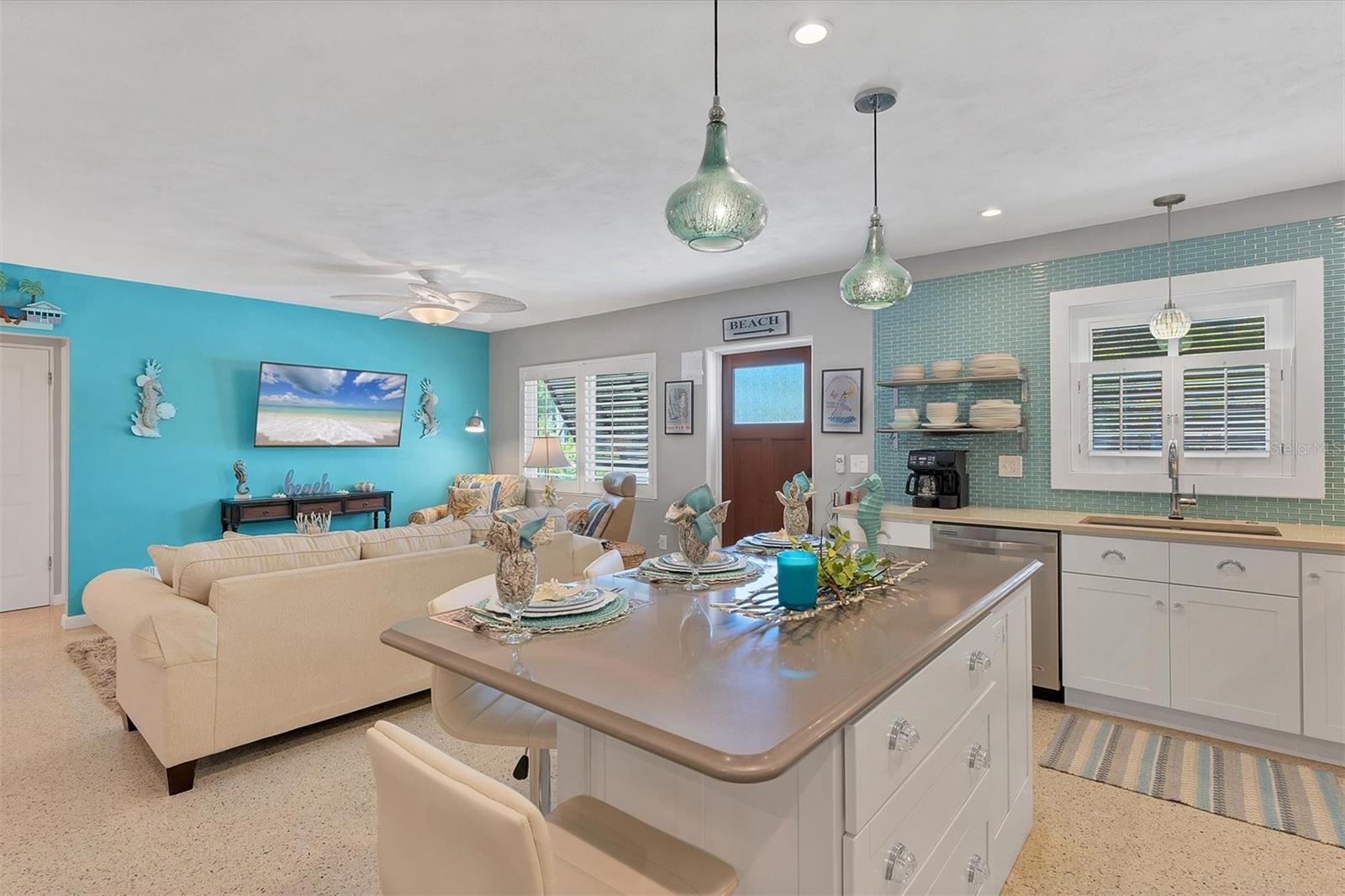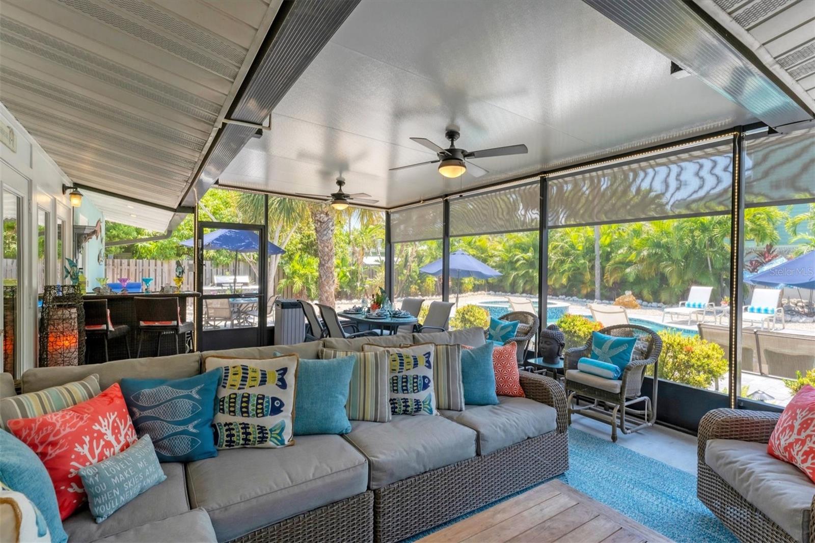 Location! Location! Location! Come Visit…Fall in Love with luxury beach living at it’s finest in this amazing, turnkey furnished, completely and beautifully remodeled 3 bedroom, 3 bathroom resort like pool home with lush island tropical landscaping. This exquisite cottage is nestled on a quiet palm tree lined street, just north of Pine Avenue, in the highly desirable city of Anna Maria, only three houses from the Bay Beach and City Pier!! This is a wonderful investment opportunity, currently showcased as a vacation rental (Bayside Bliss), but could easily be enjoyed as a primary residence or secondary home for our welcomed “snow birds.” This open~ airy~ split floor plan effortlessly combines the seamless living areas of the kitchen, living room, and dining rooms. The updated, beautifully appointed kitchen is sure to impress even the most discerning chef, featuring coastal shaker wood cabinets, turquoise-glass tile backsplash, stainless appliances, quartz counter tops, and spacious island with ample seating and storage, illuminated by the beautiful turquoise pendant lighting above. The stunning dining room, with it’s gorgeous, expansive French doors overlook the extremely spacious screened lanai and the breathtaking views of the spectacular resort-like pool~spa oasis. Enjoy abundant seating in the spacious living room with sleeper sofa, while watching your favorite movie on the large screen TV. After an enjoyable day at the beach or dinner at one of the many wonderful island restaurants, retreat to the serene primary king en-suite with walk-in shower. The second bedroom offers plenty of space with two twin beds. Impressive third bedroom presents a secondary king en-suite with vaulted ceilings, walk-in shower, private entrance, and is on the alternate side of the home for welcomed privacy. Indulge in the epitome of aquatic luxury with a meticulously crafted pool, complete with state-of-the-art heating and cooling systems, fiber optics, offering a symphony of color and ambiance. The tropical pool oasis is adorned by it's captivating centerpiece... the hand crafted giant sea turtle sculpture that was painted by a local artist and previously hung in Mote Marine Aquarium in Sarasota. Enjoy peace of mind with new Hurricane Impact Windows (2022), new electrical wiring and electric panel (2022), all new plumbing with new drain lines to the sewer as well as new supply lines (2022), newly built saltwater pool with pebble tech surface~heated and cooled with fiber optic lighting (2023), pool safety alarms (2023), exterior painting (2022), outdoor shower, new landscaping (2023), new A/C (2018), roof (2011), be sure to ask your Agent for the extensive Home Improvements/Updates List in the attachments. Enjoy all that Anna Maria has to provide with it’s nearby City Pier, Rod & Reel Pier, beautiful world famous beaches, swimming, boating, fishing, abundant island boutiques and shops, plus wonderful island restaurants for your dining pleasure. Enjoy watching the enticing virtual/video tour and call today!!