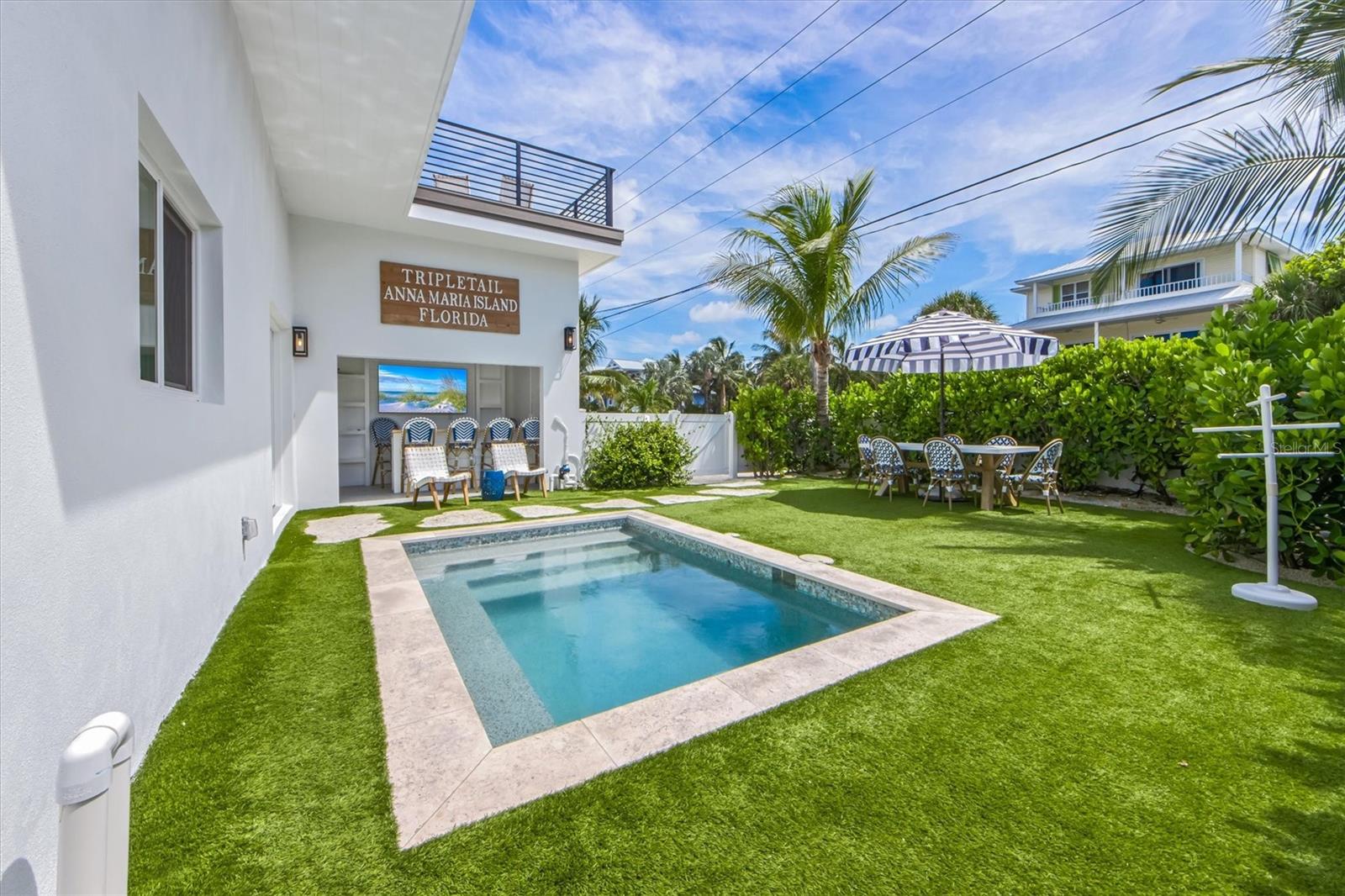 Welcome to your own slice of paradise on the North end of Anna Maria! This stunning 4-bedroom, 4-bathroom bayfront home offers an open floor plan designed for effortless entertaining and luxurious living. With sweeping views of Tampa Bay, the Skyway Bridge, Anna Maria, and the shimmering Gulf of Mexico, this home boasts spectacular vistas from every room. The large living room features panoramic water views and flows seamlessly into multiple entertaining spaces. Gather in the spacious kitchen and dining area or enjoy the poolside bar. The backyard includes a charming porch ideal for taking in the scenery, a hot tub for relaxation, and direct access to your private beach. This home is an active vacation rental with over $300,000 on the books for 2024 and $150,000 currently on the books for 2025.