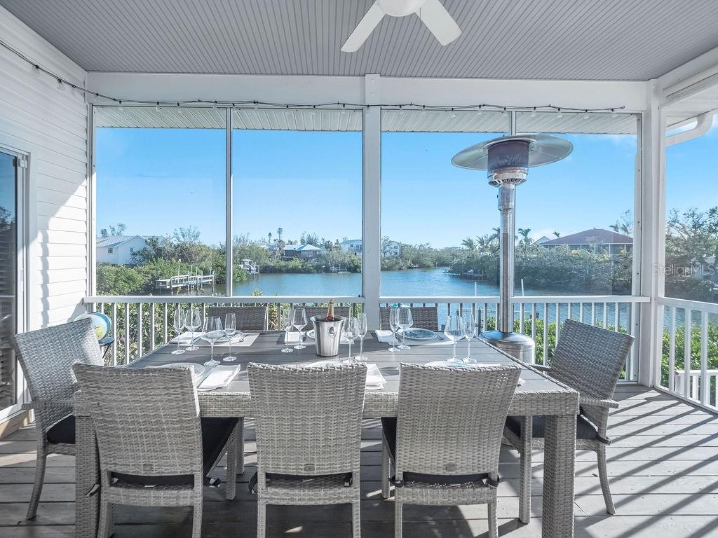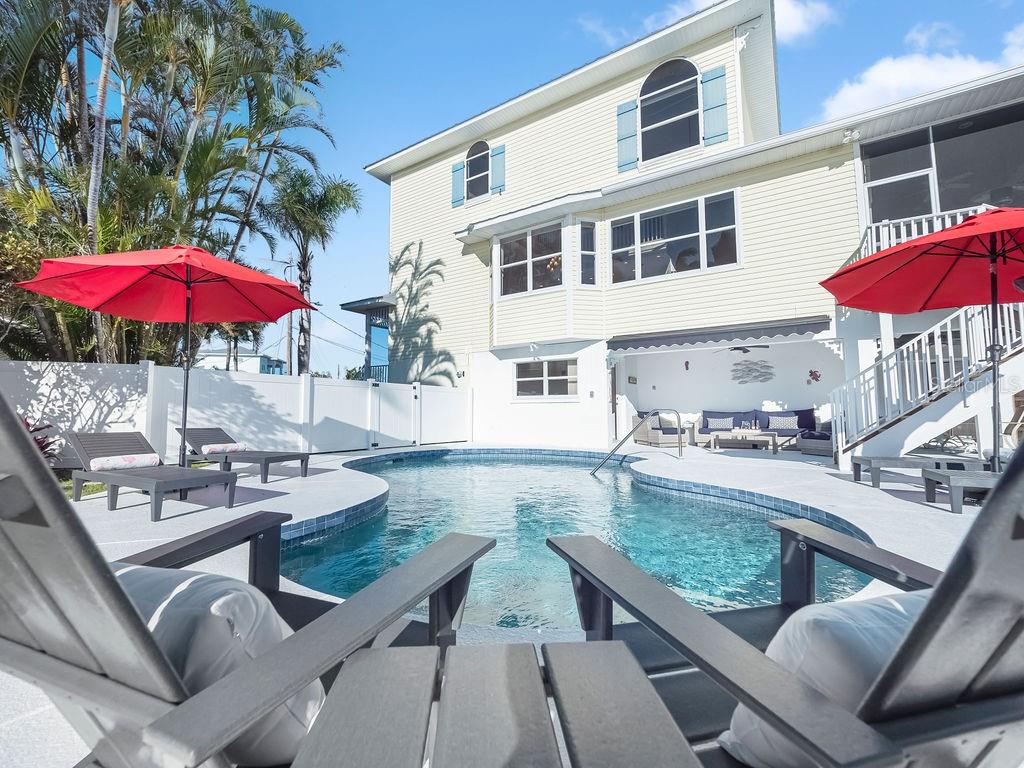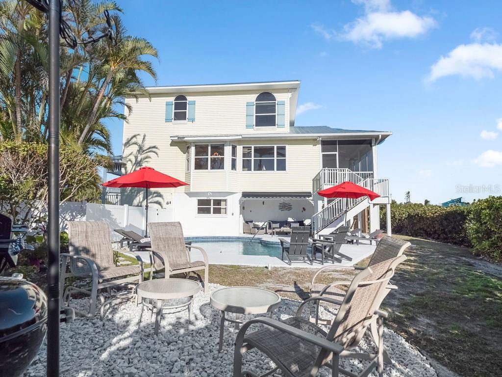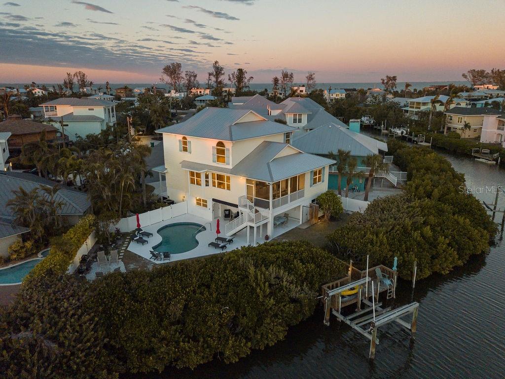 Elevated Waterfront Living with short term rentals allowed on Anna Maria Island! Welcome to Lake LaVista Beach House, a lovely turnkey furnished waterfront retreat offering 270-degree views of serene Lake LaVista. Situated at the end of a quiet cul-de-sac, this 4-bedroom, 4-bathroom home boasts 4,278 square feet under roof (2,564 under air) with direct water access, complete with a private dock and boat lift. From your backyard, you’ll enjoy sitting on your terrace watching ospreys catching breakfast, as well as manatees, and dolphins in their natural habitat. Nestled on the coveted north end of Anna Maria Island, this elevated, turnkey-furnished pool home combines coastal elegance with relaxed island living. As a popular short term rental property, nightly or weekly short-term rentals are allowed, (rental history is available upon request) making this home an ideal investment opportunity or private getaway. The property’s tropical landscaping provides a private oasis, while its proximity to Anna Maria’s charming boutiques, restaurants, and pristine beaches ensures convenience and entertainment. Step inside to soaring ceilings and breathtaking lake views. The open-concept main level is perfect for entertaining, featuring a spacious great room with sliding doors leading to a screened lanai, a dining area and kitchen with a breakfast bar. The primary bedroom is located on the main level with an ensuite bathroom, double vanities, a soaking tub, a walk-in shower, and two walk-in closets (one lockable for owner use). The primary suite opens to a private balcony with tranquil water views. An additional bedroom with an ensuite bathroom is located on the main level. The upper level offers two more ensuite bedrooms, providing ample space for family and guests. A large garage includes a separate storage area that can also serve as a secure owner’s closet. Multiple outdoor spaces, both covered and open, invite you to relax and soak in the Florida sunshine. The screened porch off the living room leads to a heated pool, equipped with a new heater and pump installed in late 2024. The private dock with a boat lift is perfect for fishing, wildlife watching, or launching your next Gulf of Mexico adventure. This meticulously maintained home is move-in ready and comes with a proven history of successful short-term rentals, complete with future bookings in place. Whether you’re seeking a personal retreat or a lucrative investment property, Lake LaVista Beach House offers the best of island living. Don’t miss this rare opportunity to own a slice of paradise on Anna Maria Island. Schedule your private showing today!