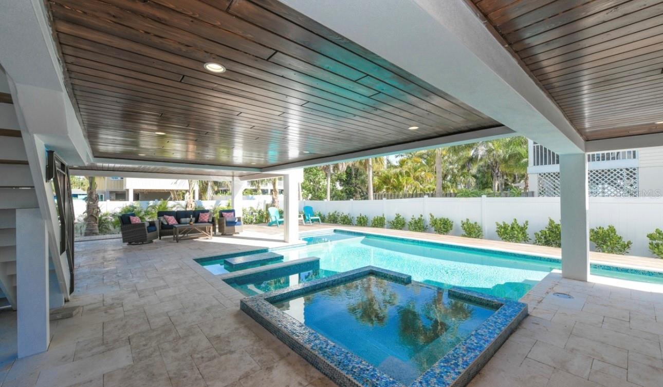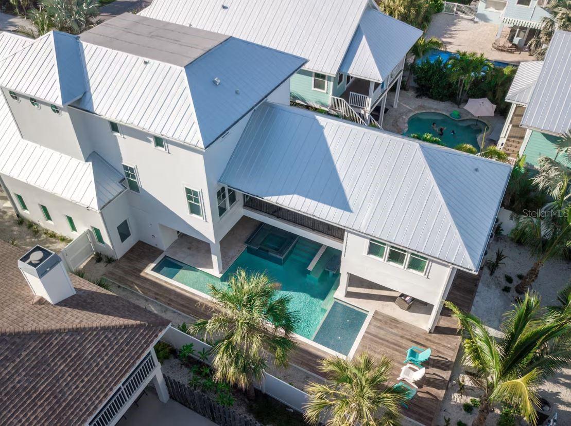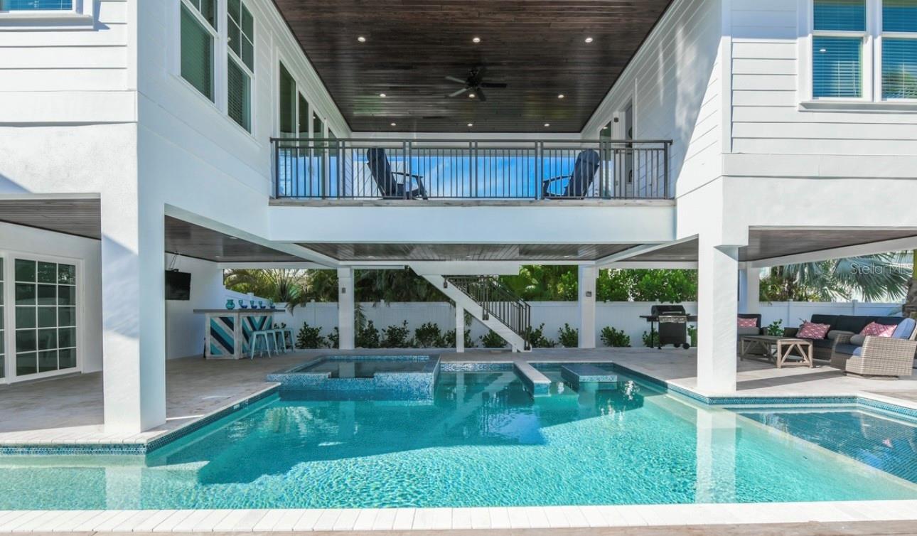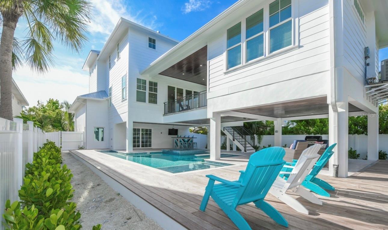 DISCOVER THIS STUNNING COASTAL RETREAT ON ANNA MARIA ISLAND! ONE OF A KIND HOME OFFERING 4 BEDROOMS, A LOFT AND 4 1/2 BATHROOMS. THE FOURTH BEDROOM IS IT'S OWN PRIVATE SUITE DETACHED FROM THE MAIN HOUSE AND IS PERFECT FOR FAMILY OR GUEST! HOMES LIKE THIS DON'T EXIST ON THE ISLAND!!! This home exudes a laid-back yet elegant charm with an array of high end features, including a pool with a swim-up table, hot tub and beautiful travertine decking that creates a resort-like backyard oasis. Step inside to an open-concept living area and appreciate all of the well thought out details. The kitchen was designed for culinary inspiration, complete with a spacious breakfast bar, a modern range and hood, striking backsplash, and designer light fixtures that enhance the coastal aesthetic. Throughout the home, tile flooring complements custom woodwork, adding a sense of warmth and sophistication. The bedrooms are light-filled and airy, each with its own en suite bath, ensuring privacy and comfort for residents and guests alike. The laundry room offers convenience with a laundry tub. Located just one block from the bustling Pine Avenue, with its array of boutique shops and restaurants, this home is perfectly positioned on the coveted north end of Anna Maria Island, close to both the beach and the bay. Whether you’re looking for a permanent residence or an island escape, this property offers the ultimate coastal lifestyle. This home is a very successful vacation rental and is a great investment property! Don't miss this one of a kind home on Anna Maria Island!