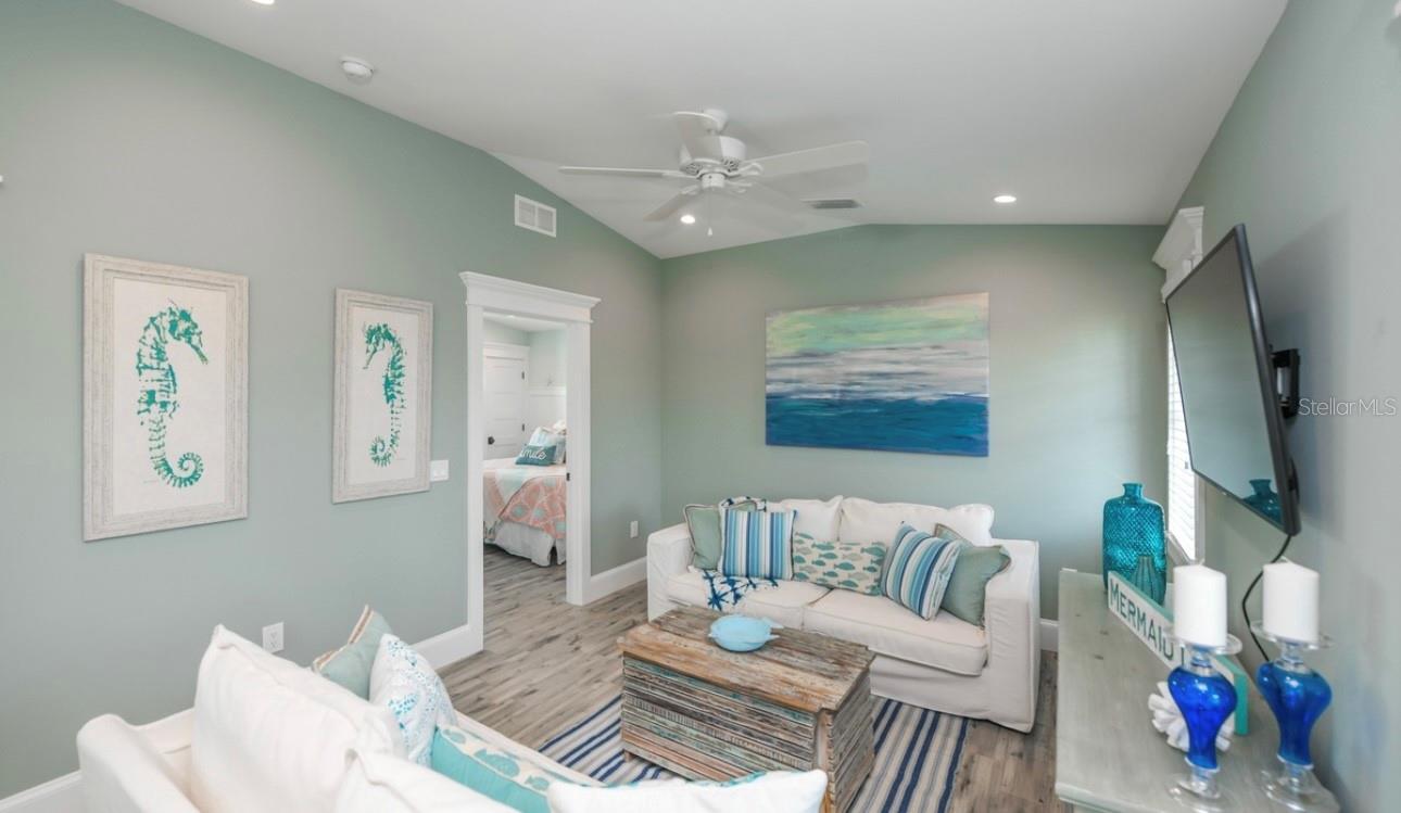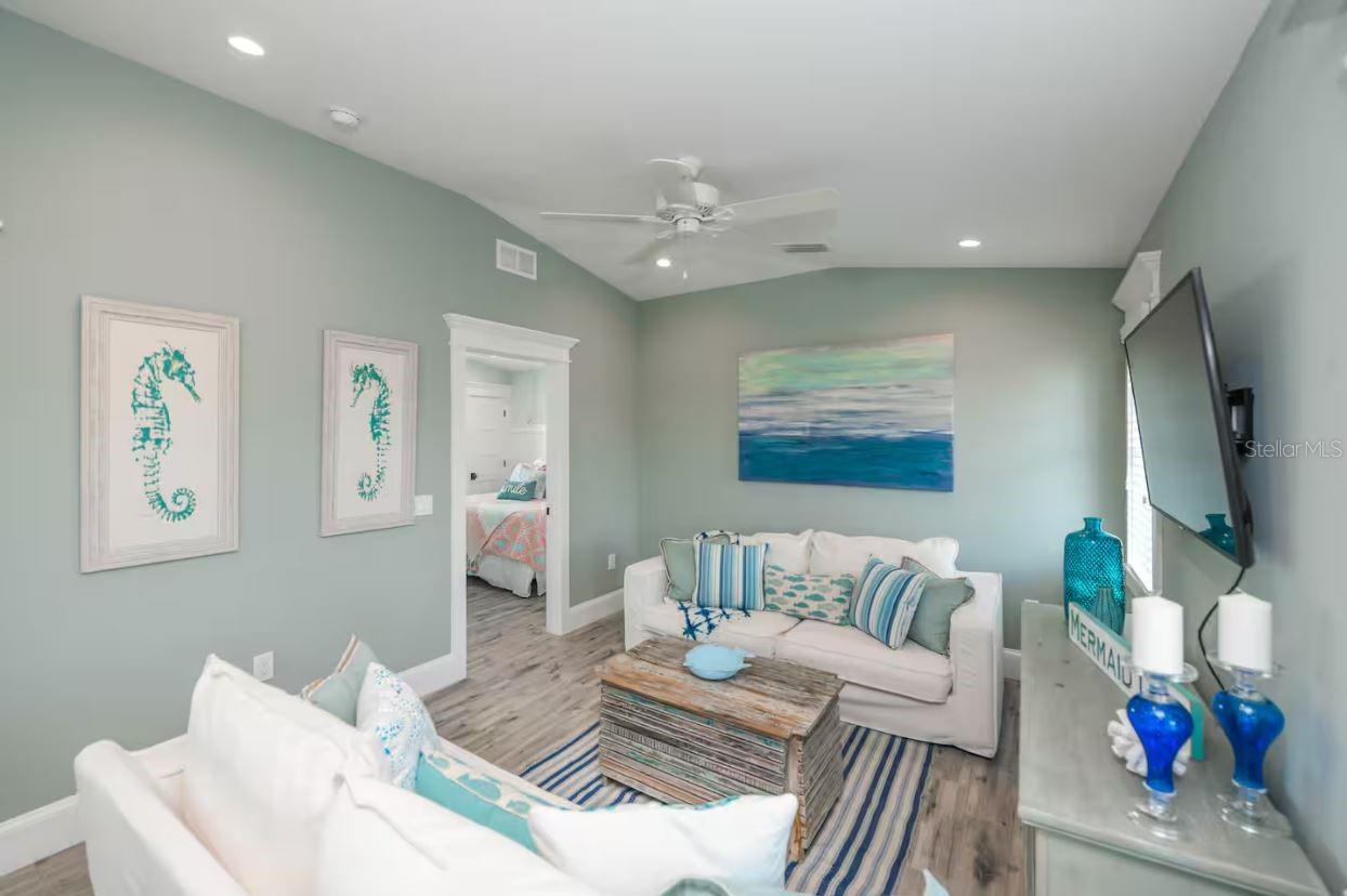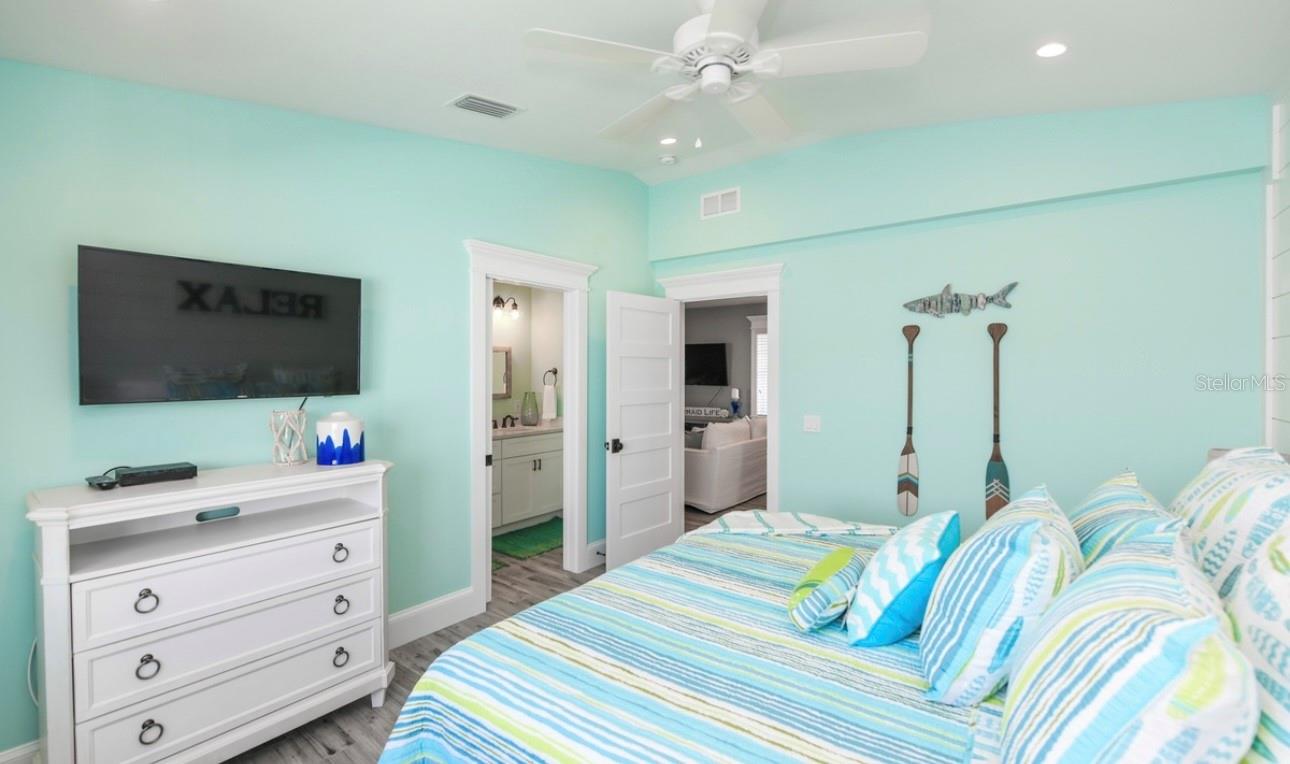 DISCOVER THIS STUNNING COASTAL RETREAT ON ANNA MARIA ISLAND! ONE OF A KIND HOME OFFERING 4 BEDROOMS, A LOFT AND 4 1/2 BATHROOMS. THE FOURTH BEDROOM IS IT'S OWN PRIVATE SUITE DETACHED FROM THE MAIN HOUSE AND IS PERFECT FOR FAMILY OR GUEST! HOMES LIKE THIS DON'T EXIST ON THE ISLAND!!! This home exudes a laid-back yet elegant charm with an array of high end features, including a pool with a swim-up table, hot tub and beautiful travertine decking that creates a resort-like backyard oasis. Step inside to an open-concept living area and appreciate all of the well thought out details. The kitchen was designed for culinary inspiration, complete with a spacious breakfast bar, a modern range and hood, striking backsplash, and designer light fixtures that enhance the coastal aesthetic. Throughout the home, tile flooring complements custom woodwork, adding a sense of warmth and sophistication. The bedrooms are light-filled and airy, each with its own en suite bath, ensuring privacy and comfort for residents and guests alike. The laundry room offers convenience with a laundry tub. Located just one block from the bustling Pine Avenue, with its array of boutique shops and restaurants, this home is perfectly positioned on the coveted north end of Anna Maria Island, close to both the beach and the bay. Whether you’re looking for a permanent residence or an island escape, this property offers the ultimate coastal lifestyle. This home is a very successful vacation rental and is a great investment property! Don't miss this one of a kind home on Anna Maria Island!