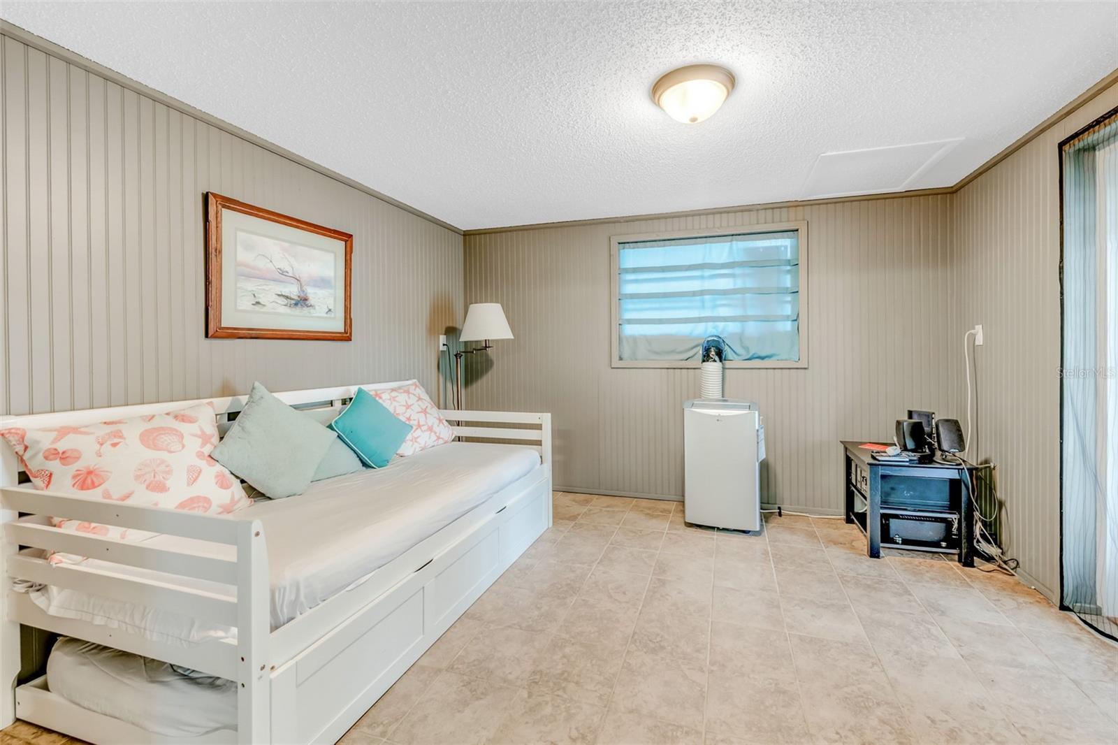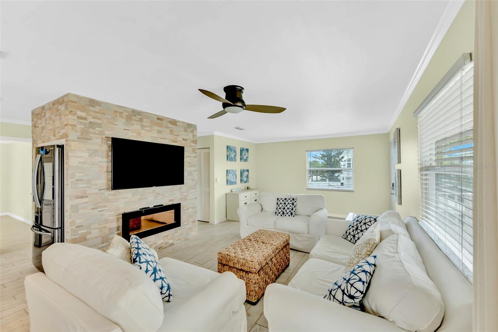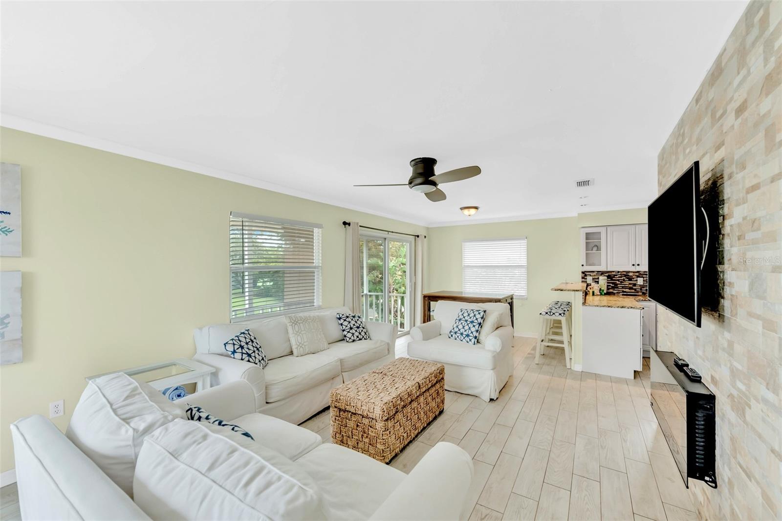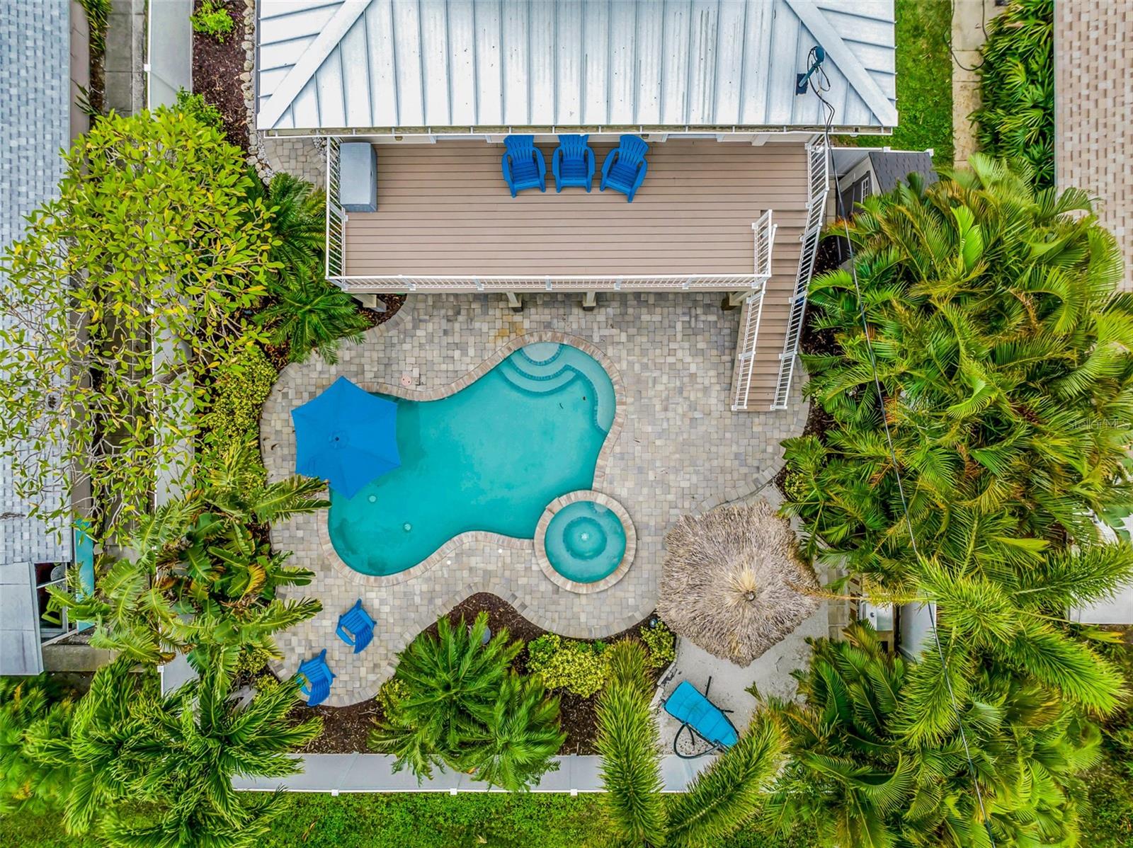 Welcome to your dream coastal retreat! This fully furnished, elevated 2 bedroom, 1 bathroom home is perfectly nestled in the heart of Anna Maria Island. This stunning property is situated on a beautifully landscaped lot surrounded by lush tropical landscaping, a sparkling pool and spa. You can entertain in style with the outdoor kitchen and tiki hut bar area, or relax under the covered lanai with ceiling fans and seating. Step inside to discover a bright, open-concept living space adorned with coastal décor and modern finishes. The living room features light-toned tile flooring, neutral paint, and a feature wall with a sleek electric fireplace, offering a cozy, yet contemporary vibe. The well-equipped kitchen features granite countertops, stainless steel appliances, and a glass-tile backsplash for a polished look. The dining space is perfect for entertaining and intimate gatherings with friends and family. The two spacious bedrooms provide ample closet space and natural light, while the updated bathroom offers a clean and functional layout with elegant finishes. Additional features include a two car garage, upper-level porch, and a bonus room downstairs, providing ample space for relaxation or hosting guests. With the close proximity to the pristine beaches, charming shops, local restaurants and recreational activities, Anna Maria Island offers something for everyone. Whether you’re looking for a personal escape, vacation rental, or investment property, this beachside gem is an incredible opportunity.