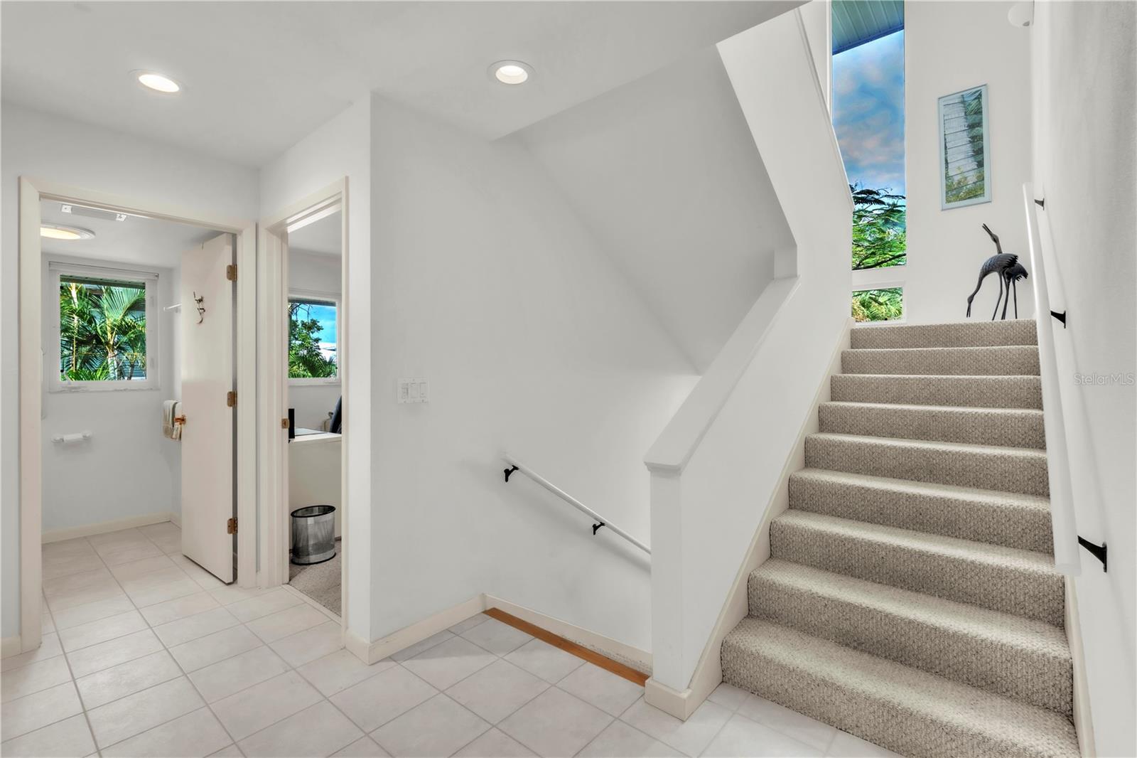 Tucked away at the end of a quiet cul-de-sac in Sunset Cove, this elevated beach home is all about location— just steps from the sugar-sand shoreline of Anna Maria with beach access just around the corner. Designed by architect H. Patterson Fletcher, the residence showcases Frank Lloyd Wright-inspired design elements, emphasizing harmony with nature, open living spaces, and abundant natural light. This elevated island home offers a rare opportunity set on an expansive lot providing ample space to add a pool and create a private outdoor oasis. The 3BD/2.5BA residence plus bonus room spans three levels, with a large garage below offering generous storage and foyer entry. Inside, soaring ceilings and a wall of sliding glass doors in the living room draw in soft natural light and frame tranquil views of the palms and gulf waters beyond. Sliders open onto a large screened porch—ideal for relaxing afternoons or breezy evenings. The open-concept kitchen and living area flow seamlessly, awaiting a modern reimagining to match the home’s timeless architectural character and prime location. The primary bedroom enjoys its own balcony, while the top level’s wraparound windows and deck showcase beautiful water and treetop vistas—perfect for sunrises, sunsets, or stargazing. While ready for cosmetic updates, this home’s solid structure, architectural pedigree, spacious lot, and unbeatable location make it a remarkable canvas for a luxury beach retreat.