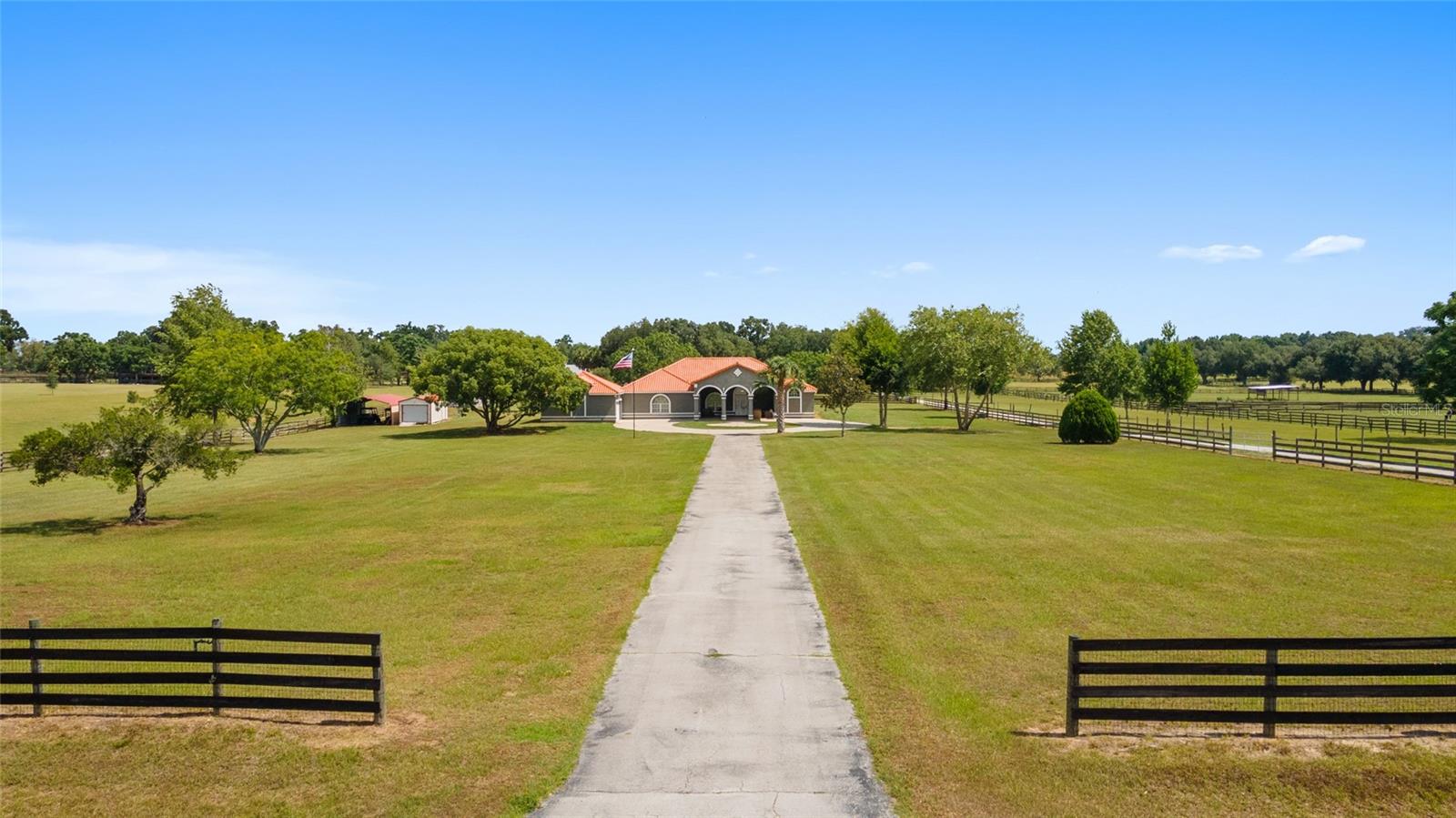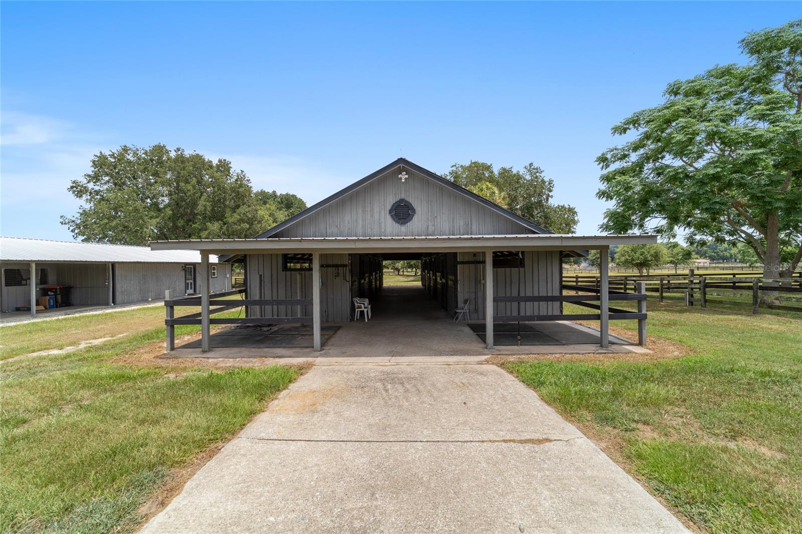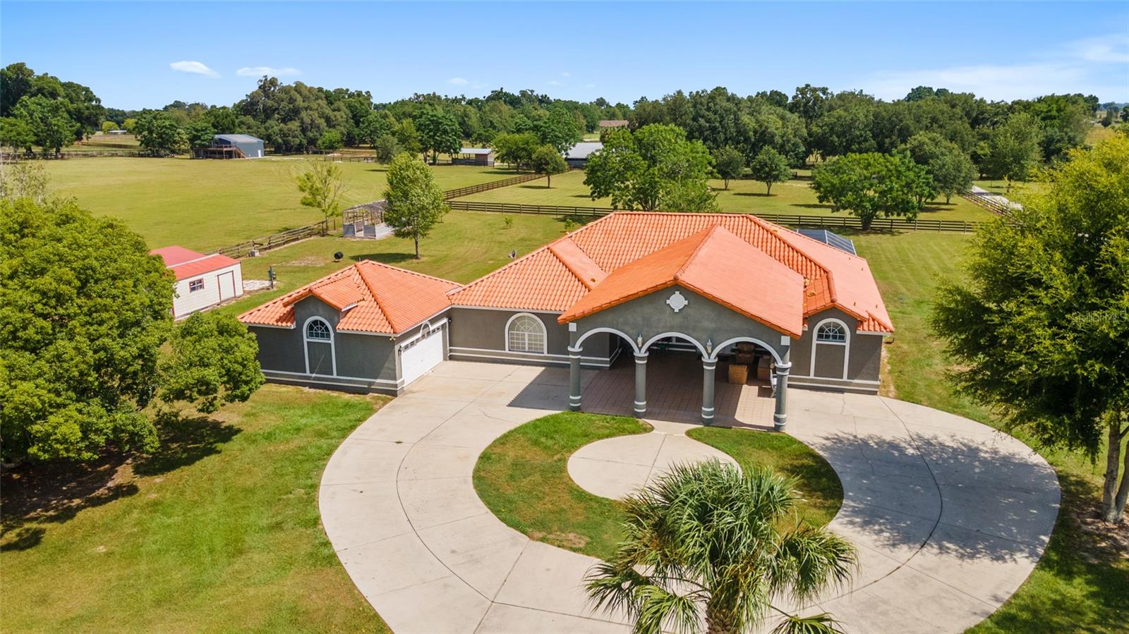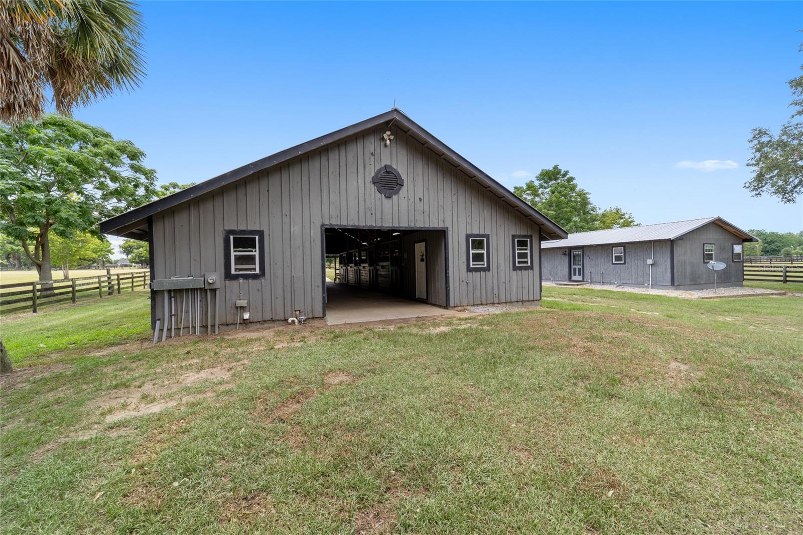 Stunning Horse Farm in Anthony Florida-An Equestrian Dream come true! Welcome to your dream farm located in the NE corridor of Marion County Fl. Spread across a sprawling 21.75 acres , located in a beautiful equestrian community, no HOA's, this unique property offers everything the equestrian enthusiast could desire. The main pool home, custom built in 2000 with a stunning tile roof, boasts 4 bedrooms, 3 1/2 baths, providing ample space for family and guests. You will be amazed at the amount of natural light that the large windows and high ceilings allow as well as the beautiful views from every window. The well appointed kitchen is situated perfectly to allow ease for entertaining as well as a perfect view of the sparkling pool. This property was designed with the equestrian in mind, it includes an 8 stall center aisle barn, with feed, tack room and wash stalls, there is an additional stall located in the next building for a total of 9, perfect for a quarantine or broodmare stall. The new well maintained paddocks all have their own water with individual controls and the high-quality soil ensures lush grasses for grazing. This amazing farm also includes 2 brand new additional living areas to accommodate family or continue to use as an airbnb as well as 2 RV hook ups, 50 amps with septic too. Lets not forget the Machine building, it will satisfy all your needs to work on equipment or store large tractors/RV's/ the possibilities endless . Property has 2 wells, 3 septics, perimeter fenced, and also has a shavings/storage building for the barn. This farm has always been fully rented out during the show season and is very popular. Whether you are looking for a serene retreat, a place to pursue your equestrian passions, or an opportunity to generate income, this property is a perfect choice.