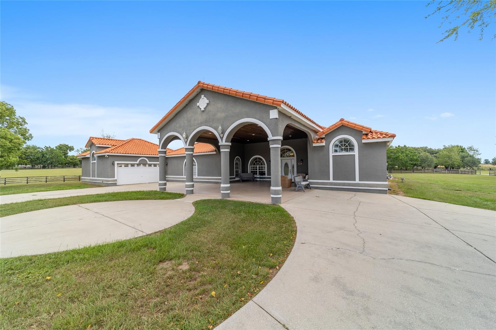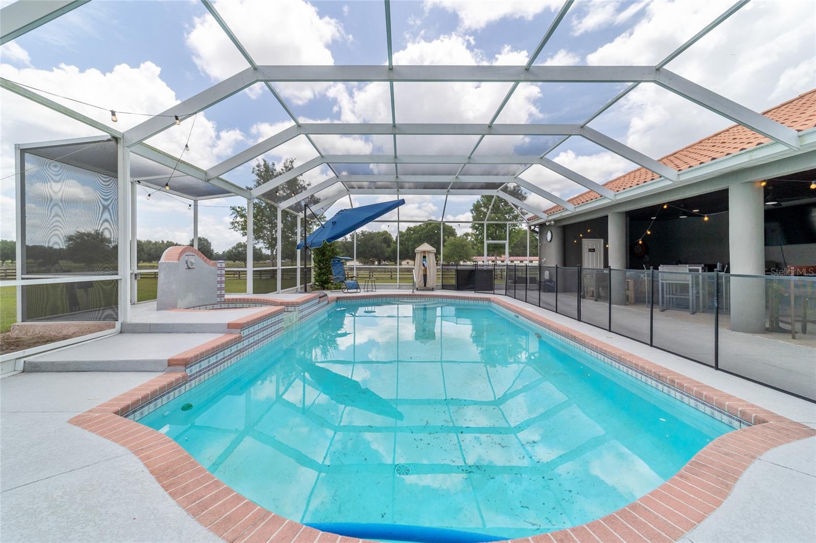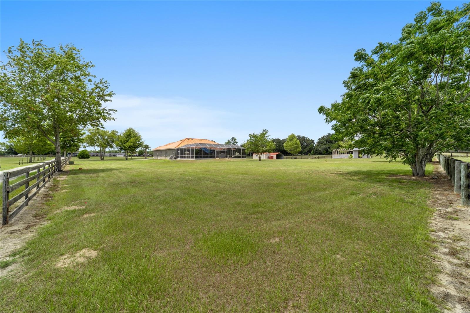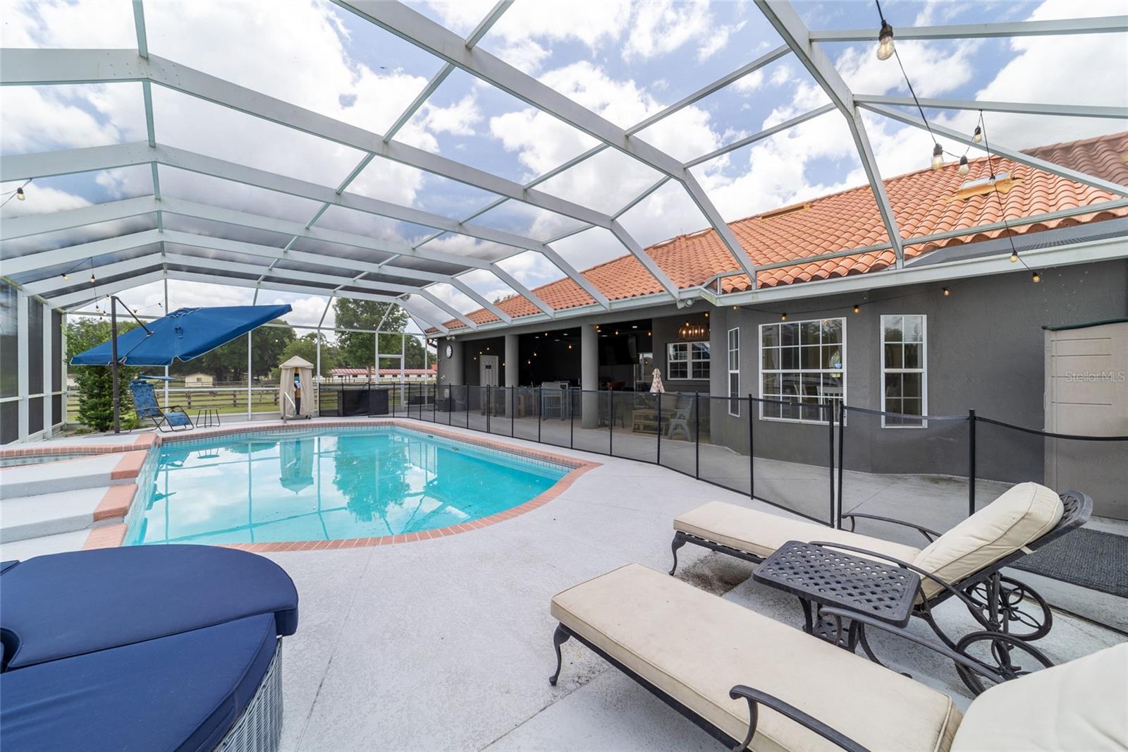 Stunning Horse Farm in Anthony Florida-An Equestrian Dream come true! Welcome to your dream farm located in the NE corridor of Marion County Fl. Spread across a sprawling 21.75 acres , located in a beautiful equestrian community, no HOA's, this unique property offers everything the equestrian enthusiast could desire. The main pool home, custom built in 2000 with a stunning tile roof, boasts 4 bedrooms, 3 1/2 baths, providing ample space for family and guests. You will be amazed at the amount of natural light that the large windows and high ceilings allow as well as the beautiful views from every window. The well appointed kitchen is situated perfectly to allow ease for entertaining as well as a perfect view of the sparkling pool. This property was designed with the equestrian in mind, it includes an 8 stall center aisle barn, with feed, tack room and wash stalls, there is an additional stall located in the next building for a total of 9, perfect for a quarantine or broodmare stall. The new well maintained paddocks all have their own water with individual controls and the high-quality soil ensures lush grasses for grazing. This amazing farm also includes 2 brand new additional living areas to accommodate family or continue to use as an airbnb as well as 2 RV hook ups, 50 amps with septic too. Lets not forget the Machine building, it will satisfy all your needs to work on equipment or store large tractors/RV's/ the possibilities endless . Property has 2 wells, 3 septics, perimeter fenced, and also has a shavings/storage building for the barn. This farm has always been fully rented out during the show season and is very popular. Whether you are looking for a serene retreat, a place to pursue your equestrian passions, or an opportunity to generate income, this property is a perfect choice.