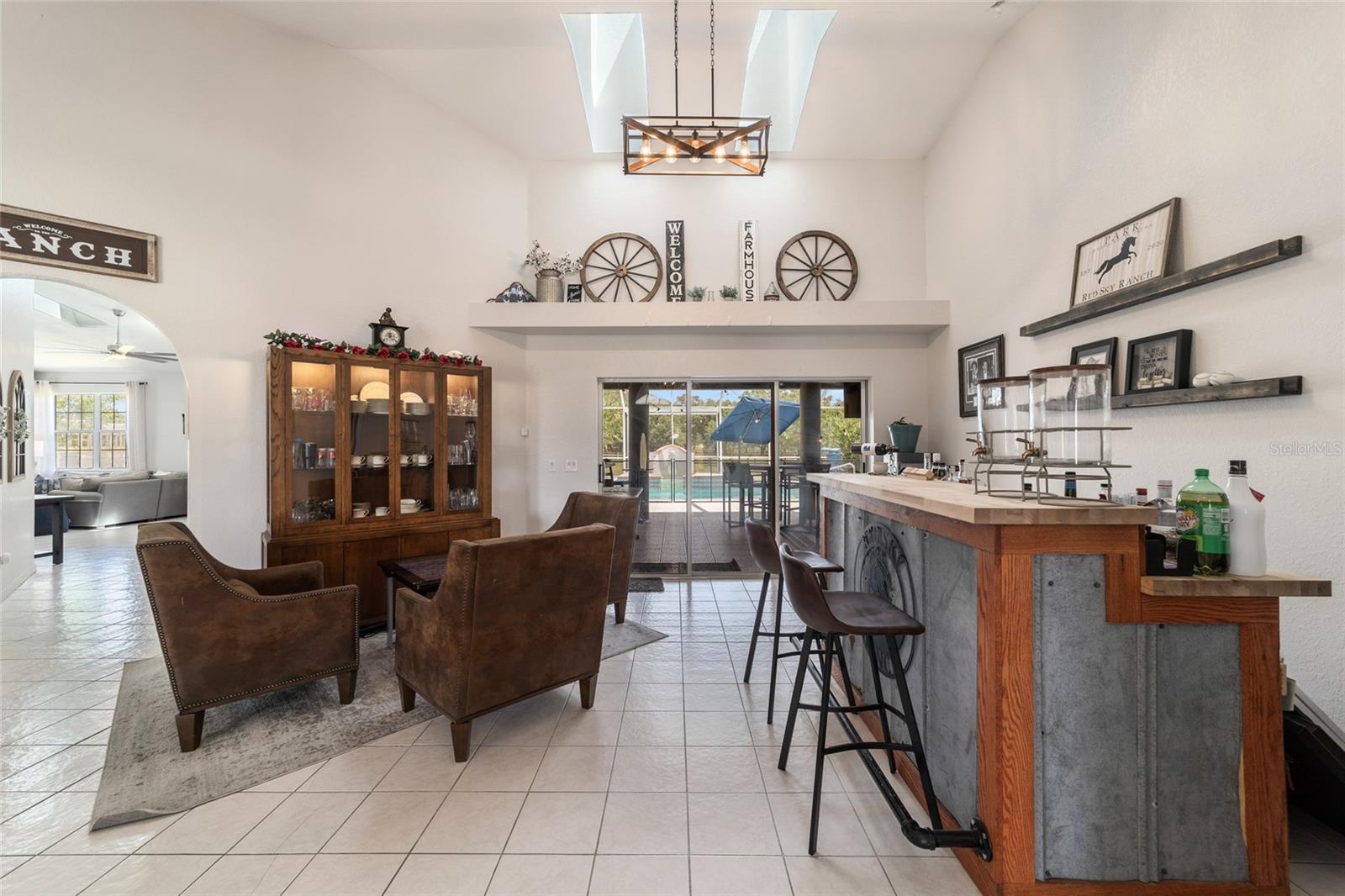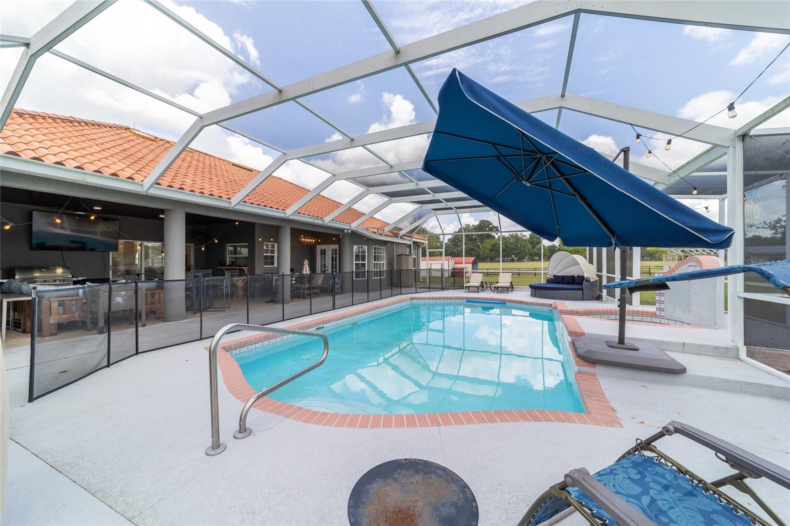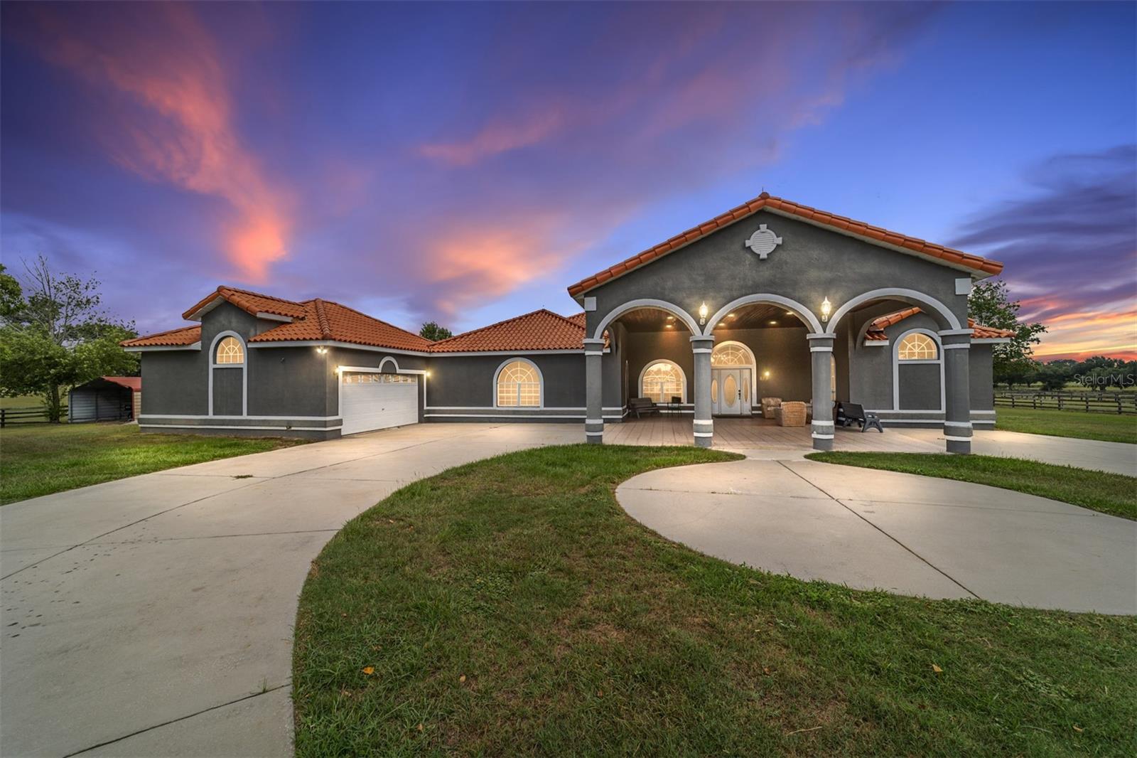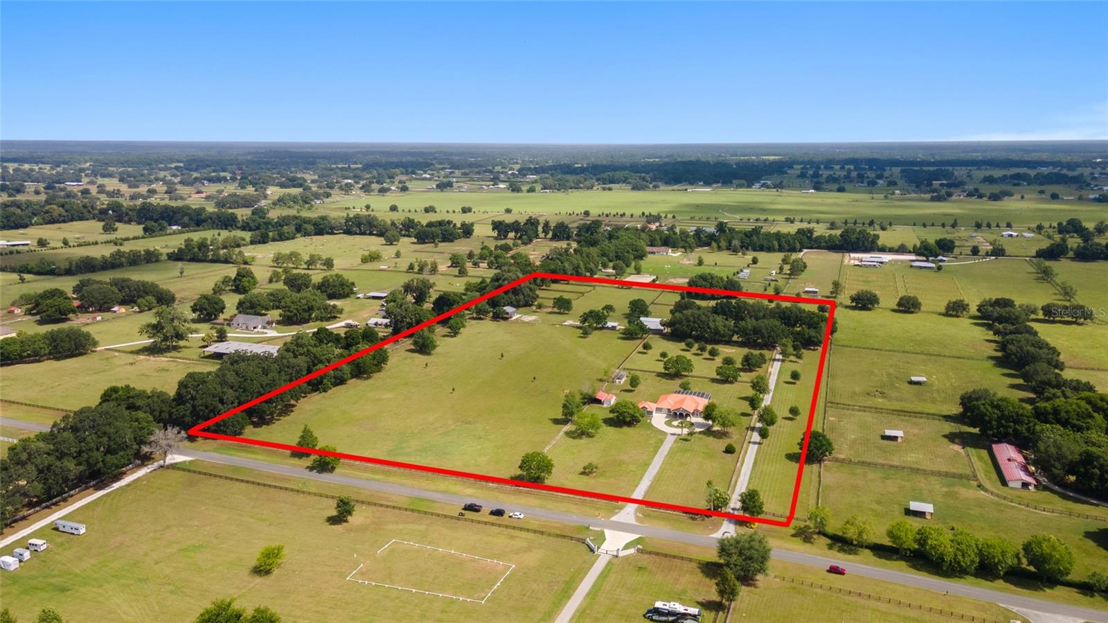 Stunning Horse Farm in Anthony Florida-An Equestrian Dream come true! Welcome to your dream farm located in the NE corridor of Marion County Fl. Spread across a sprawling 21.75 acres , located in a beautiful equestrian community, no HOA's, this unique property offers everything the equestrian enthusiast could desire. The main pool home, custom built in 2000 with a stunning tile roof, boasts 4 bedrooms, 3 1/2 baths, providing ample space for family and guests. You will be amazed at the amount of natural light that the large windows and high ceilings allow as well as the beautiful views from every window. The well appointed kitchen is situated perfectly to allow ease for entertaining as well as a perfect view of the sparkling pool. This property was designed with the equestrian in mind, it includes an 8 stall center aisle barn, with feed, tack room and wash stalls, there is an additional stall located in the next building for a total of 9, perfect for a quarantine or broodmare stall. The new well maintained paddocks all have their own water with individual controls and the high-quality soil ensures lush grasses for grazing. This amazing farm also includes 2 brand new additional living areas to accommodate family or continue to use as an airbnb as well as 2 RV hook ups, 50 amps with septic too. Lets not forget the Machine building, it will satisfy all your needs to work on equipment or store large tractors/RV's/ the possibilities endless . Property has 2 wells, 3 septics, perimeter fenced, and also has a shavings/storage building for the barn. This farm has always been fully rented out during the show season and is very popular. Whether you are looking for a serene retreat, a place to pursue your equestrian passions, or an opportunity to generate income, this property is a perfect choice.