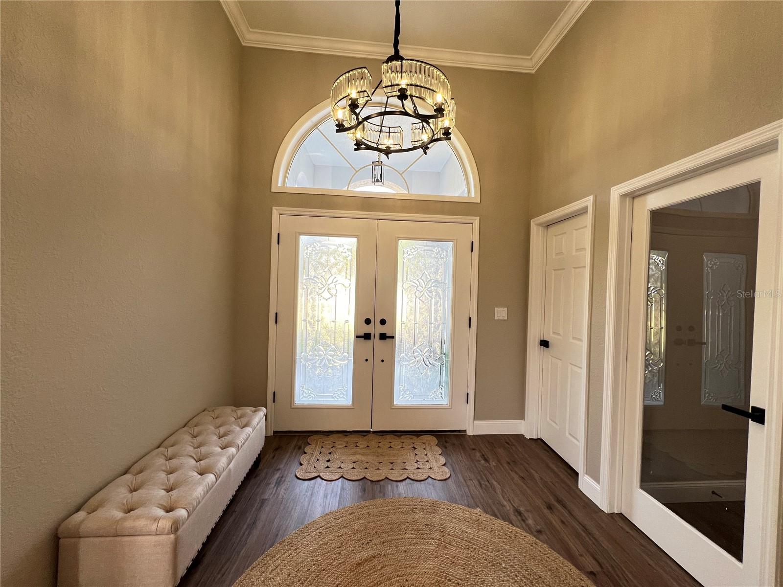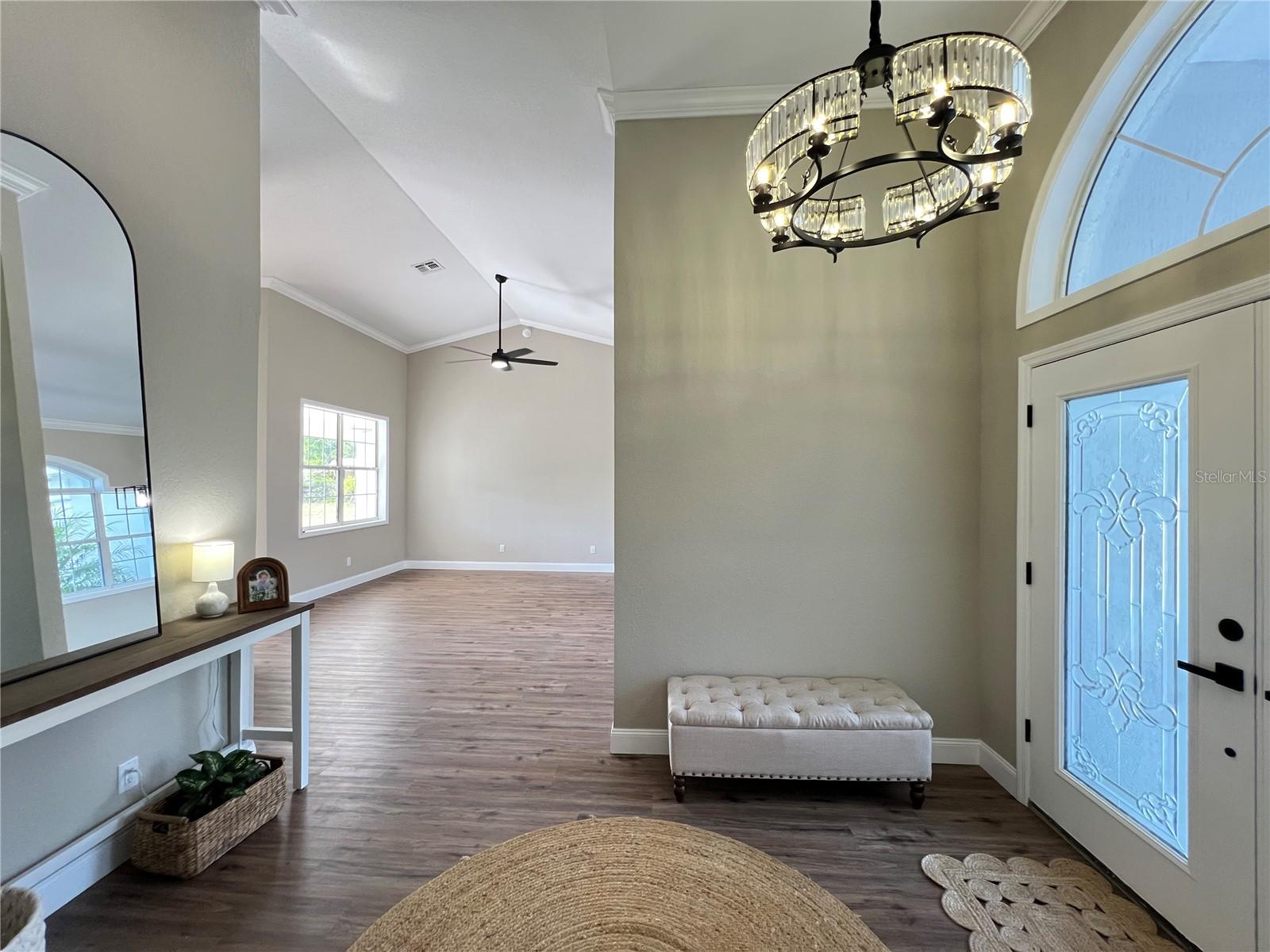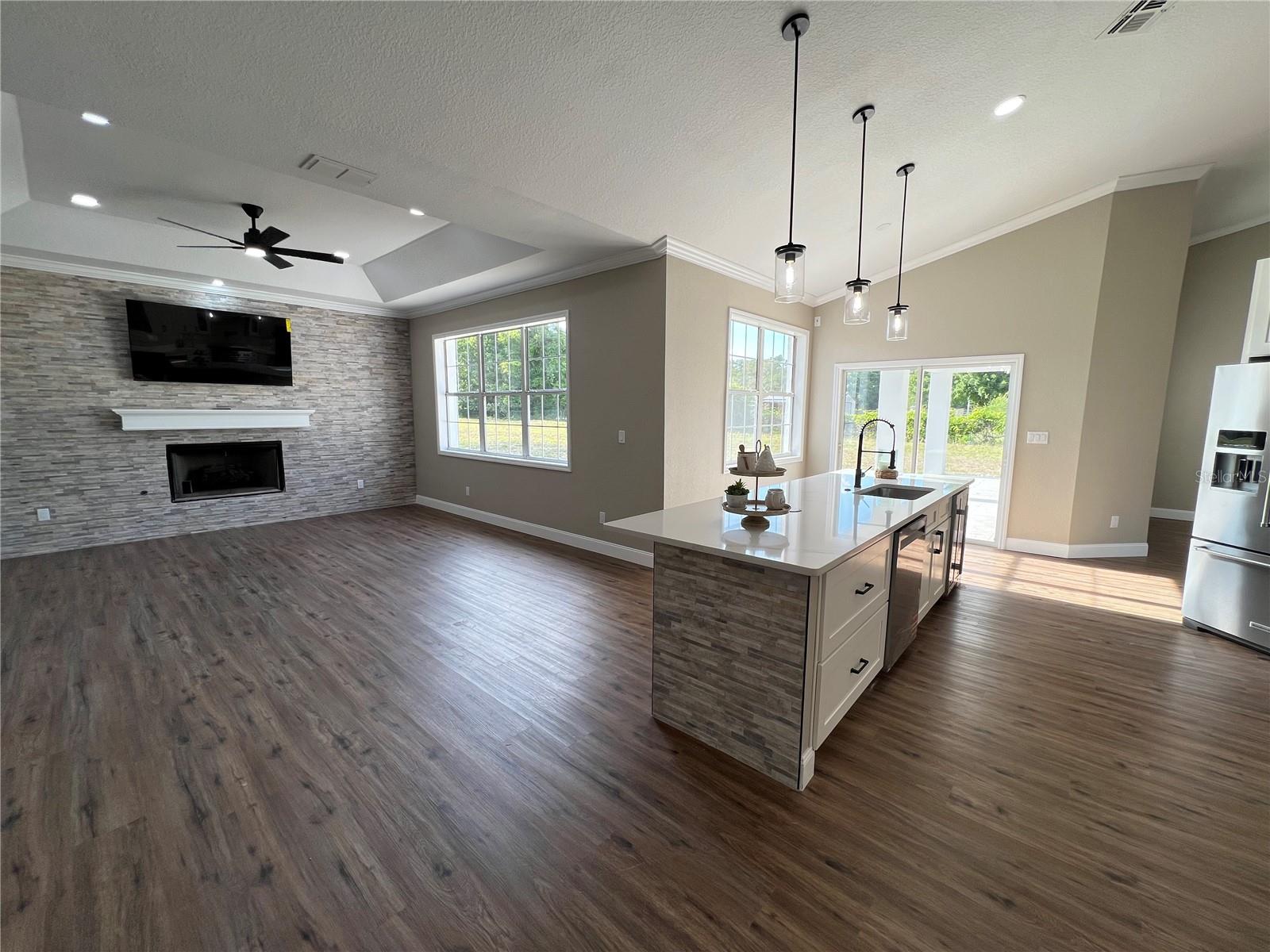 MAJOR PRICE REDUCTION - SELLER IS MOTIVATED! Experience modern comfort and country charm on this beautifully updated 3-acre property. This 4-bedroom, 3-bath home with an office spans over 2,850 square feet and has been extensively upgraded and essentially rebuilt from the ground up, the home boasts all-new drywall, electrical systems, recessed and designer lighting, a brand-new roof, and a powerful 4-ton A/C system. Every inch reflects quality and care, from the 5-inch baseboards to the beautiful window casing to the crown molding. Freshly painted in soft, neutral tones with luxury vinyl plank flooring throughout—no carpet, no thresholds for a seamless flow—this home offers a bright, open layout with soaring ceilings and abundance of natural light. The chef’s kitchen features a dramatic full-tile backsplash, custom hood vent, solid wood cabinetry, quartz countertops, and an oversized island with a double glass-door beverage cooler. The chef will love the 36 inch Z-line gas stove, drawer microwave and extra-large refrigerator. The family room includes a tray ceiling, stacked-stone accent wall, and cozy gas fireplace. The spacious primary suite offers tray ceilings, dual walk-in closets, and spa-like bath with oversized porcelain tile shower, a freestanding soaking tub and double quartz vanities. Step outside to enjoy the serenity of your private acreage from the expansive patio—perfect for morning coffee or sunset views. The property’s curb appeal is enhanced by fresh landscaping, a newly added gravel driveway, and a gated entrance flanked by lighted columns. Whether you’re looking for a high-end homestead, a future equestrian setup, or a quiet estate to relax and unwind, this exceptional property has it all. Added bonus- the home is only 13 miles away to the world-renowned World Equestrian Center. You can easily and quickly commute to the local attraction. Note: Home was renovated due to defective Chinese drywall in 2003, which was removed and replaced in 2025.