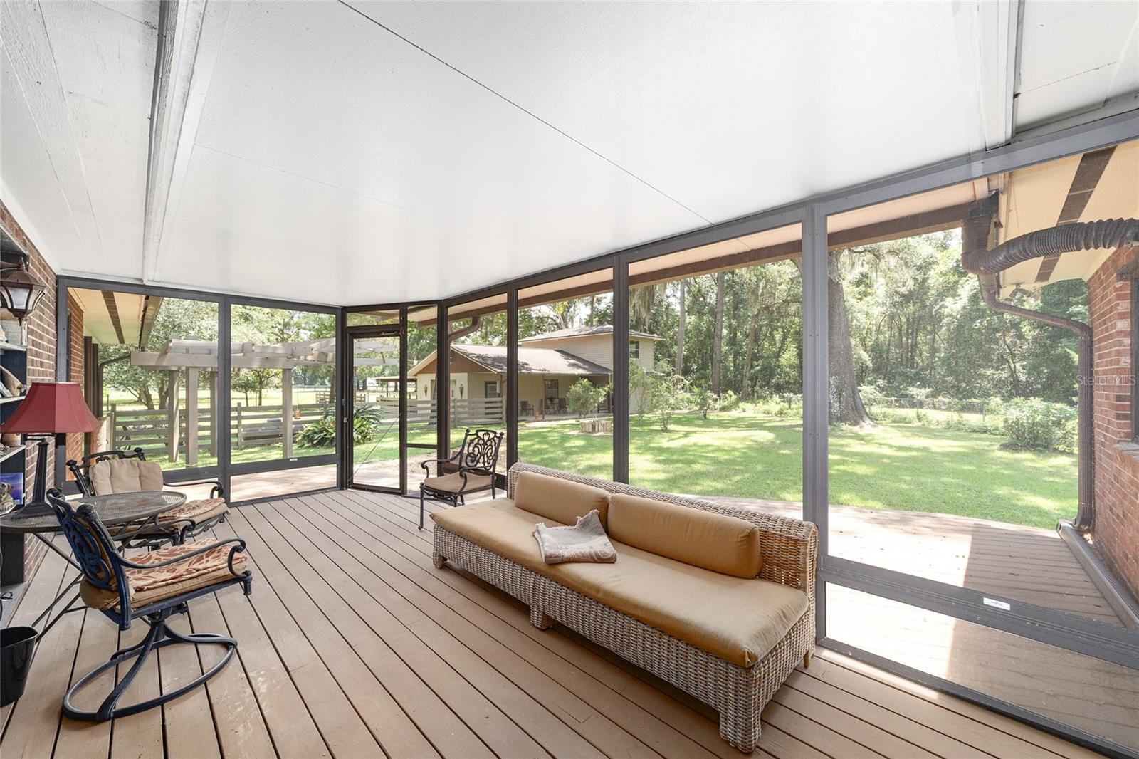 If you’re looking for privacy, tranquil country living with a touch of elegance, and room to roam this stunning 6.85-acre horse-zoned farm is the one for you! Offering 2,358 sq ft of updated living space, the home features 3 oversized bedrooms, 2.5 baths, and an open, light-filled floor plan, with large windows throughout. The chef’s kitchen is designed for entertaining with custom cabinetry, a spacious island, granite countertops, pantry, stainless steel appliances, with a five-burner gas-top range. The upgraded cabinetry and stone counters carry through to all bathrooms. Durable porcelain tile flows throughout the home, adding both style and function. Escape to your serene spacious primary suite that overlooks the private backyard and features a large walk-in closet, ample space for a sitting area, and a lovely master bath. The two other roomy bedrooms are separated by a second bright and airy full bathroom. Attention to detail throughout the interior with custom trim, ceder closet shelving, and solid doors for enhanced privacy. Step outside to a screened-in back porch that overlooks the most majestic live oak tree centered in the fully fenced backyard, perfect for pets and private relaxation. Connect with nature over your morning coffee or early evening refreshment in this tranquil setting with your very own enchanted forest. A sanctuary with gentle breezes, dusk and dawn light beams shimmering through the trees and a vast array of birds and other wildlife. The cardinals, owls, hawks, humming birds, and butterflies await… Additional amenities include a 908 sq ft covered carport and a 1,380 sq ft detached garage with one bay and an unfinished two-story apartment or office, offering endless possibilities, including potential income producing. The property also includes a 1.9-acre pasture complete with a versatile cover for horses or livestock. Major updates completed in 2016 provide peace of mind, with all three buildings reroofed, a 5-ton HVAC installed, and electrical and plumbing upgrades. A new drain field installed in 2021, a 120-gallon well tank replaced in 2019, and a 50-gallon hot water heater replaced in 2024. An upgraded water softener and reverse osmosis system are also included. Conveniently located just minutes from downtown and shopping, yet perfectly tucked away with plenty of space and privacy, this farm truly offers the best of both worlds. And for the horse enthusiast, Indian Lake State Forest Equestrian Trails are located just over four miles away with its 7.8-mile loop-trail for up to three hours of riding enjoyment. Schedule your private showing today—you won’t be disappointed!