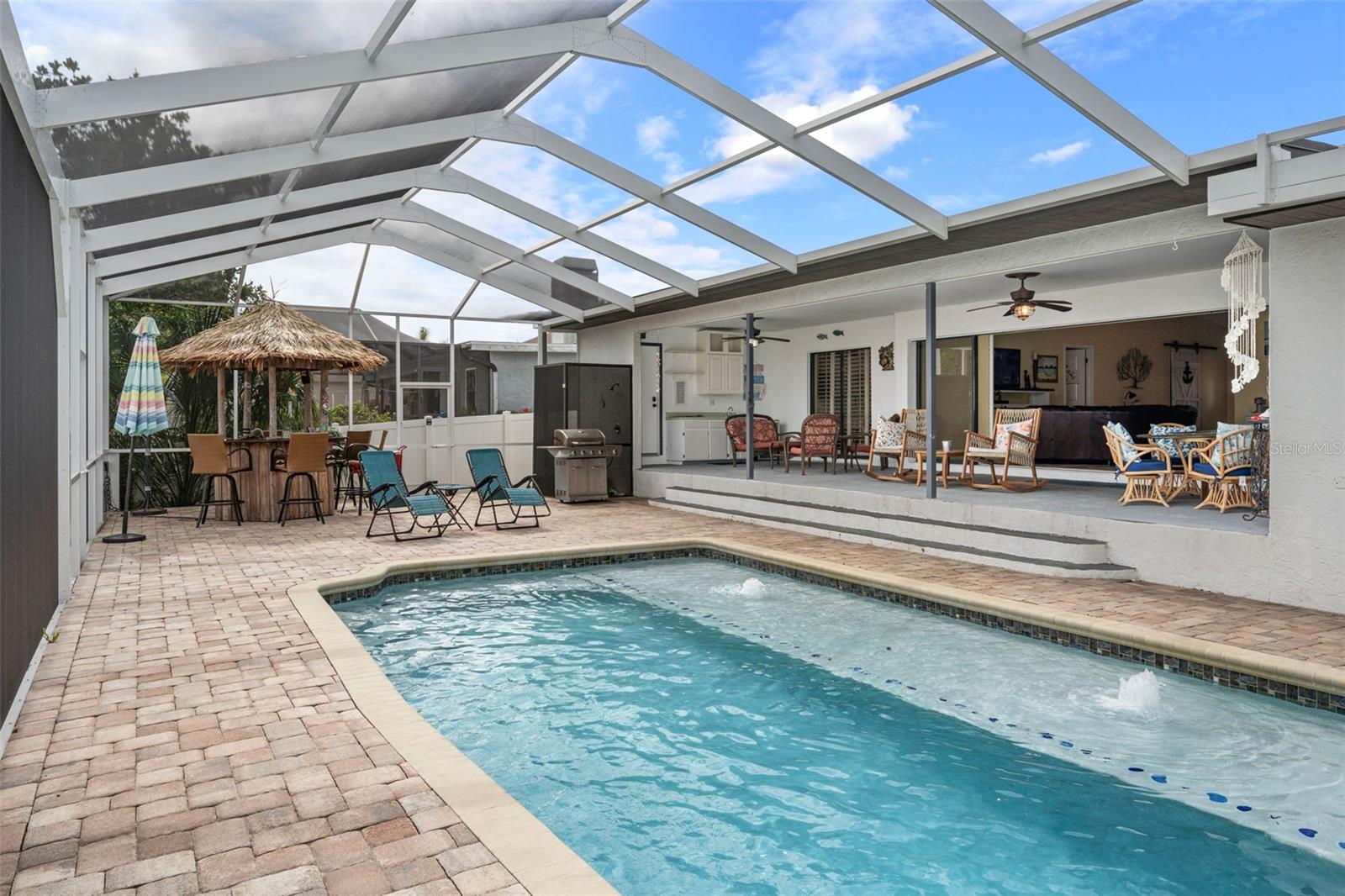 Deep water direct access, no bridges to Tampa Bay! This is your year-round vacation oasis. Four bedroom, 2 bath open floor plan is a water lover's dream. Entertain with style in the gorgeous remodeled kitchen with custom cabinetry, granite countertops and stainless steel appliances, and a large bar with plenty of seating which opens up to the Great room with 12-foot sliding glass doors opening to the outdoor lanai and pool. There is an oversized 2-car garage and the new electric sub-panel would allow for the use of an EV Charger. New storage cabinetry covers one wall of the garage. All brand-new plumbing throughout the house which has been relocated from the slab to the attic. New roof, new lanai screening cage, new pool heat pump, salt water pool as well as a new hot water tank. There are two working boat lifts which accommodate up to 10,000 and 16,000 pound boats. This split floor plan is ideal for family/guests or even a home office. The owners suite features a large walk-in closet, a spectacular bath with footed tub, separate shower and water closet. All secondary bedrooms are large compared to today's new construction standards and share a remodeled bath. Low-maintenance porcelain tile planks look like wood and cover the entire home. The windows and doors have custom plantation shutters. The lanai is paved and surrounded by a new white caged screened area with a desirable "picture window opening" which overlooks the multileveled dock area and canal. Tiki bar with electric included. The outdoor kitchen area includes a wine cooler and a handy storage room. At the pool level there is a convenient outdoor shower and large outdoor grill. The central HVAC system is less than 4 years old and under warranty. Live the Florida Lifestyle! No CDD, no HOA fees. Make your appointment today. 743 Kingston Court sits on a 10ft+ elevation with a heavy duty 2022 lanai cage that can withstand up to 155 mile an hour winds - offering peace of mind and security. Unaffected by two of the strongest hurricanes in recent history, you can buy with confidence and enjoy the best of Apollo Beach living.