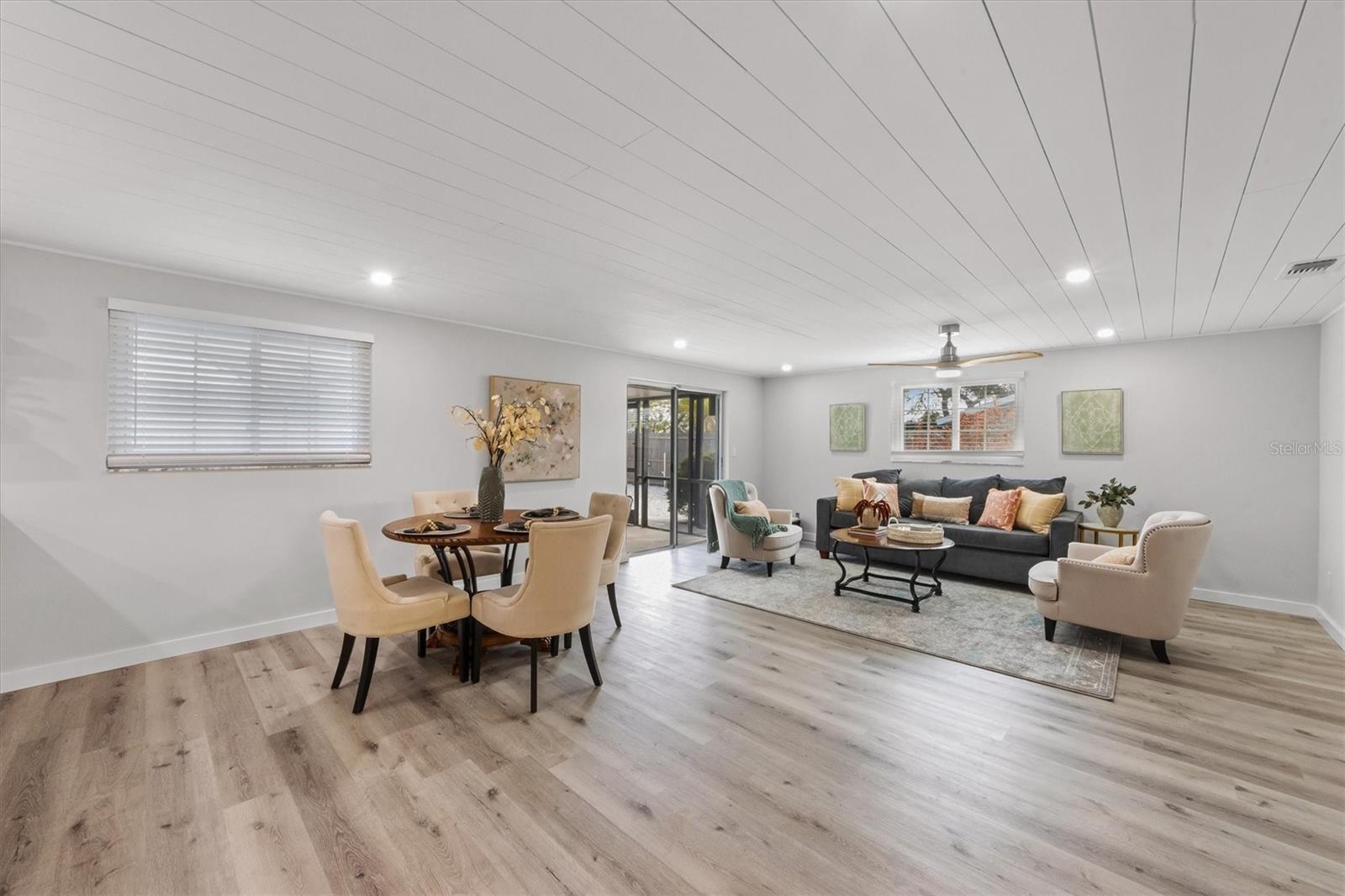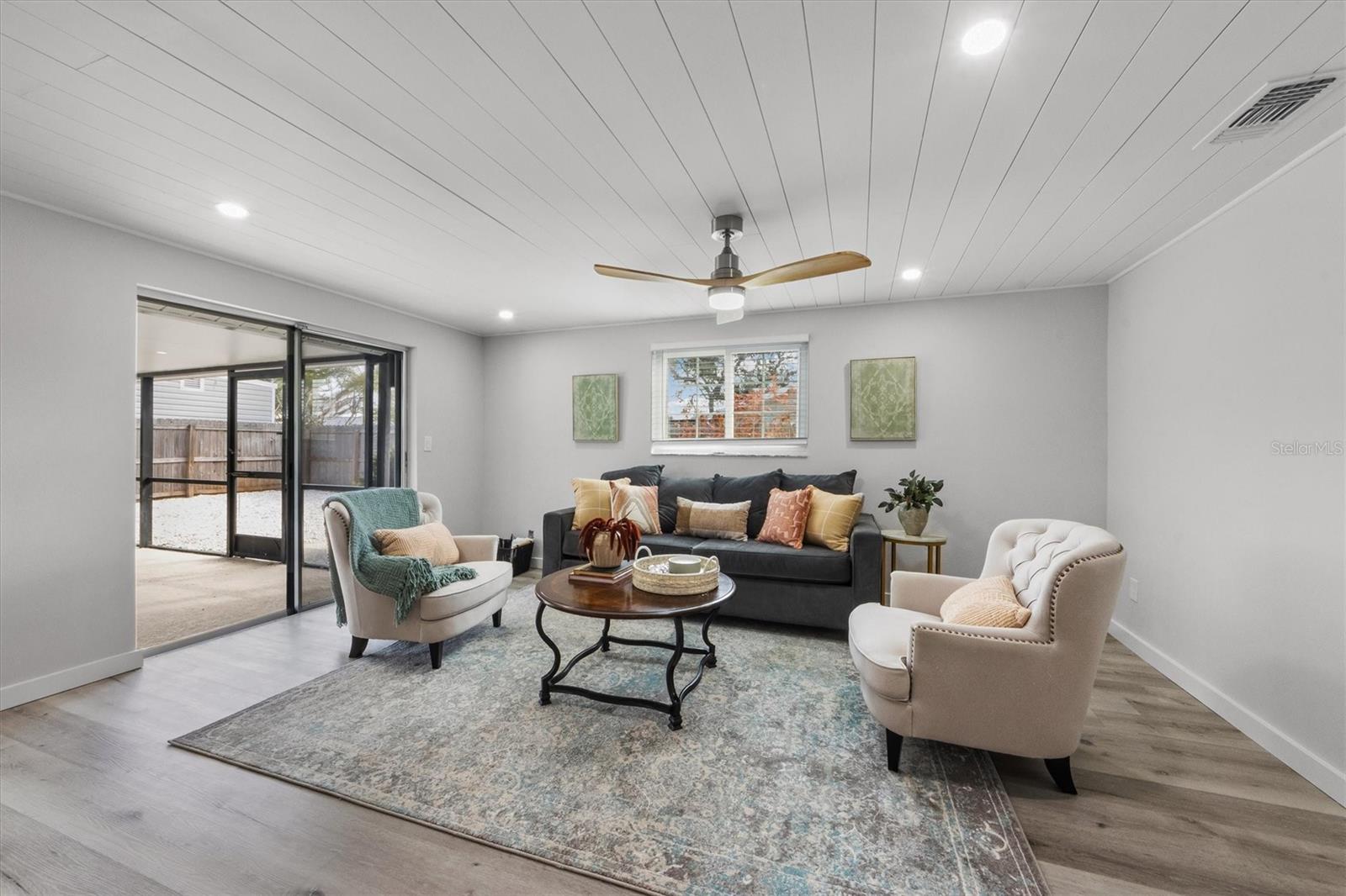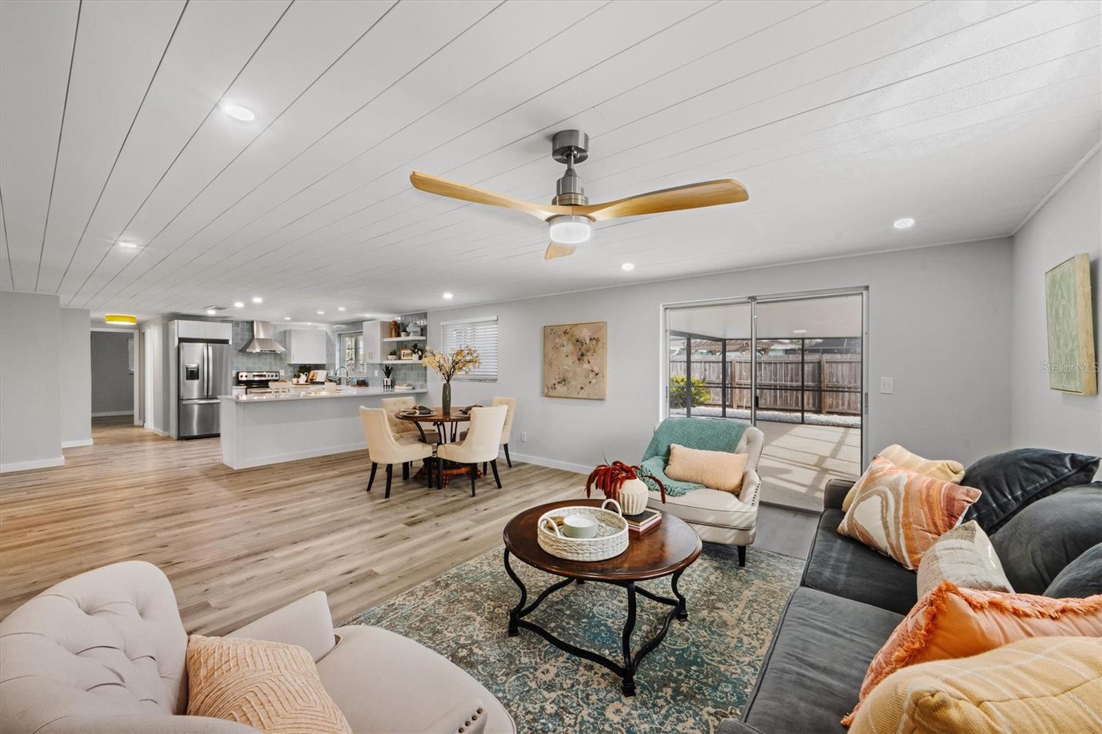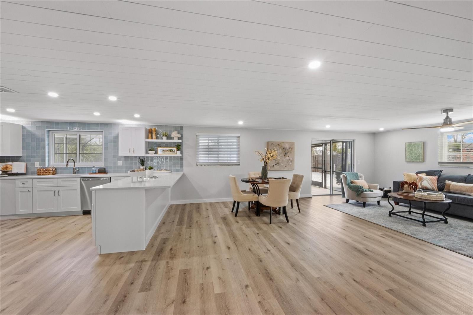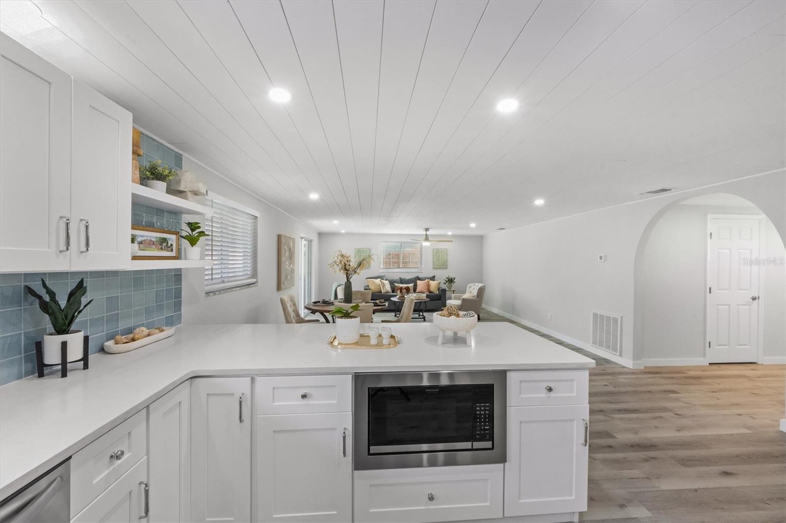 Located in the heart of Apollo Beach, this single family pool home with 3 bedrooms, 2 bathrooms a garage and coastal kitchen is one to look at! As you enter the foyer you walk into the kitchen to your left and great room to your right. The kitchen boasts all new appliances, quartz countertops with a coastal blue backsplash. Throughout the kitchen and great room the shiplap ceiling detail gives a coastal modern feel to add character and warmth to this lovely home. The large primary bedroom has an en suite bathroom with a walk-in shower and dual sink vanity. There are 2 additional bedrooms with ample closet space. The second bathroom has a bathtub and a handheld shower fixture for ease of use. Walking out the back slider you’ll enjoy covered patio space next to the pool. Envision relaxing in your outdoor furniture as other jump in the pool. The 2 car garage had plenty of space for toys and storage. This home move-in ready with a modernize updates and a coastal vibe. Don’t miss out on this one, come take a look and enjoy what this home has to offer!