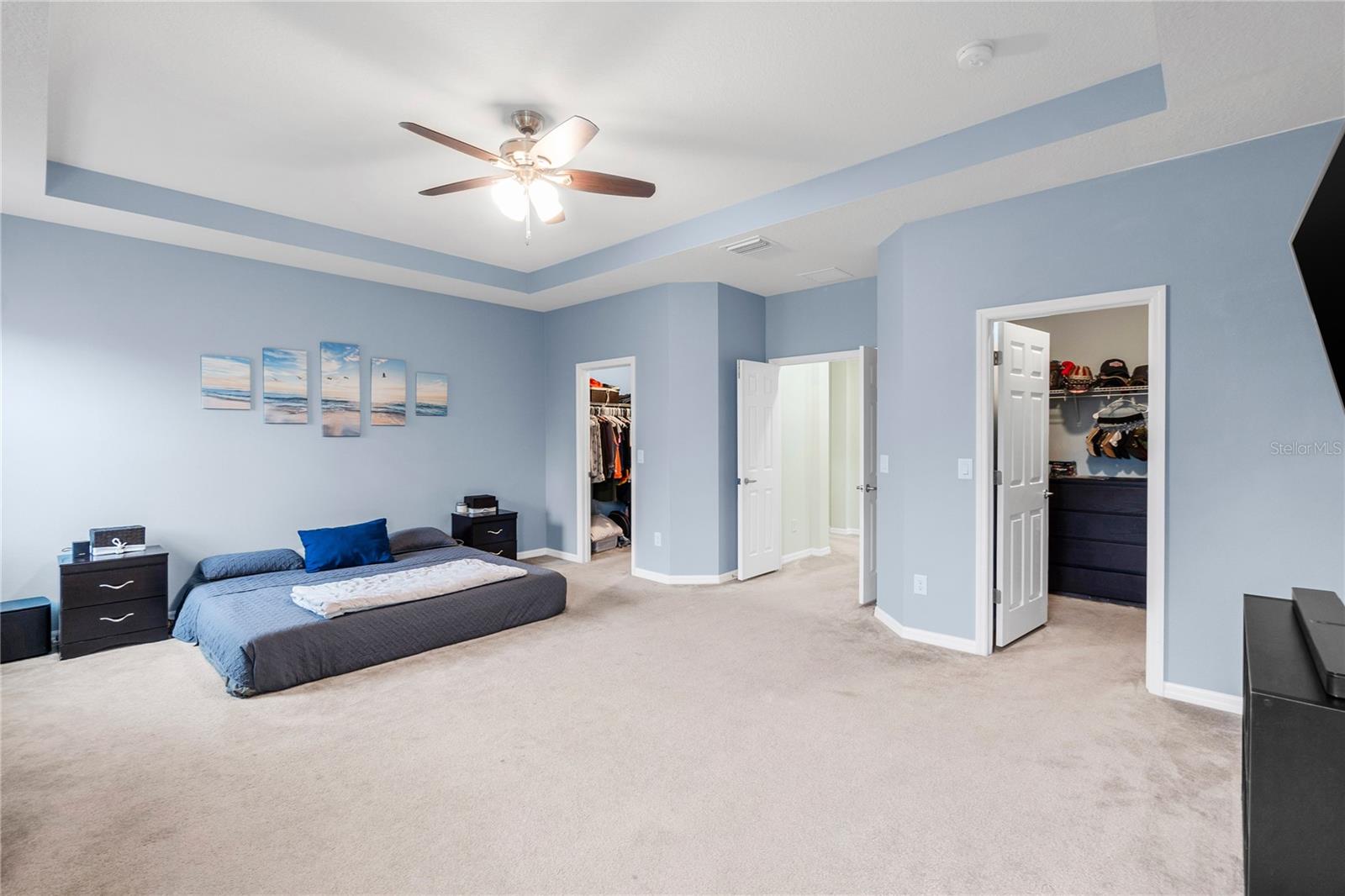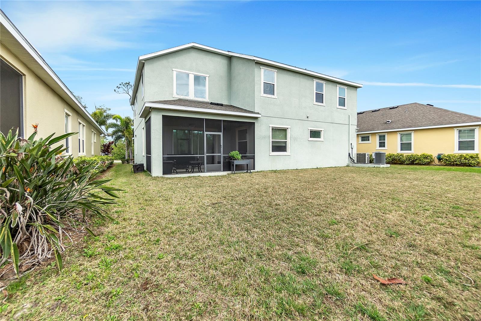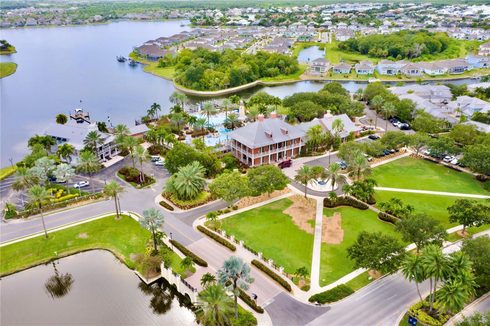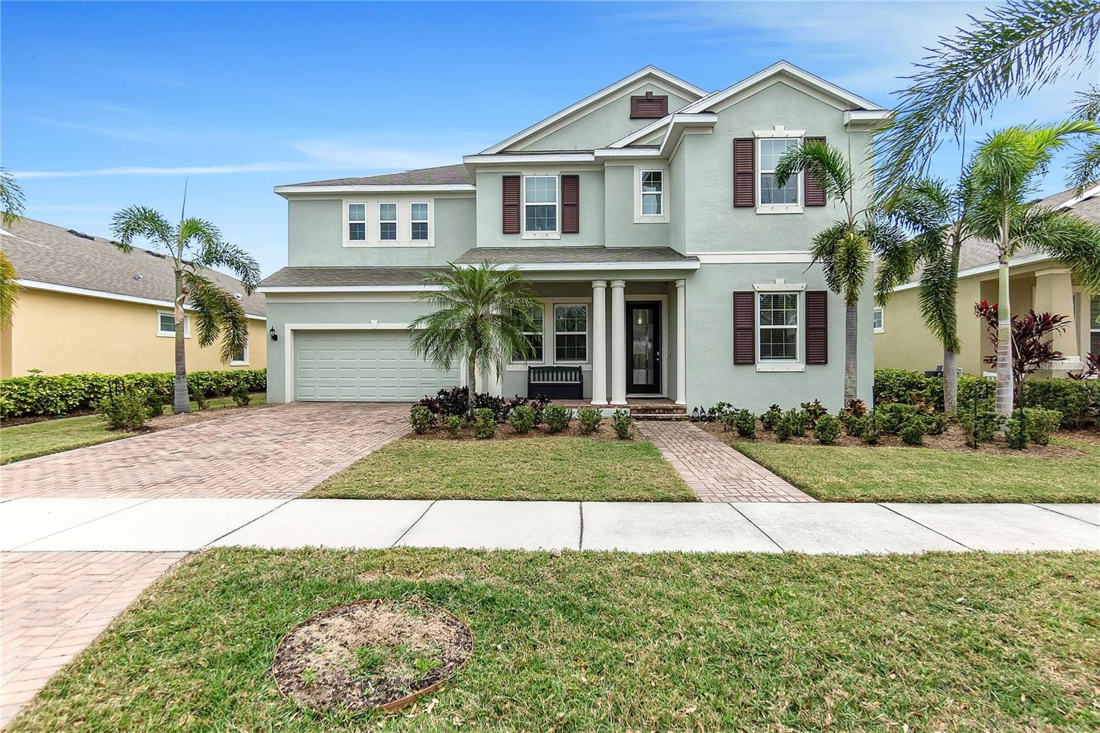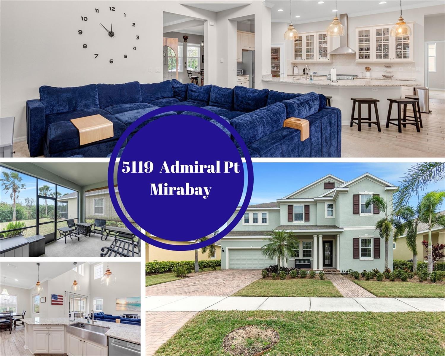 Welcome to your dream home in Admiral Pointe, an exclusive enclave within the gated community of Mira Bay! This stunning 5-bedroom, 4-bathroom residence is designed for comfortable family living and effortless entertaining. Rest easy knowing the roof will be replaced in March, one AC unit is new with a UV light purifier and the water is soft. Step inside to a beautifully tiled foyer that leads to an expansive open floor plan. The heart of the home is the gourmet chef’s kitchen, featuring granite countertops, rich cabinetry, stainless steel appliances, a natural gas stove, convection oven, convertible range hood, and a large walk-in pantry. A spacious island and eat-in kitchen area make this the perfect gathering space. The main floor also offers a formal dining and living room, a cozy family room with soaring 18’ vaulted ceilings and pre-wired surround sound, a walk-in wine closet, a guest bedroom, and a full bath with a stand-up shower. Upstairs, you'll find a luxurious Primary Suite with a tray ceiling, his-and-hers walk-in closets, and a spa-like en-suite bathroom with dual sinks and a dual showerhead shower. Bedroom 2 enjoys its own private bathroom, while Bedrooms 3 and 4 are connected by a convenient Jack-and-Jill bath. Step outside through the sliding glass doors to an extended lanai, perfect for relaxing mornings and peaceful evenings. The huge backyard is ideal for family picnics, outdoor games, or even an overnight camping adventure. Beyond the home, Mirabay offers Clubhouses, a café, a state-of-the-art fitness center, scenic running trails, and even a boat ramp with water access for fishing and kayaking. With a low HOA fee, you’ll enjoy all these incredible amenities while living in a vibrant and welcoming community. Don’t miss this opportunity to own a beautifully maintained, spacious family home in one of Mirabay’s most desirable neighborhoods. Schedule your private tour today and experience the perfect blend of luxury, comfort, and community!