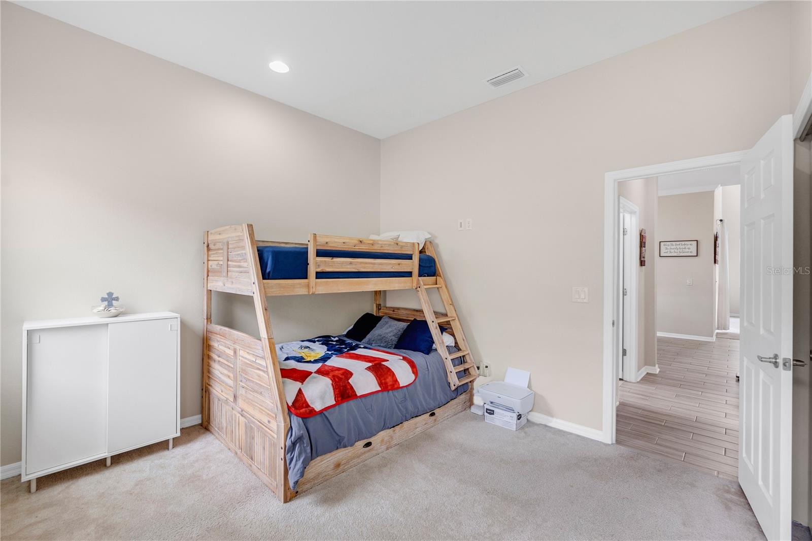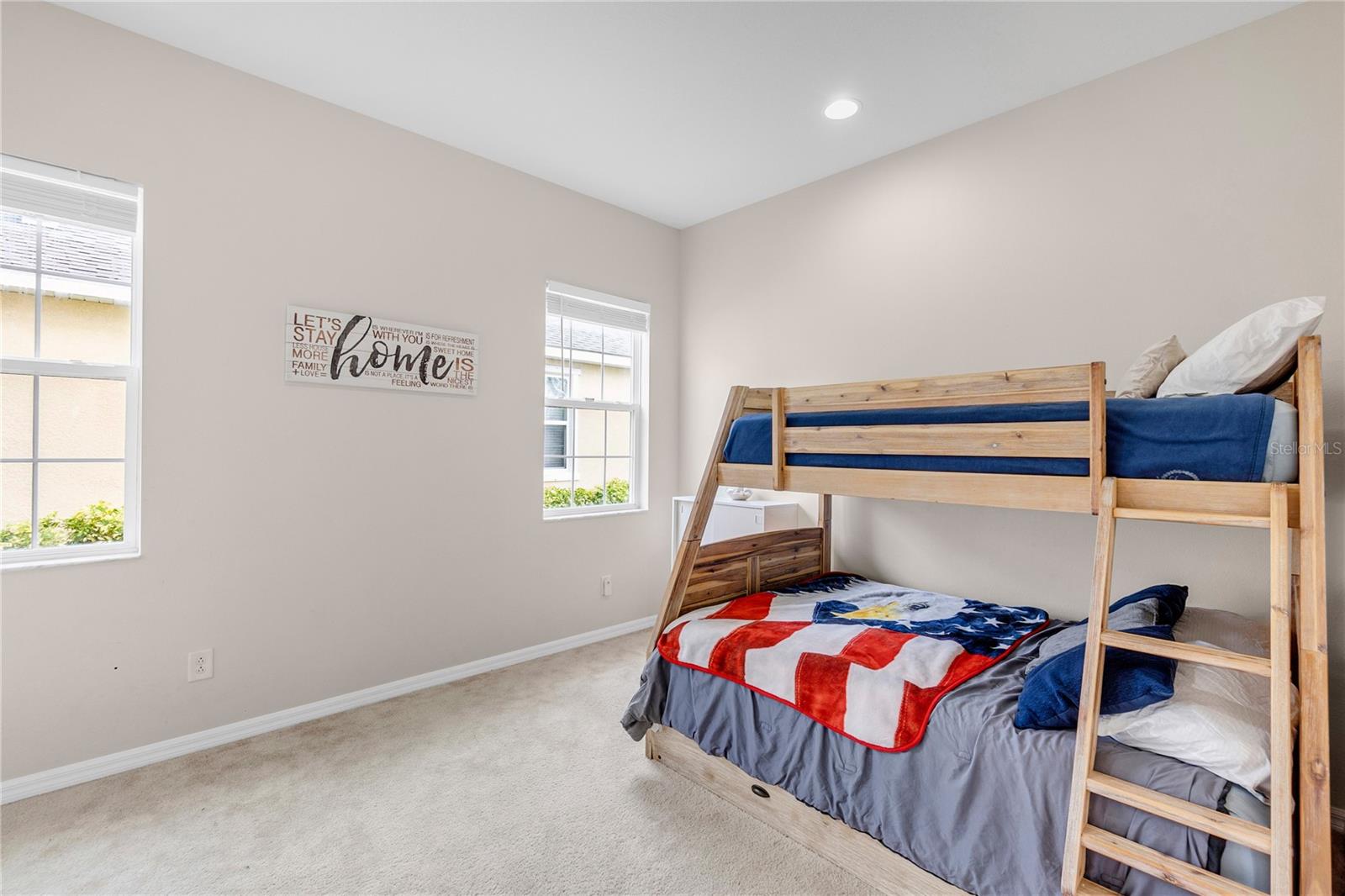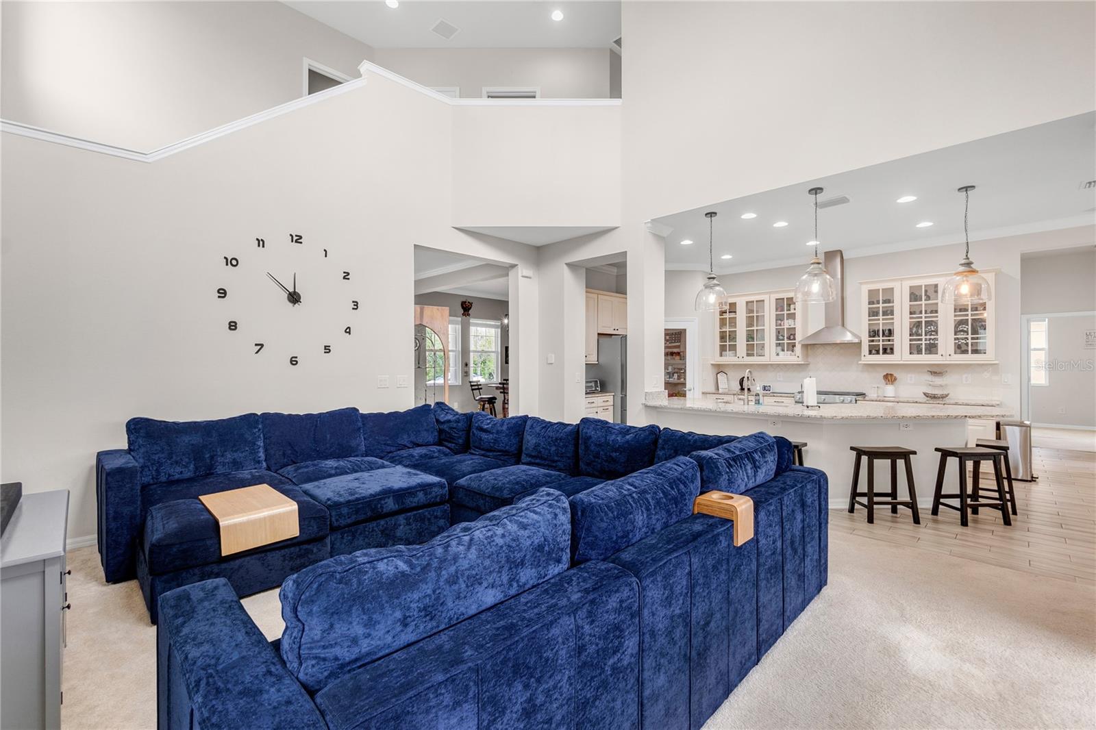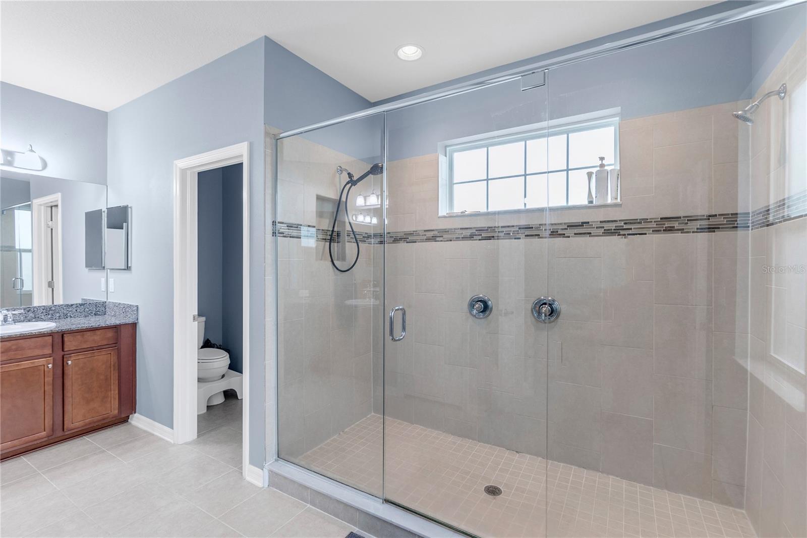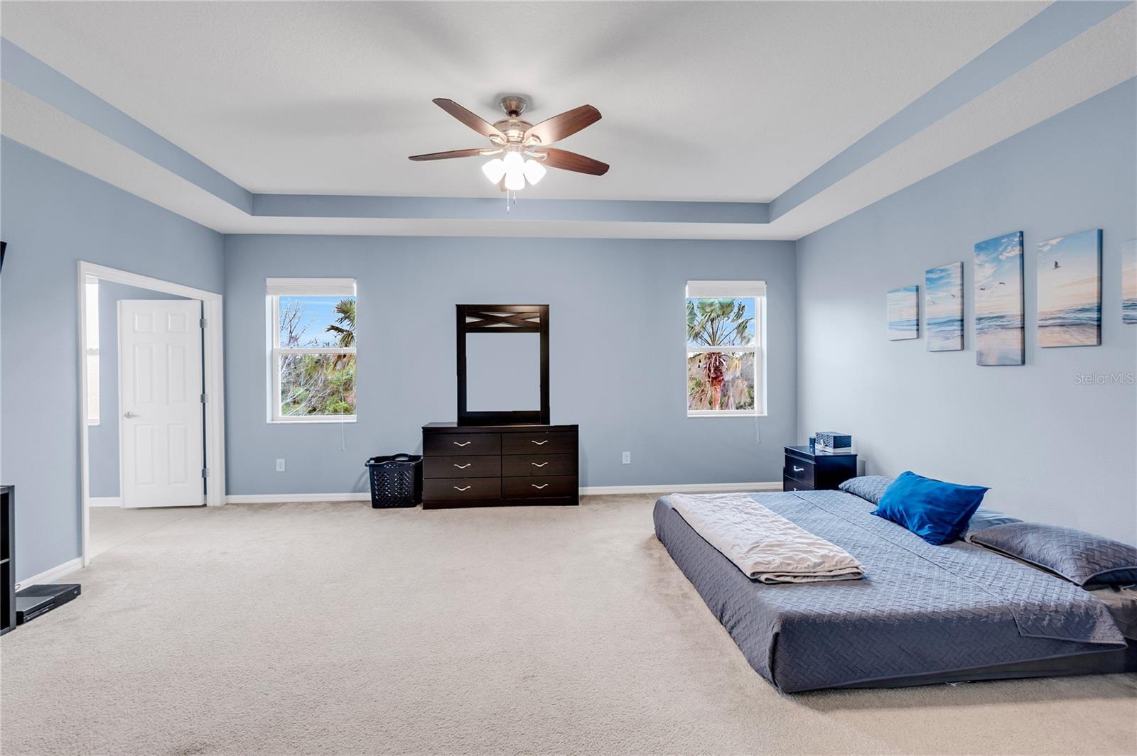 Welcome to your dream home in Admiral Pointe, an exclusive enclave within the gated community of Mira Bay! This stunning 5-bedroom, 4-bathroom residence is designed for comfortable family living and effortless entertaining. Rest easy knowing the roof will be replaced in March, one AC unit is new with a UV light purifier and the water is soft. Step inside to a beautifully tiled foyer that leads to an expansive open floor plan. The heart of the home is the gourmet chef’s kitchen, featuring granite countertops, rich cabinetry, stainless steel appliances, a natural gas stove, convection oven, convertible range hood, and a large walk-in pantry. A spacious island and eat-in kitchen area make this the perfect gathering space. The main floor also offers a formal dining and living room, a cozy family room with soaring 18’ vaulted ceilings and pre-wired surround sound, a walk-in wine closet, a guest bedroom, and a full bath with a stand-up shower. Upstairs, you'll find a luxurious Primary Suite with a tray ceiling, his-and-hers walk-in closets, and a spa-like en-suite bathroom with dual sinks and a dual showerhead shower. Bedroom 2 enjoys its own private bathroom, while Bedrooms 3 and 4 are connected by a convenient Jack-and-Jill bath. Step outside through the sliding glass doors to an extended lanai, perfect for relaxing mornings and peaceful evenings. The huge backyard is ideal for family picnics, outdoor games, or even an overnight camping adventure. Beyond the home, Mirabay offers Clubhouses, a café, a state-of-the-art fitness center, scenic running trails, and even a boat ramp with water access for fishing and kayaking. With a low HOA fee, you’ll enjoy all these incredible amenities while living in a vibrant and welcoming community. Don’t miss this opportunity to own a beautifully maintained, spacious family home in one of Mirabay’s most desirable neighborhoods. Schedule your private tour today and experience the perfect blend of luxury, comfort, and community!