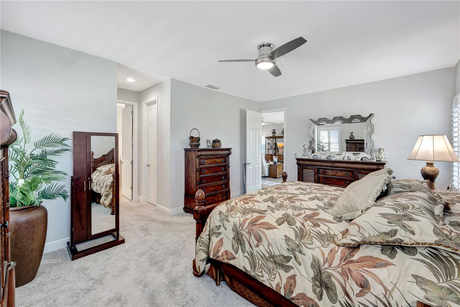 Experience refined living in this impeccably maintained 3-bedroom, 3-bathroom home with a den, located in the exclusive Waterset community of Apollo Beach. Owned by its original owners, this residence blends elegant design with high-end features and exceptional care. For added security and style, the home is equipped with accordion hurricane shutters on all exterior windows and clear roll-down shutters on the lanai, while plantation shutters grace every window inside, offering both privacy and a timeless look. Durable gutters run along both sides of the home, ensuring efficient water drainage and protection year-round. The open floor plan seamlessly connects to a kitchen featuring quartz countertops, stainless steel appliances, and a spacious island—ideal for both everyday living and entertaining. The master bedroom offers dual vanities, a spacious walk-in closet, and a sleek walk-in shower for comfort and convenience. Among the three bathrooms, two feature modern walk-in showers, while the third includes a relaxing bathtub that adds both variety and a touch of refinement. Smart home technology allows effortless control of lighting, climate, and security, while ceiling fans throughout the home ensure comfort during warm Florida days. The home also includes a Kinetico Premier Series water system, delivering soft, purified water throughout for enhanced convenience and appliance longevity. Relax on the screened lanai, featuring clear hurricane-rated shutters that create an elegant outdoor retreat designed for comfort and protection. Nestled within a vibrant community offering scenic trails, resort-style pools, fitness facilities, and abundant green spaces, this home provides an elevated lifestyle just minutes from elevated dining, shopping, and waterfront attractions. With its combination of luxury finishes, advanced features, and an unbeatable location, this exceptional home offers a rare opportunity in Apollo Beach. Experience the perfect blend of style and comfort—schedule your private tour today.