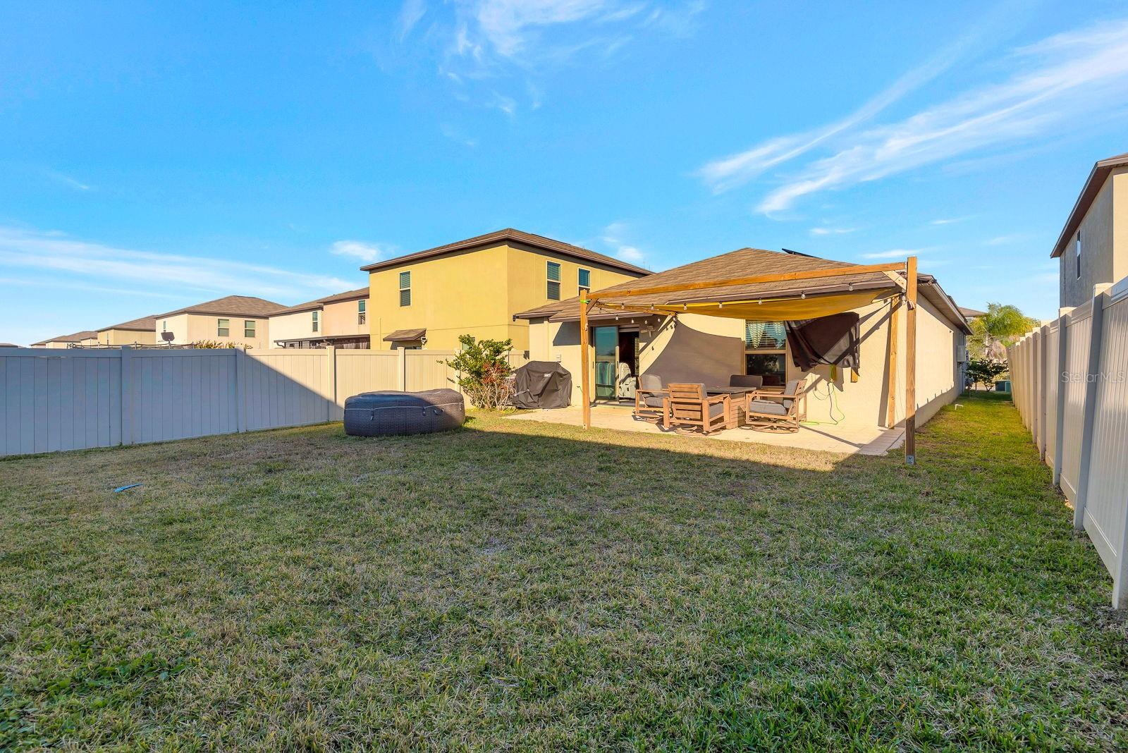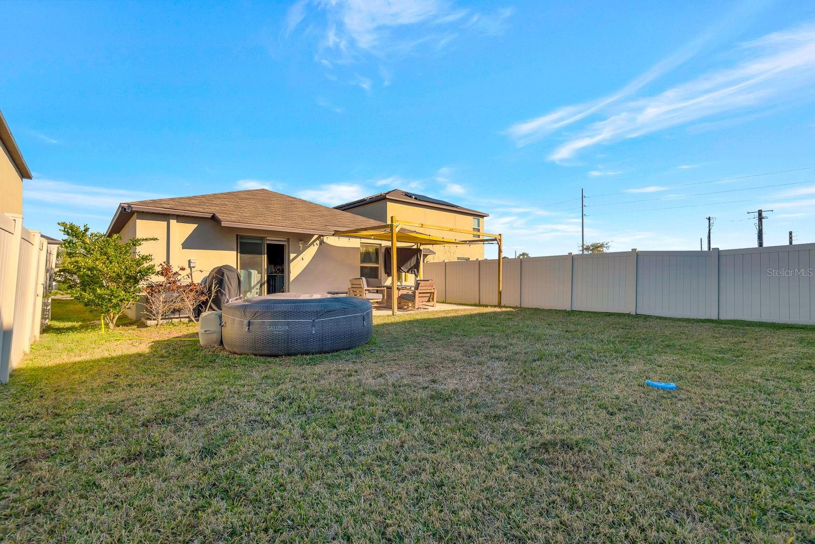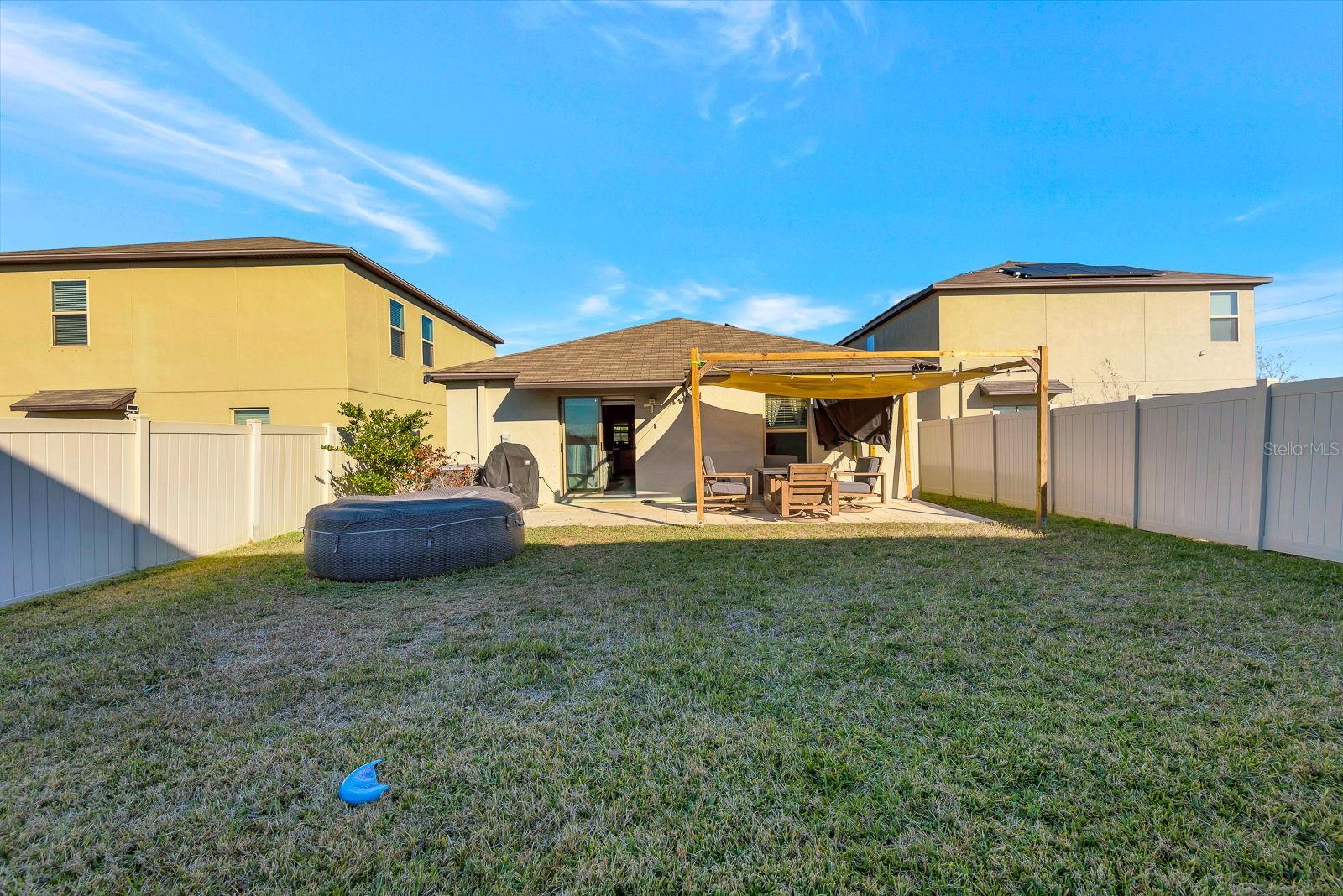 Welcome to this well-maintained, move-in-ready home built in 2020! Located in a fully developed community, this beautiful property offers a bright and open layout with high ceilings and a desirable split floor plan. The kitchen features solid countertops, stainless steel appliances, a convenient coffee bar, and opens seamlessly to the living room—perfect for entertaining. Tile flooring runs through the main hallway and living areas, adding both style and easy maintenance. This home includes 3 bedrooms and 2 bathrooms, with a private owner’s suite separated from the guest rooms for added comfort. Step outside to a peaceful backyard that backs up to a privacy area—ideal for relaxing, enjoying a fire pit, or unwinding in quiet surroundings. The home is also equipped with solar panels, helping reduce energy costs, especially during the summer months. Community amenities include a pool with cabana areas, perfect for enjoying warm Florida days. This amazing home offers comfort, efficiency, and a great lifestyle—schedule your showing today!